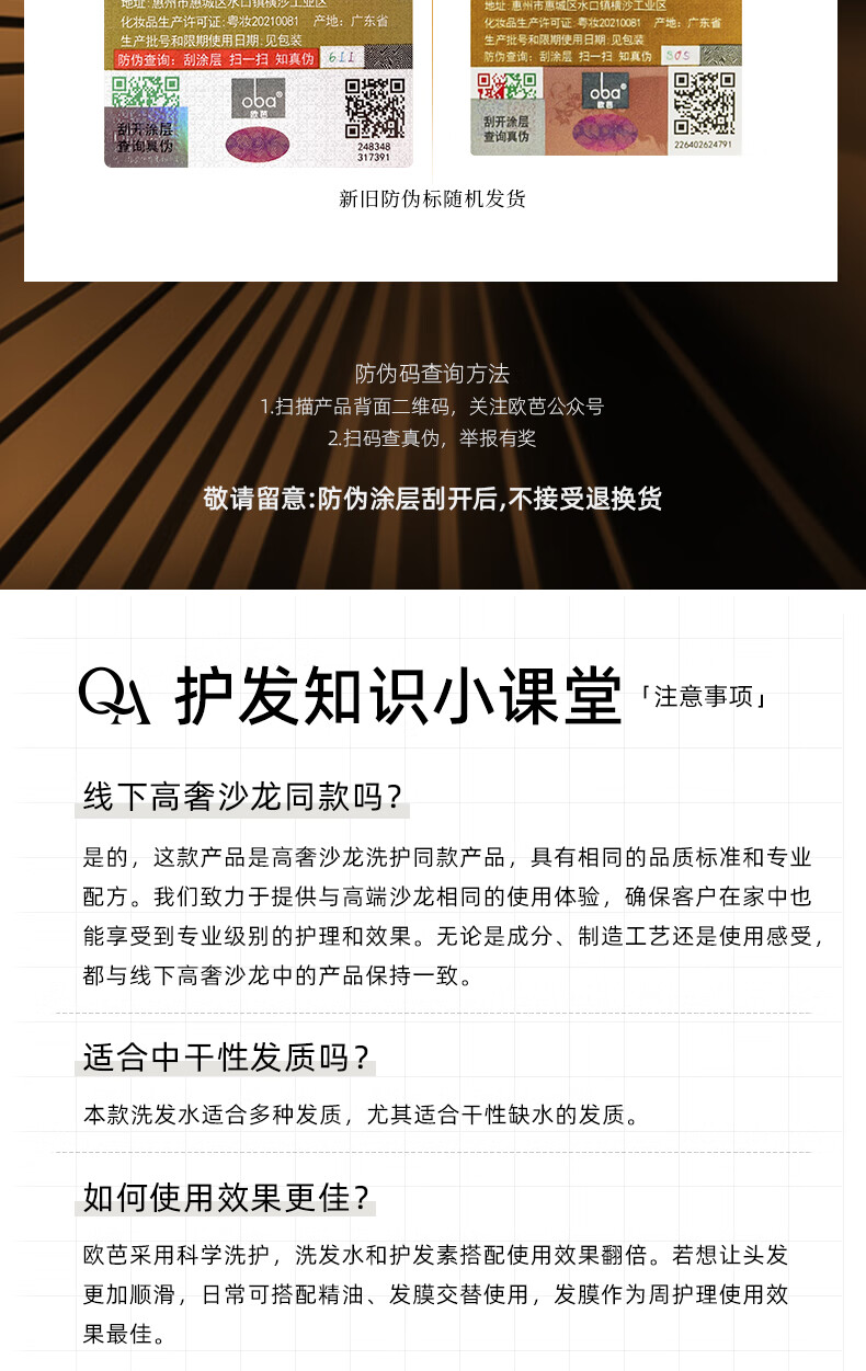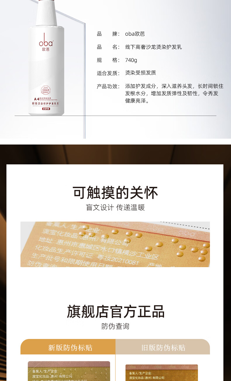 欧芭(oba)护发素烫染修护护发乳霜A4滋润柔顺改善干枯毛躁740g润发乳