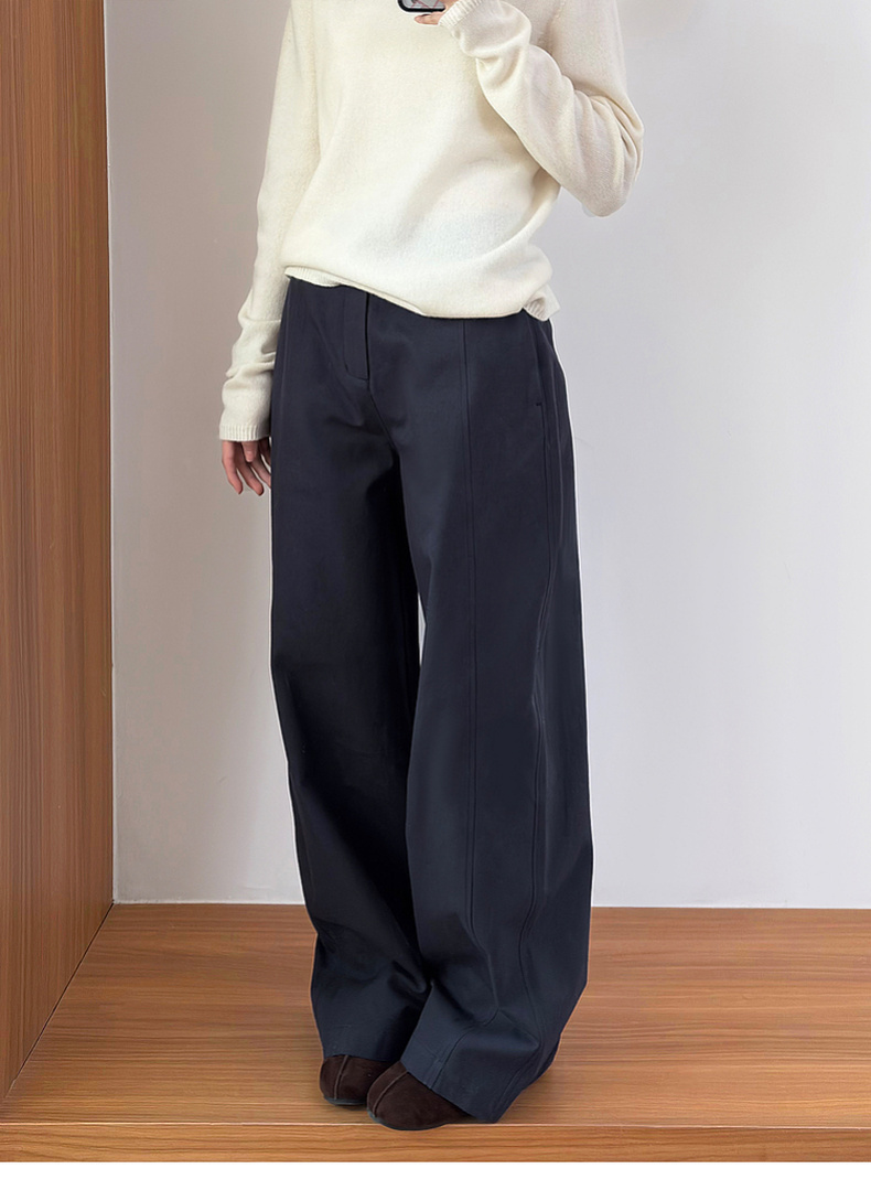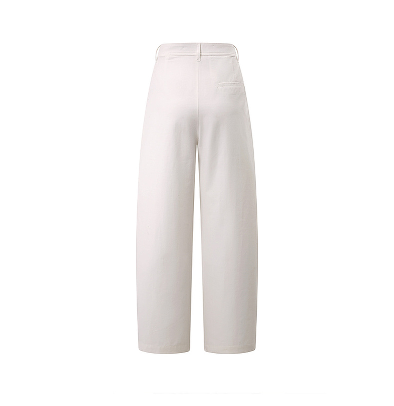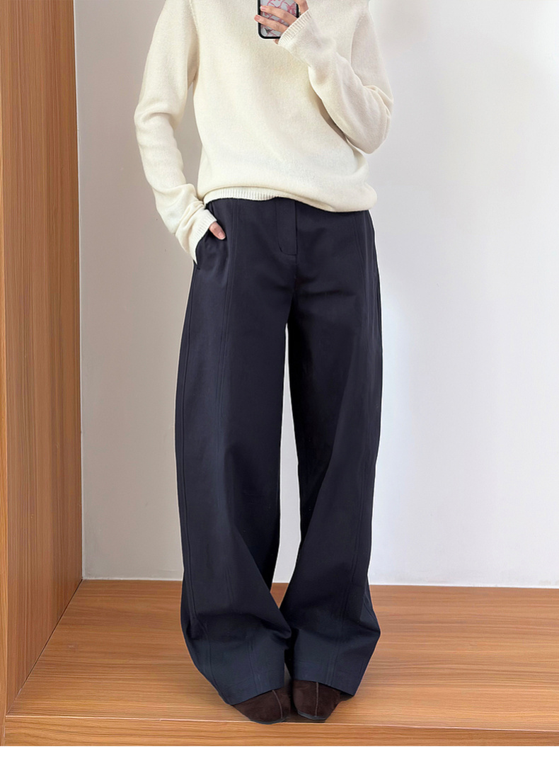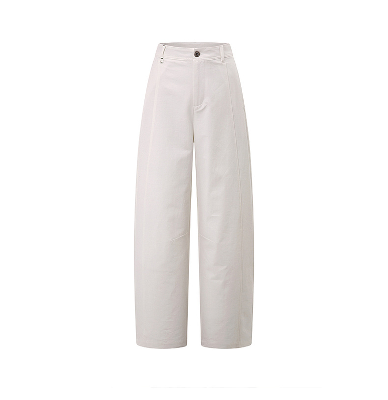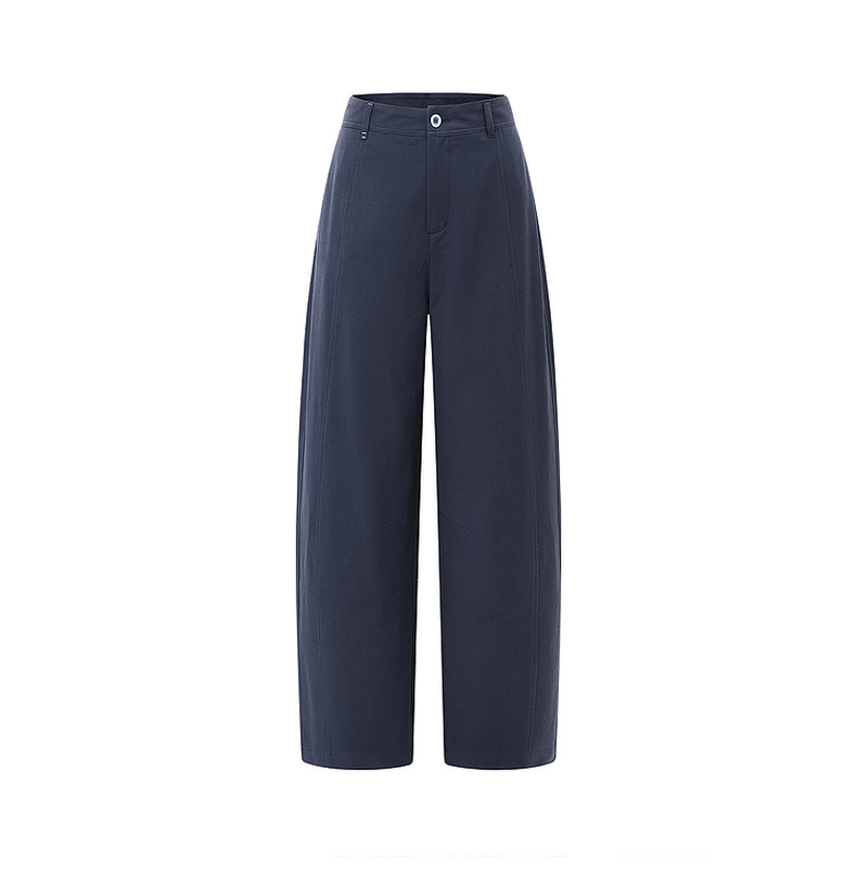 拉夏贝尔/La Chapelle刺绣裤袢休闲裤弧形裁剪设计感阔腿裤高腰显瘦