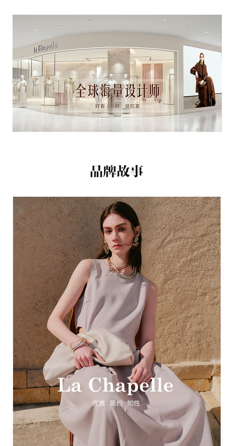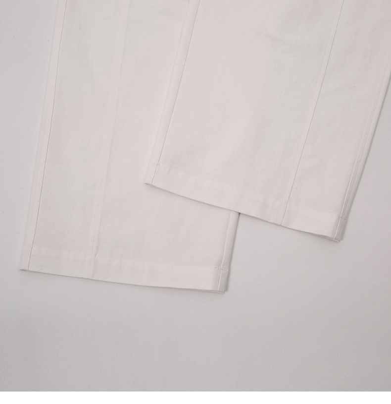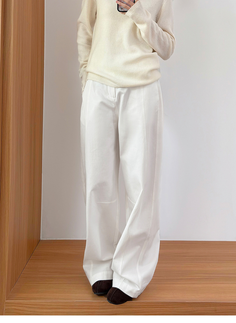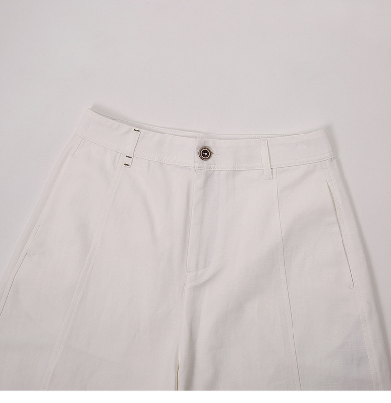 拉夏贝尔/La Chapelle刺绣裤袢休闲裤弧形裁剪设计感阔腿裤高腰显瘦