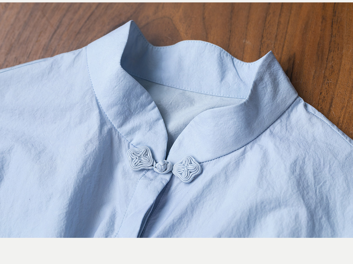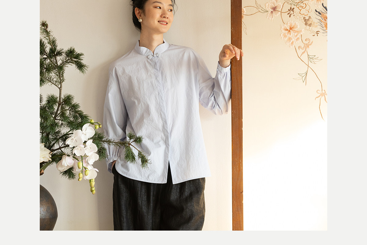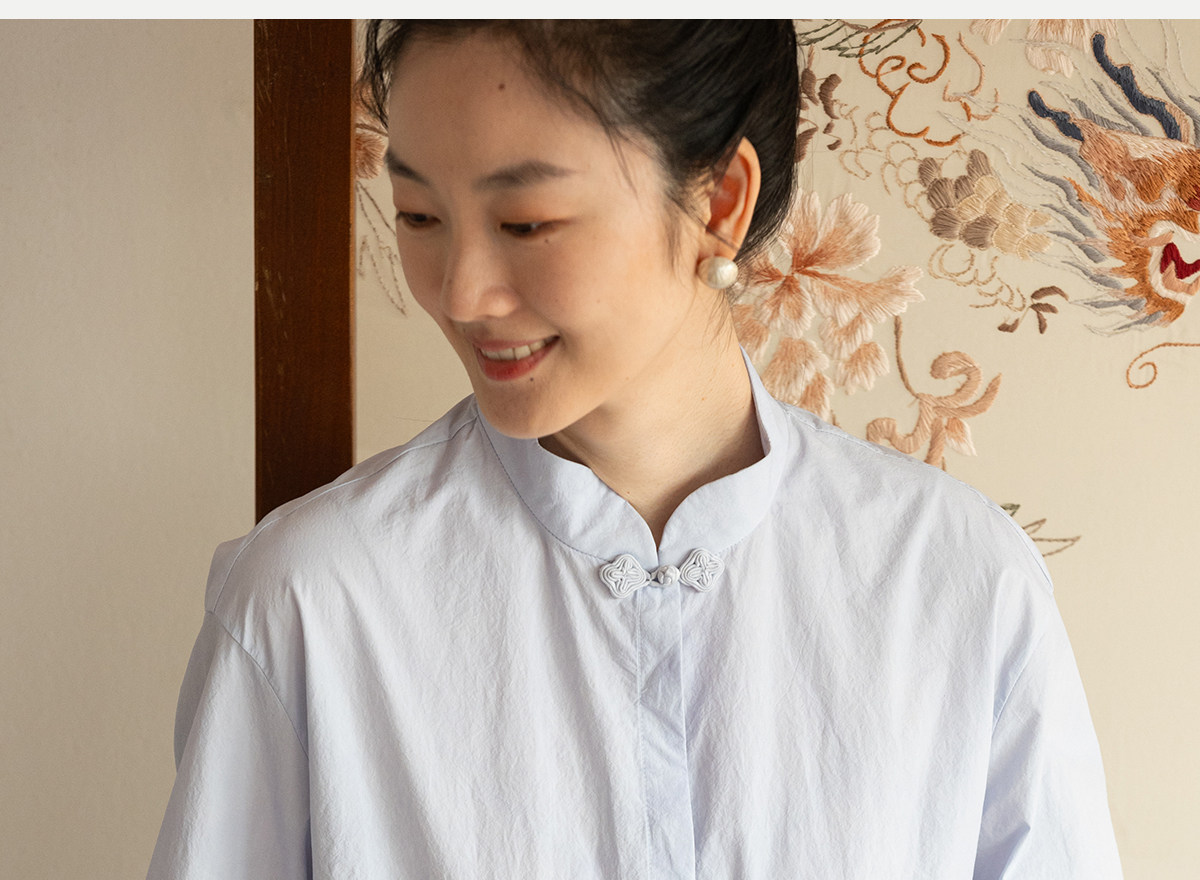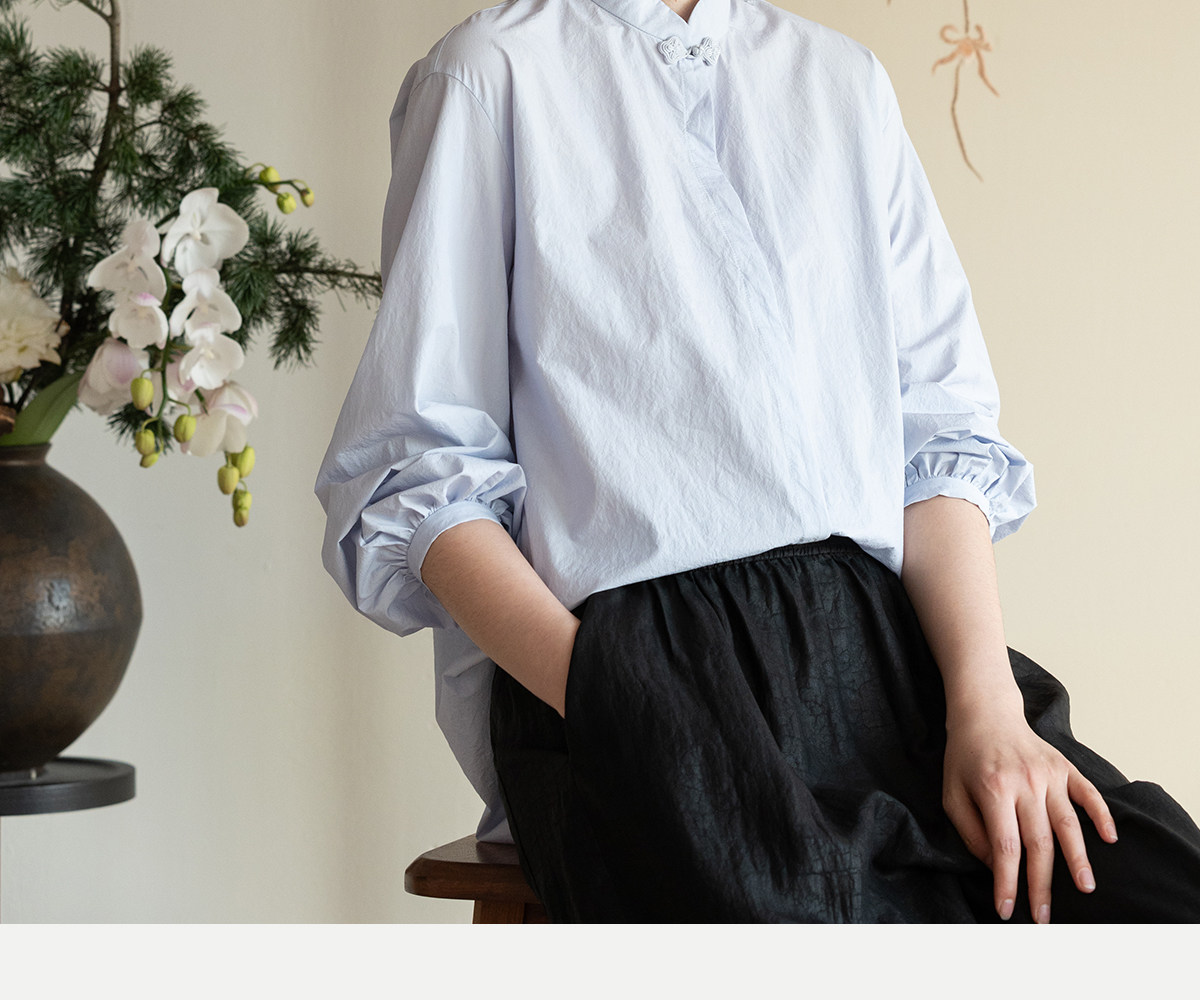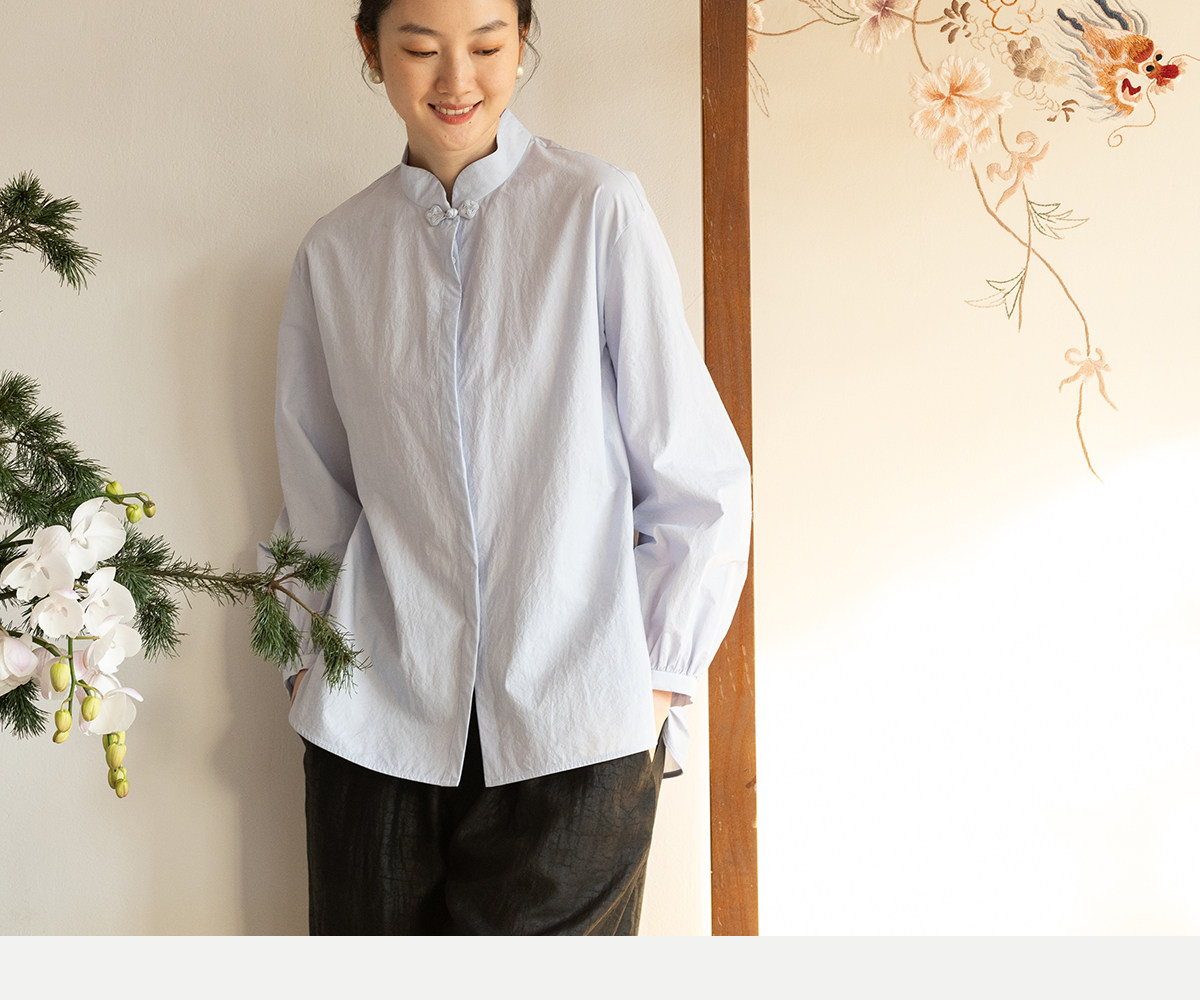 牧衣游原创 80支净色棉质衬衫女新款复古百搭宽松蓝色衬衣 舒川