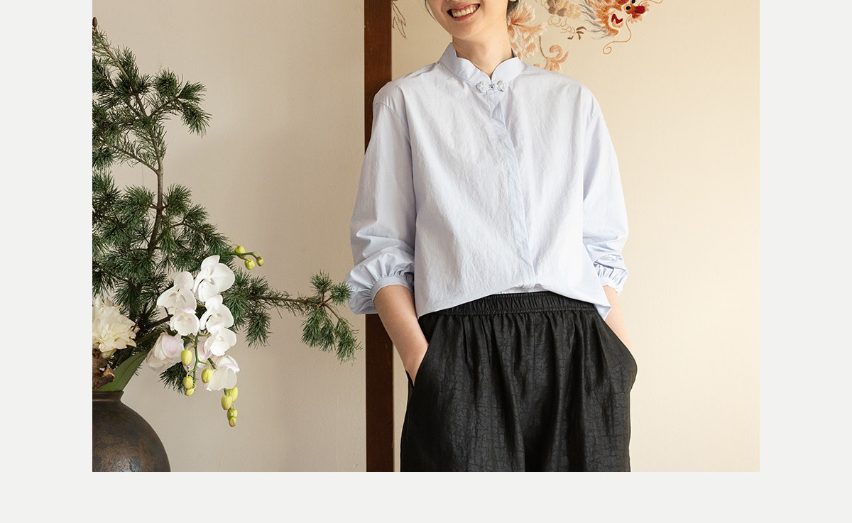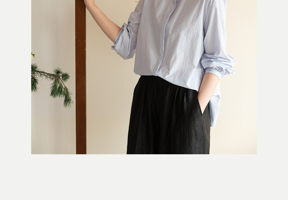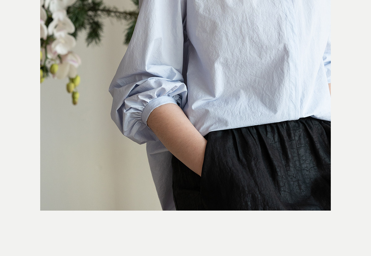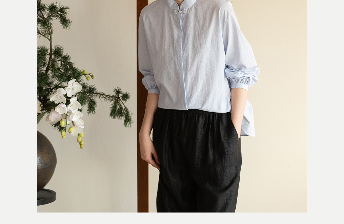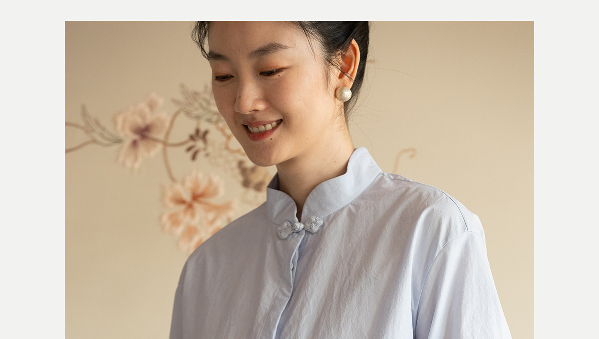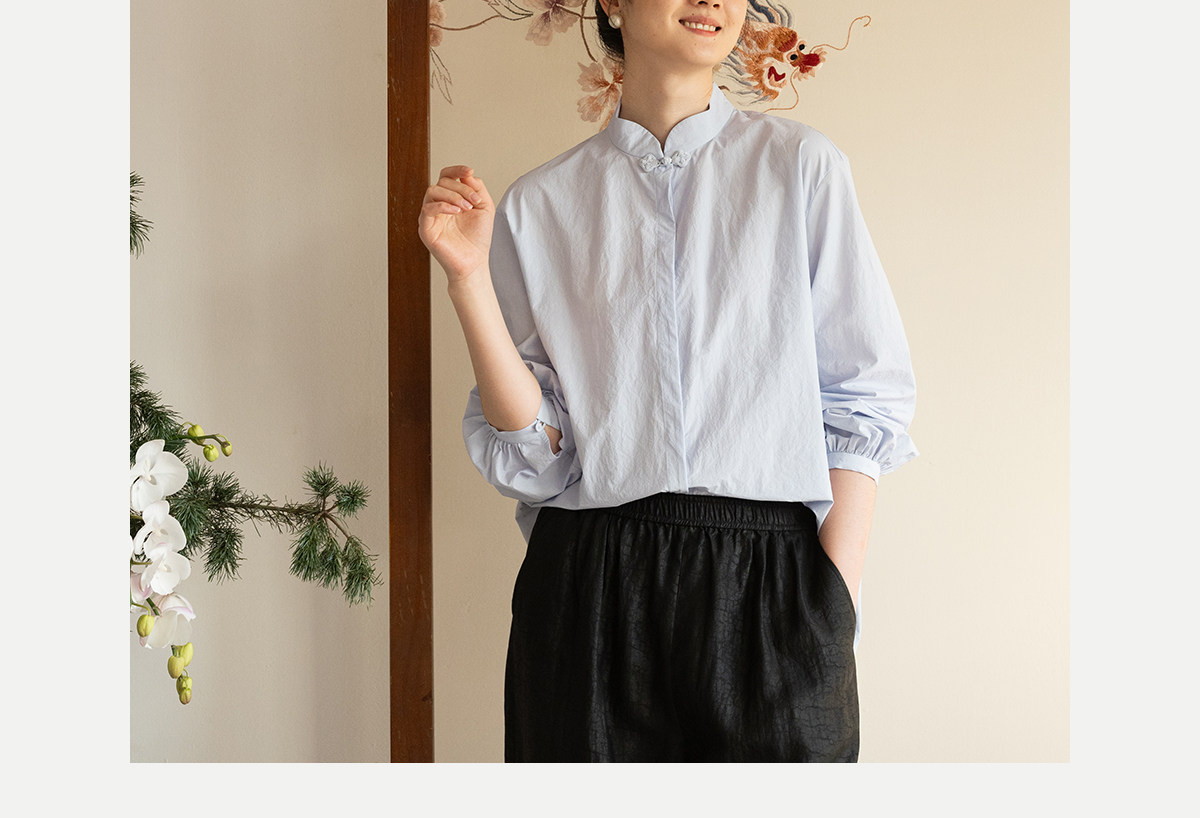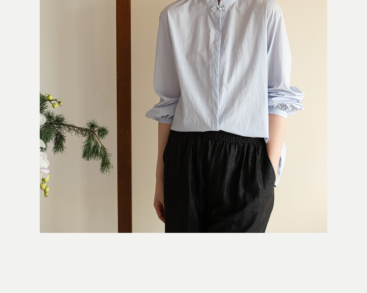 牧衣游原创 80支净色棉质衬衫女新款复古百搭宽松蓝色衬衣 舒川