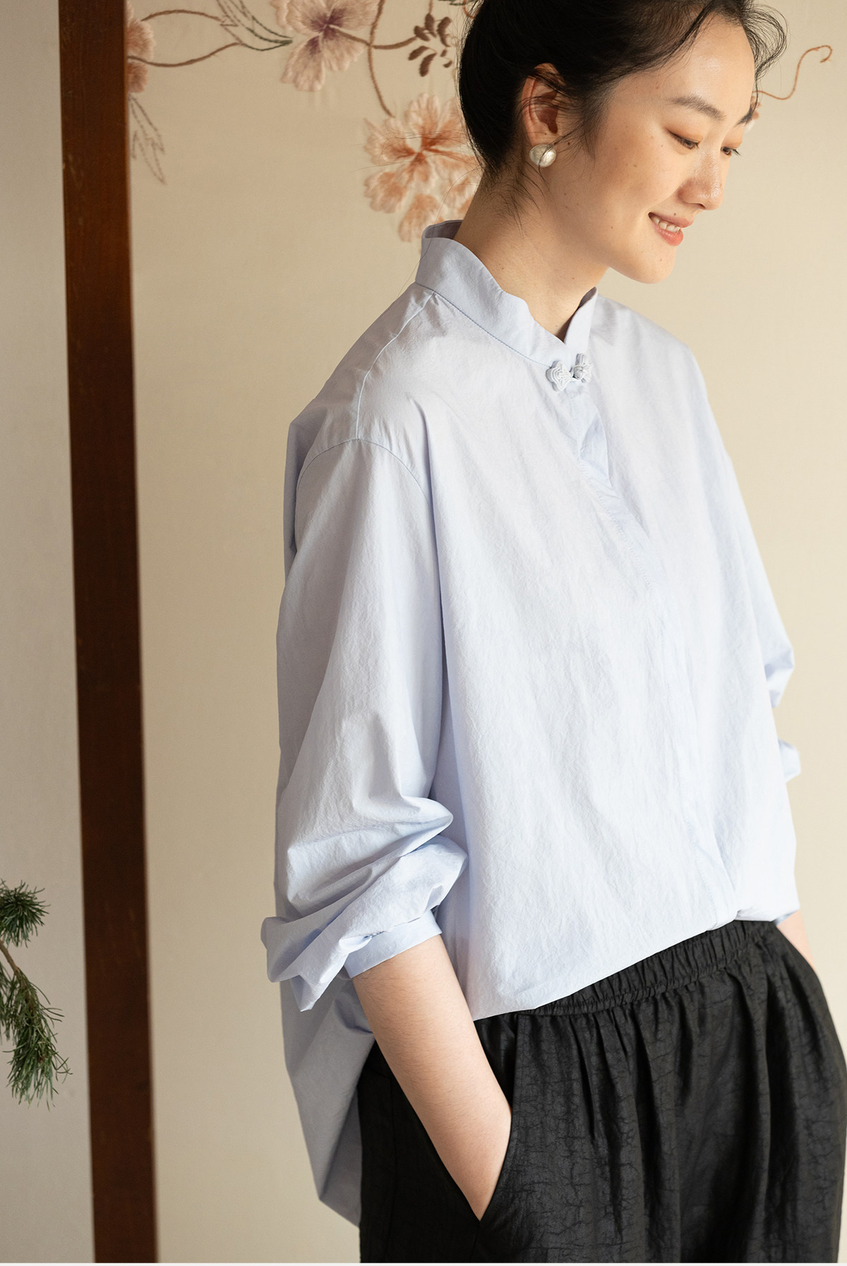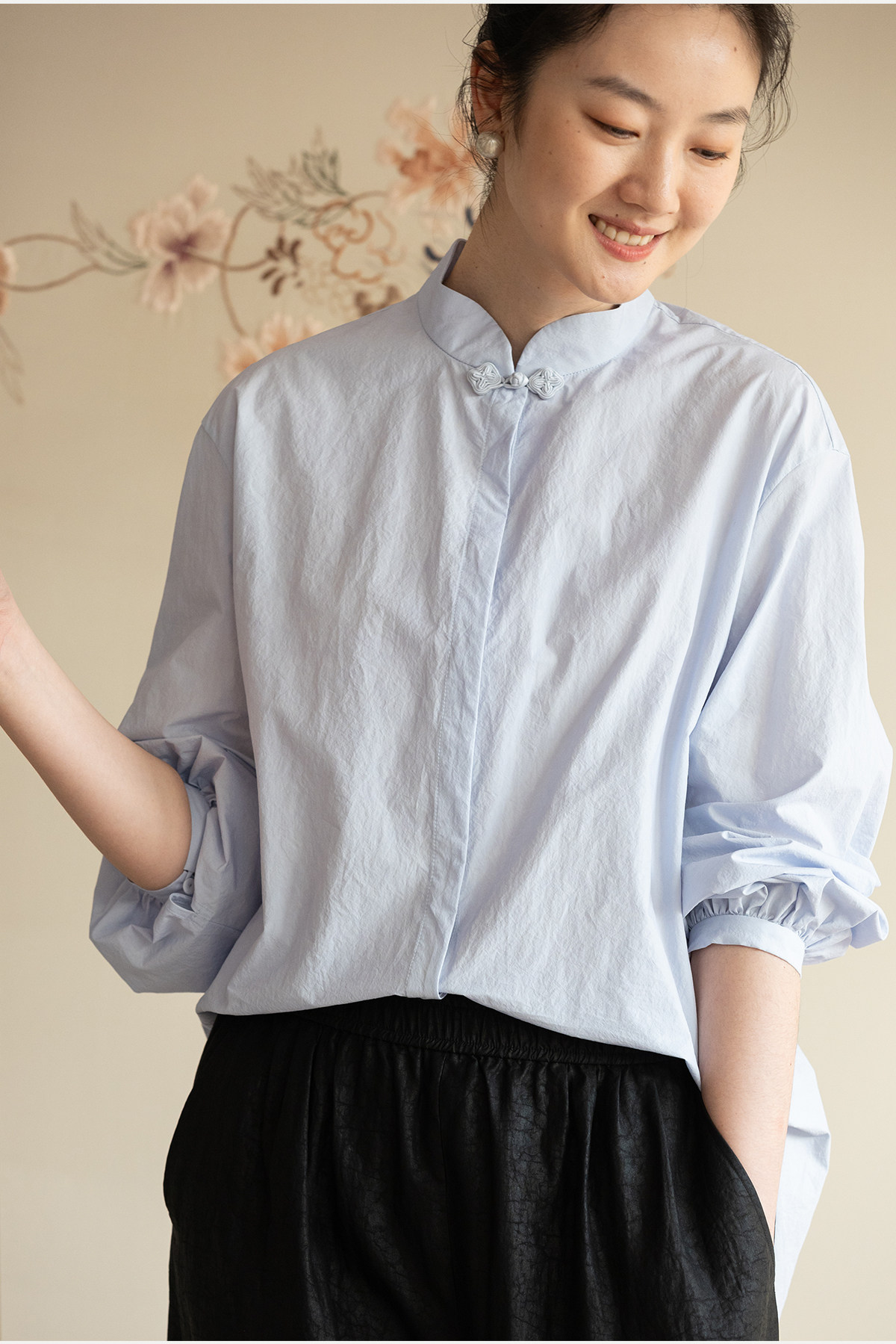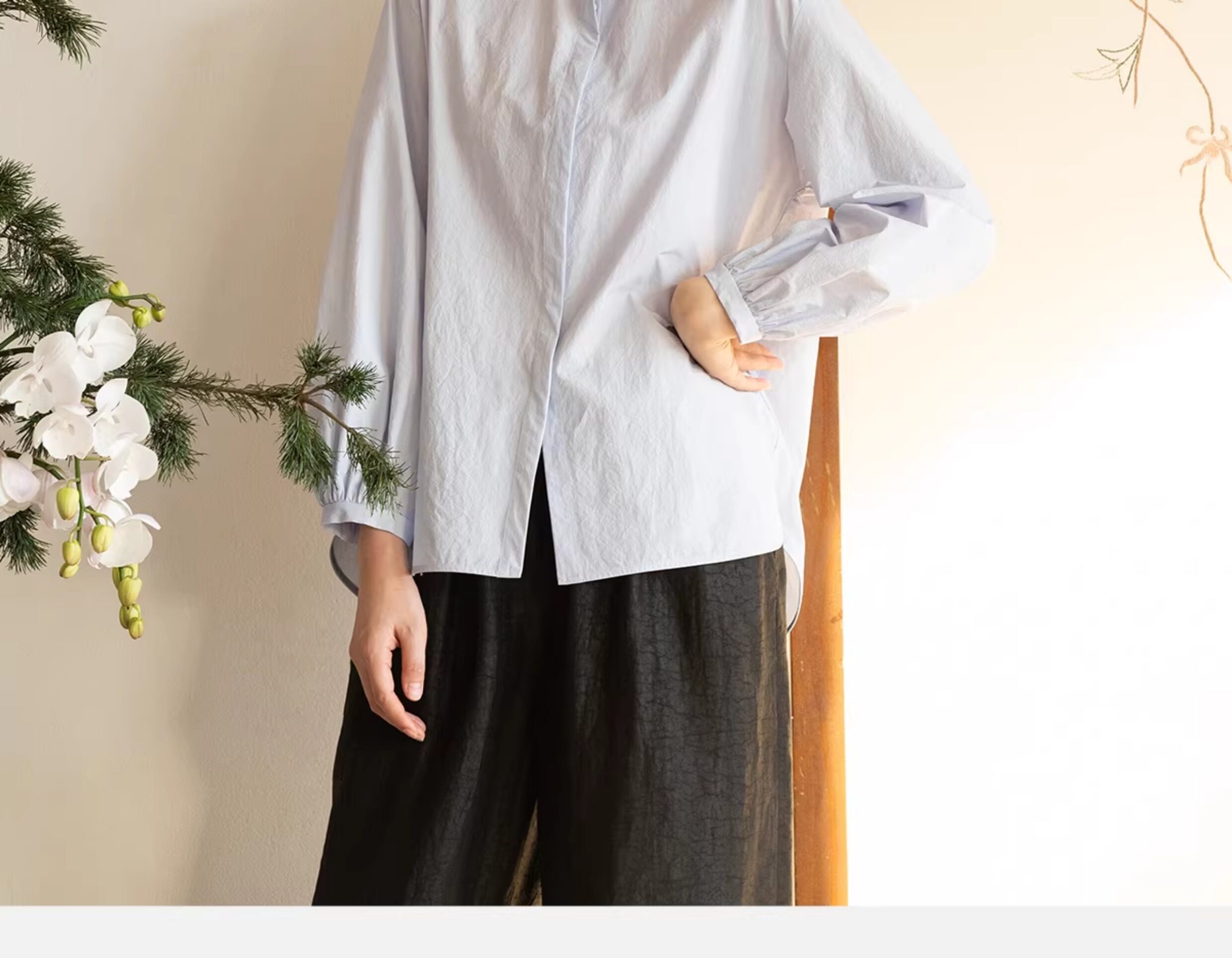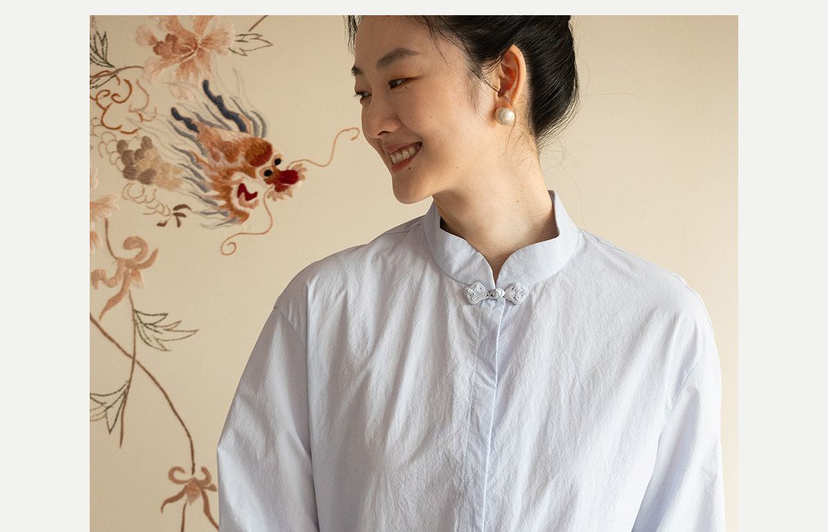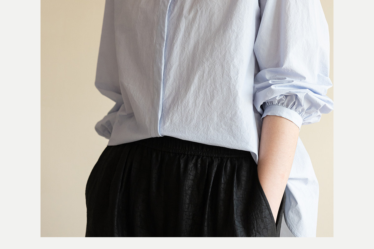 牧衣游原创 80支净色棉质衬衫女新款复古百搭宽松蓝色衬衣 舒川
