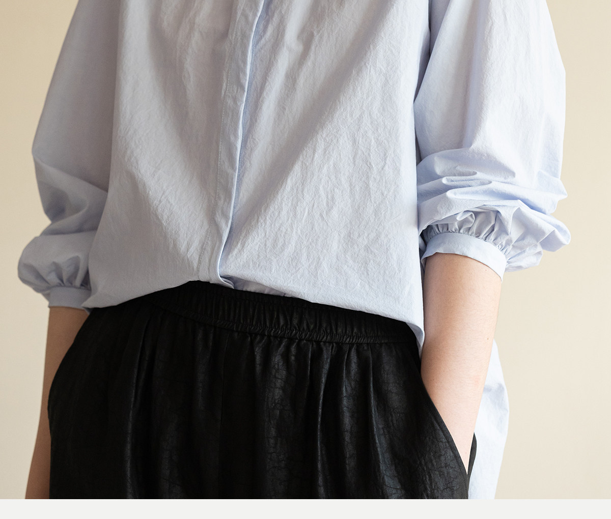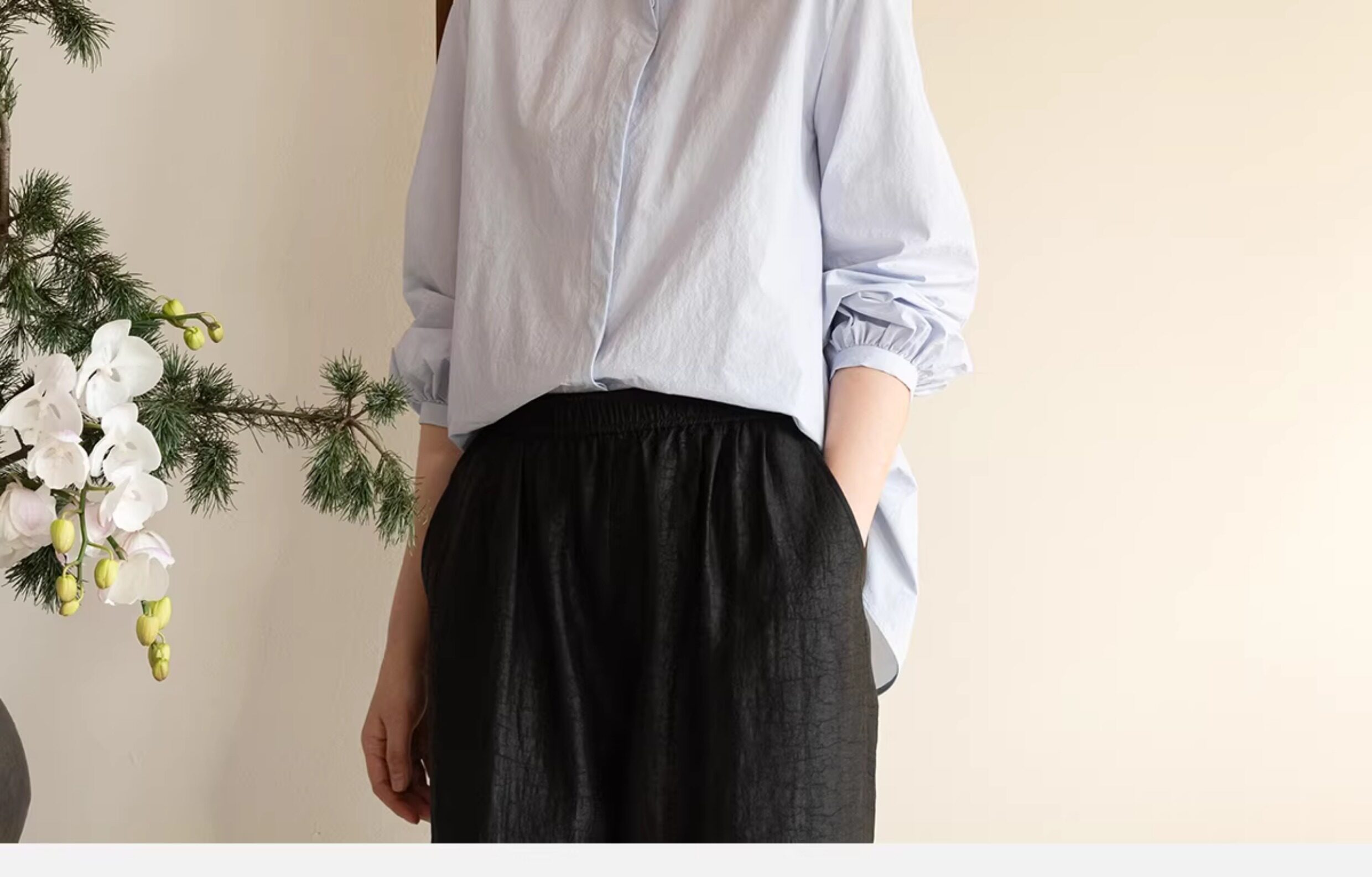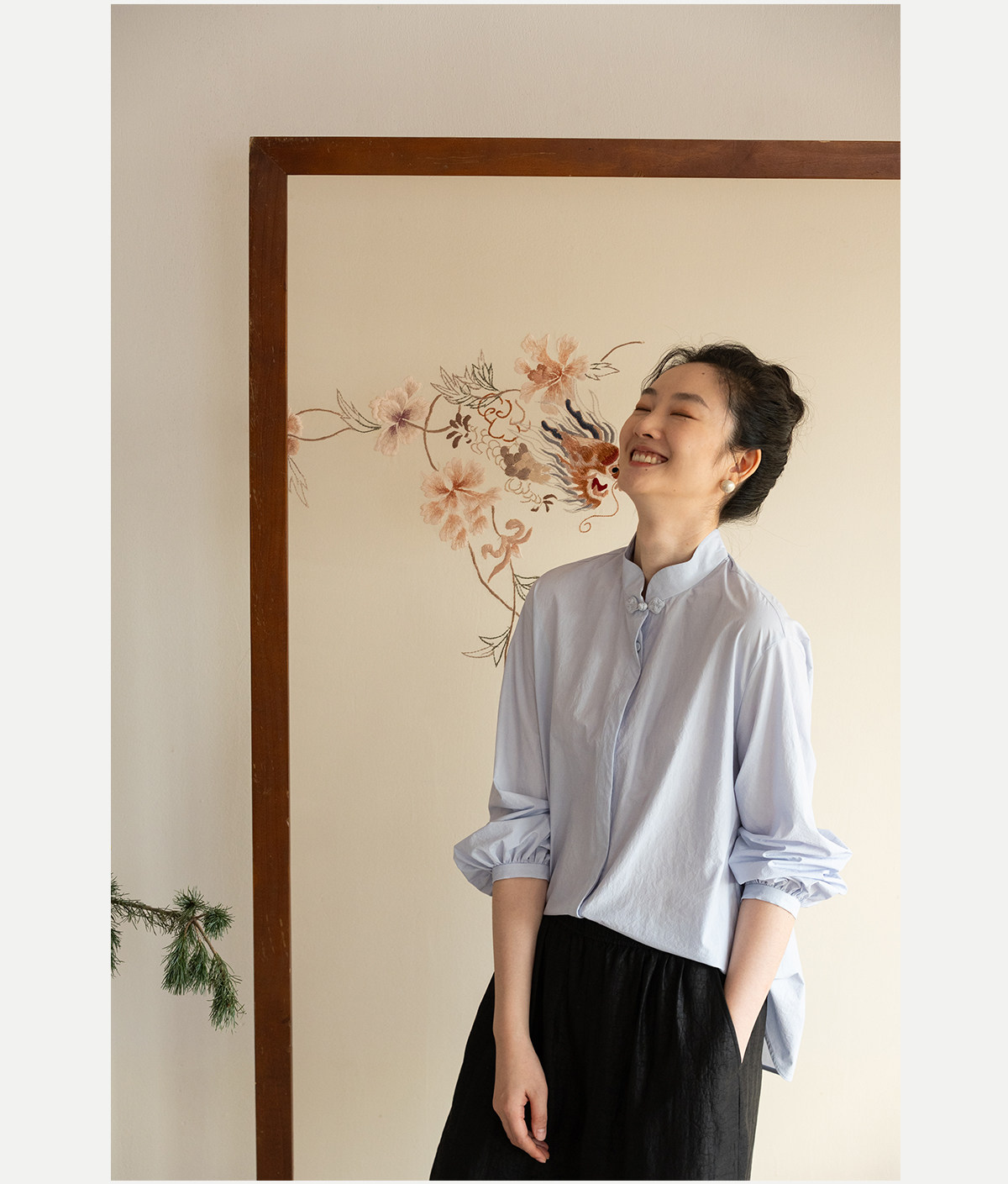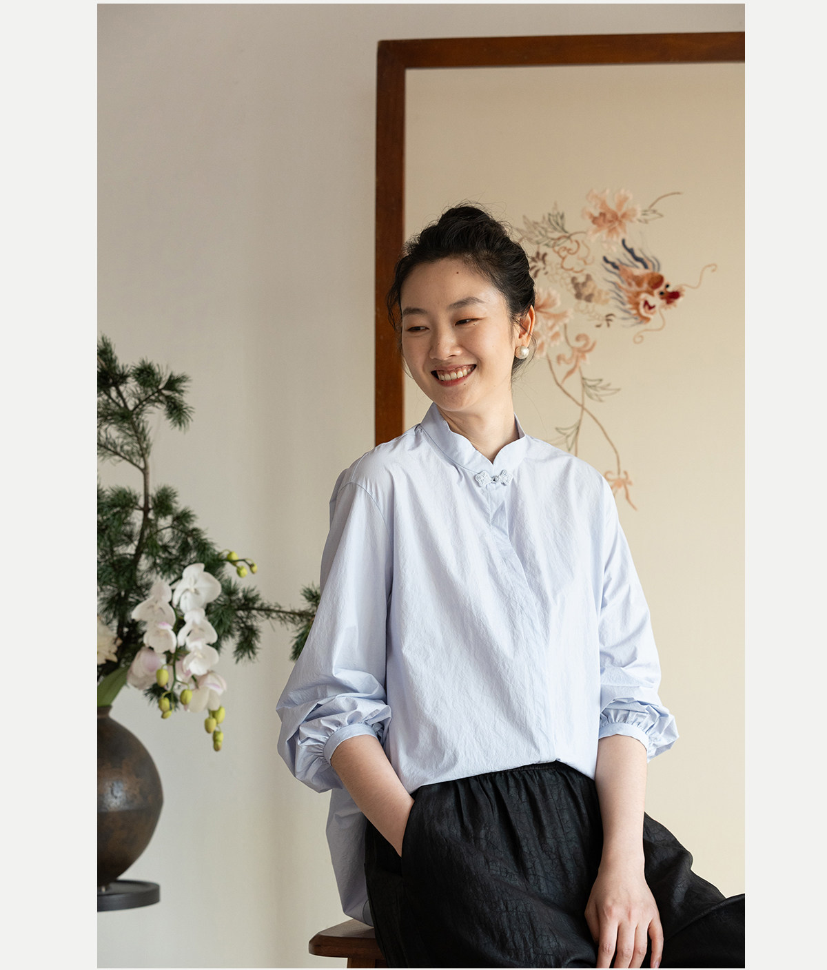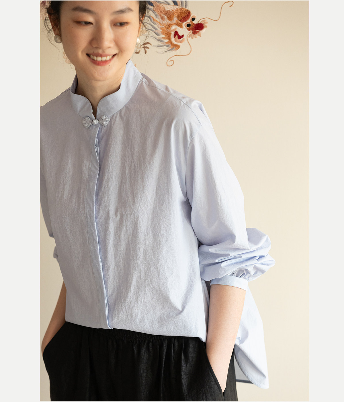 牧衣游原创 80支净色棉质衬衫女新款复古百搭宽松蓝色衬衣 舒川