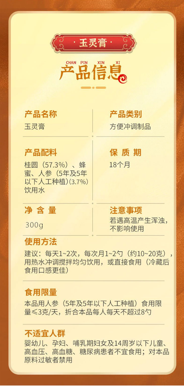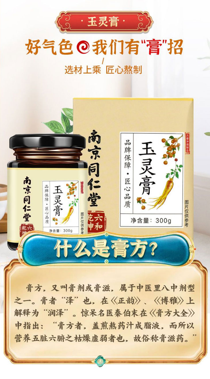 玉灵膏 南京同仁堂玉灵膏桂圆西洋人参手工柴火蒸制调理睡眠