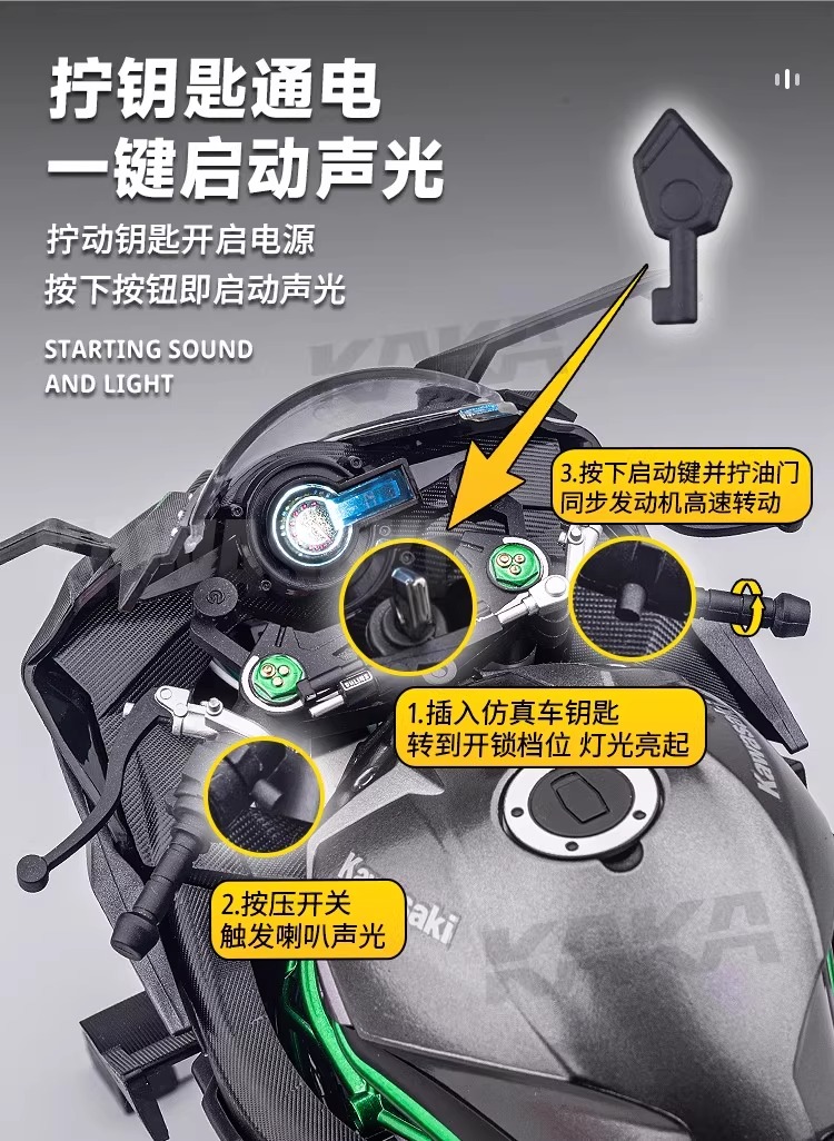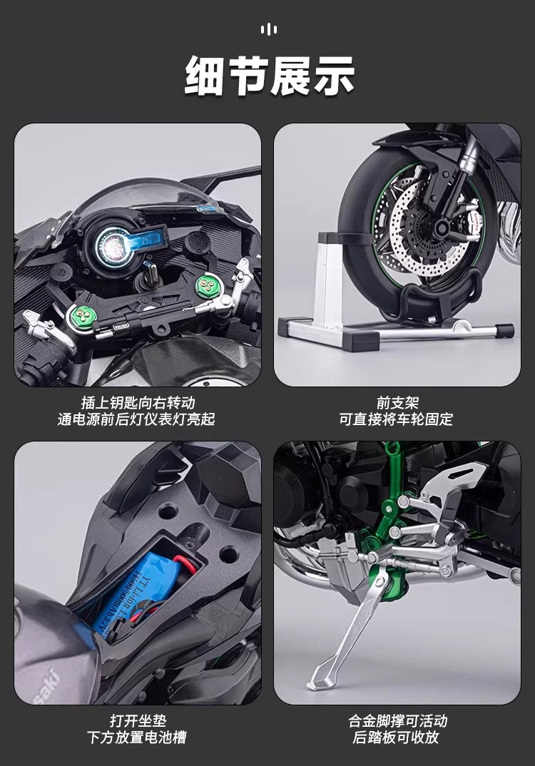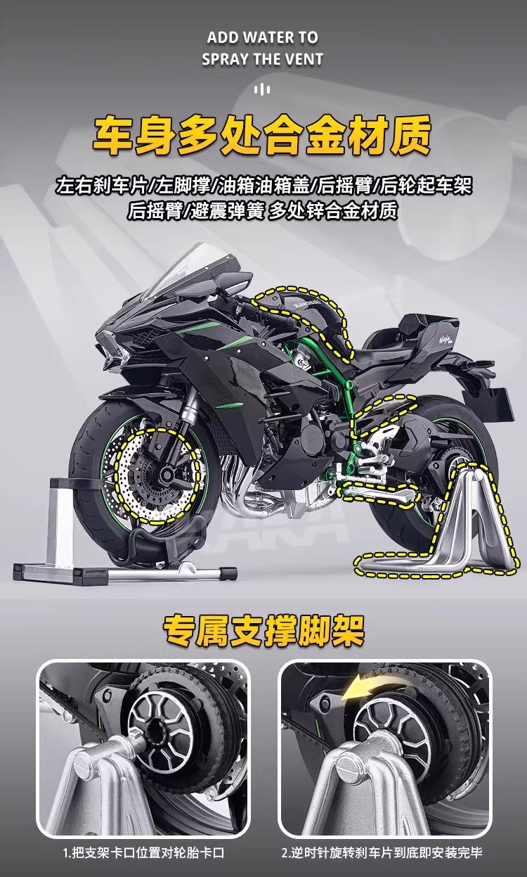 川崎华一喷雾合金摩托车仿真模型机车桌面摆件车模手办男孩礼物收藏男生