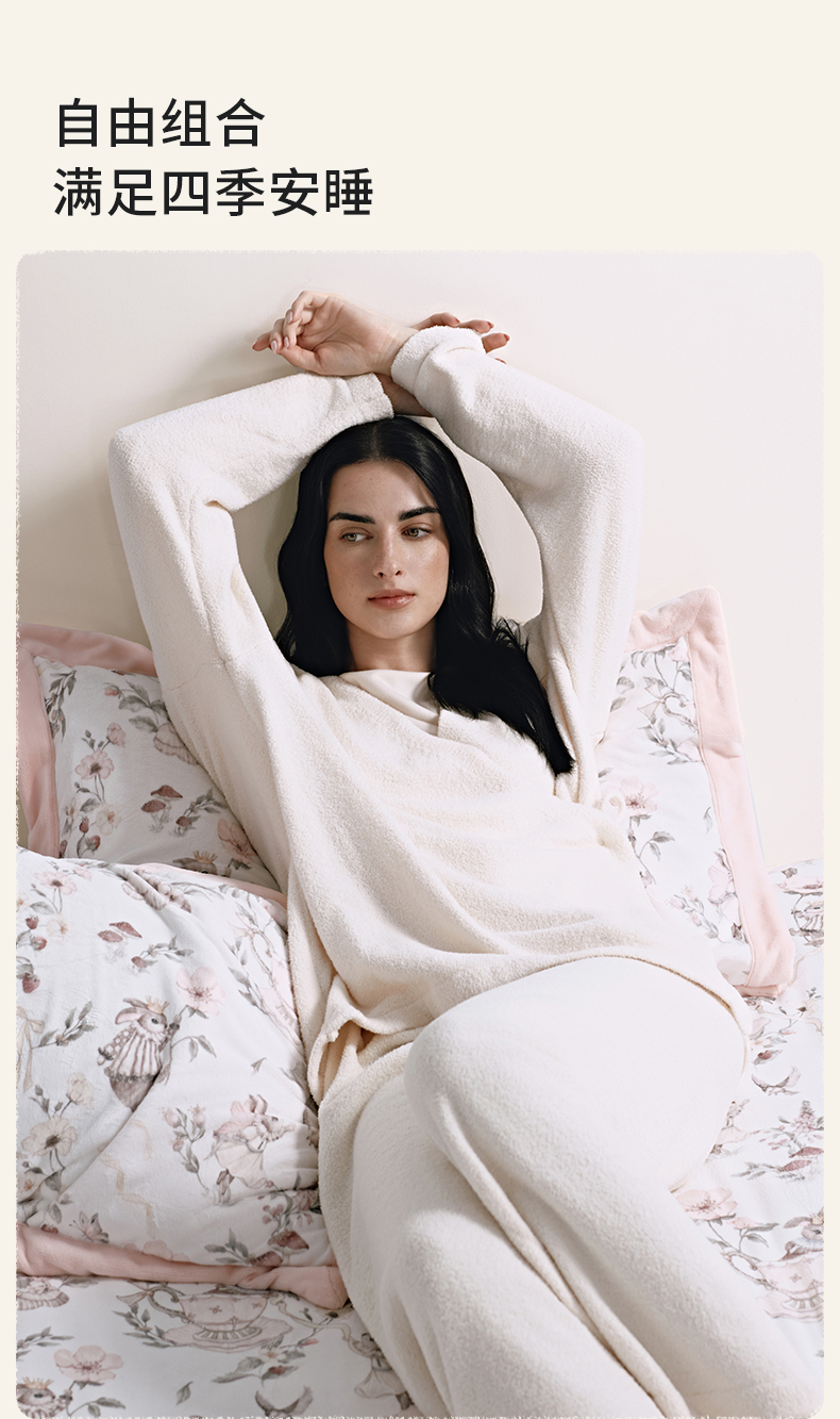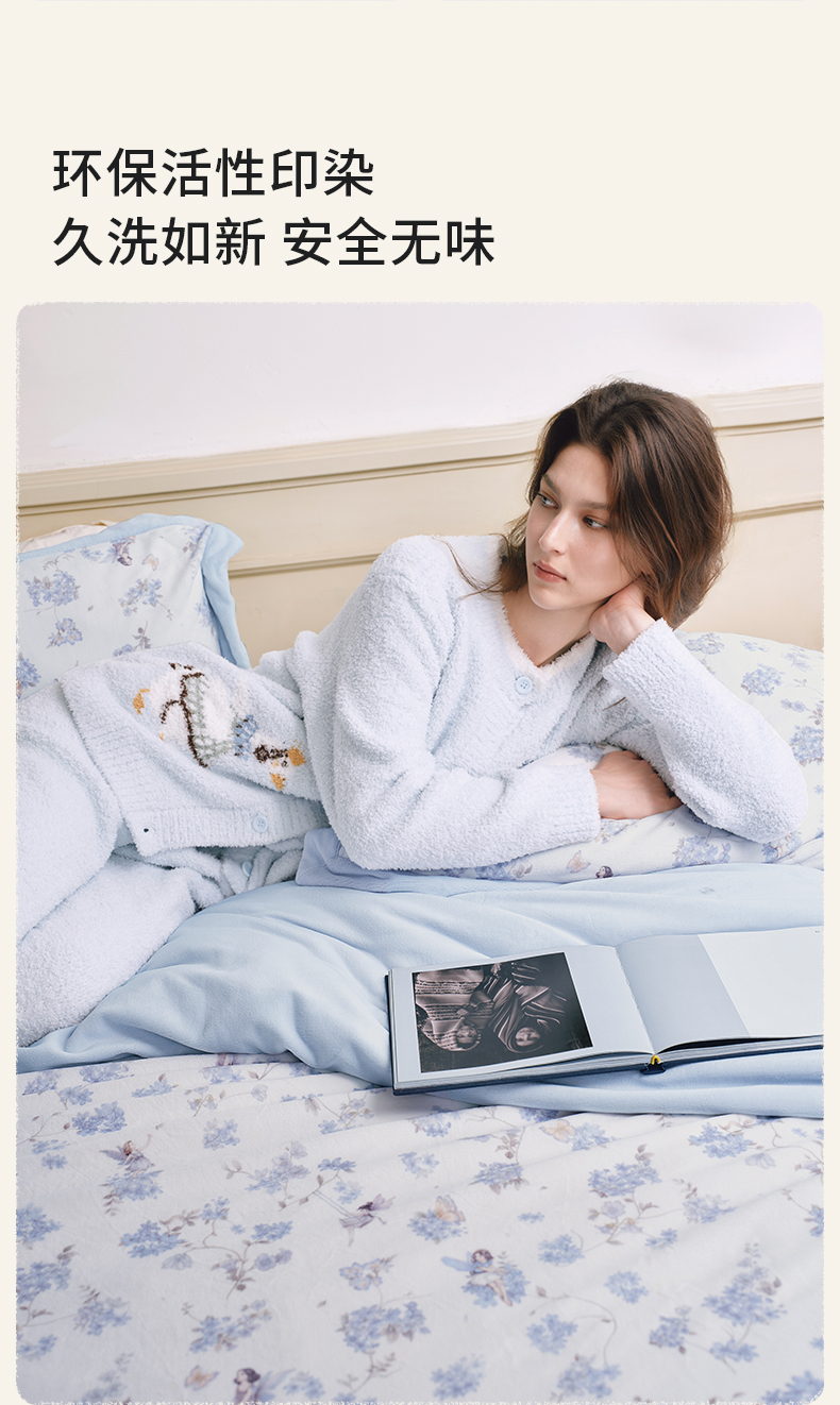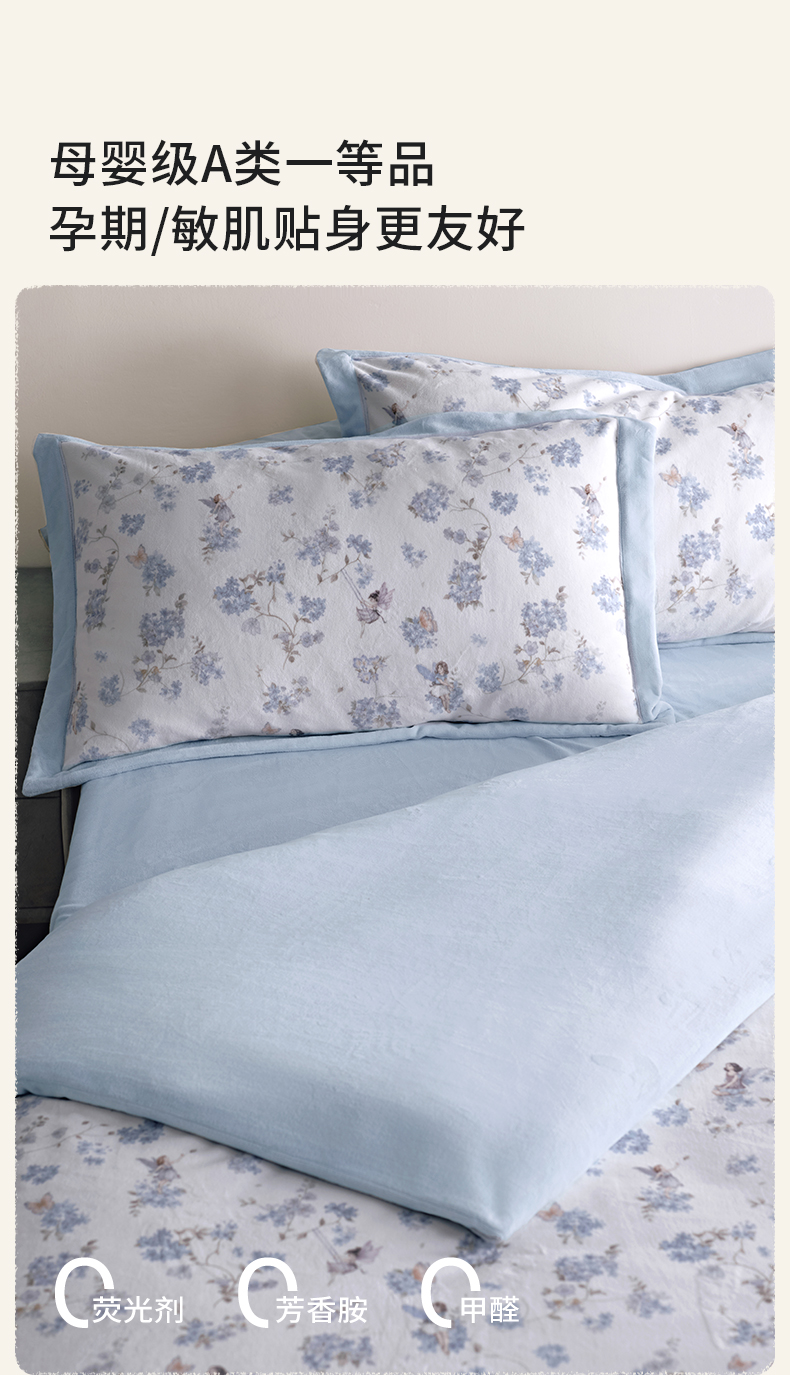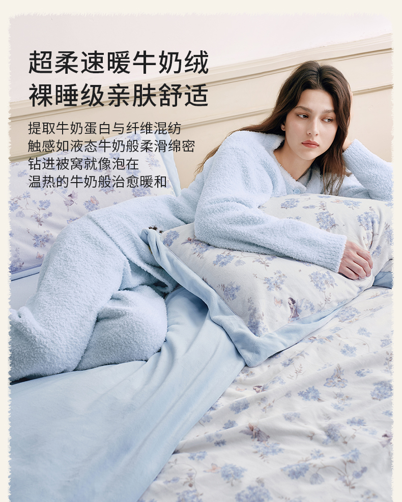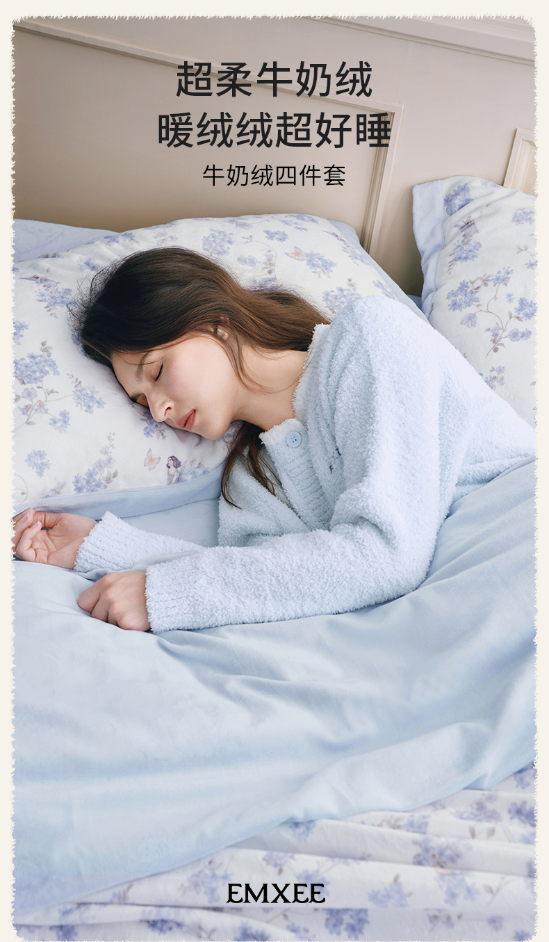 【睡眠寝居】嫚熙成人牛奶绒四件套床上用品抗菌亲肤恒温调湿a类床单被套保暖