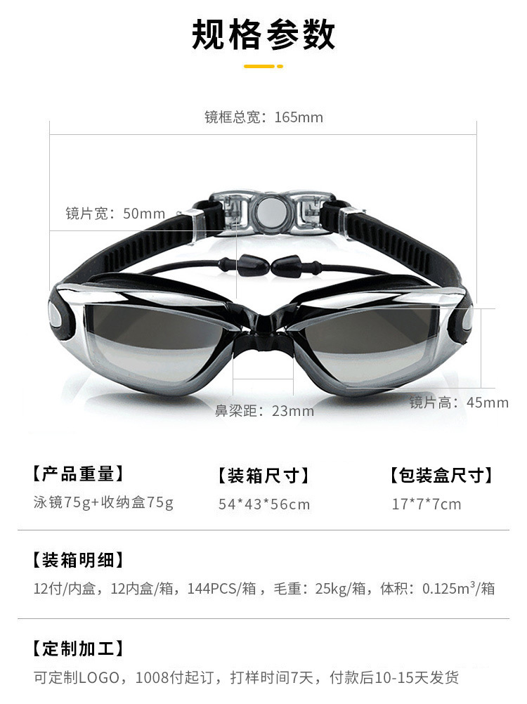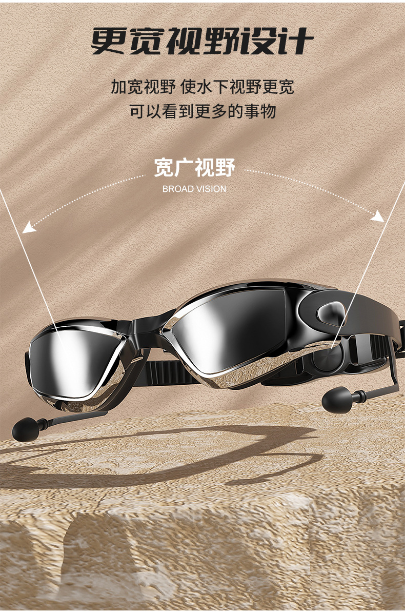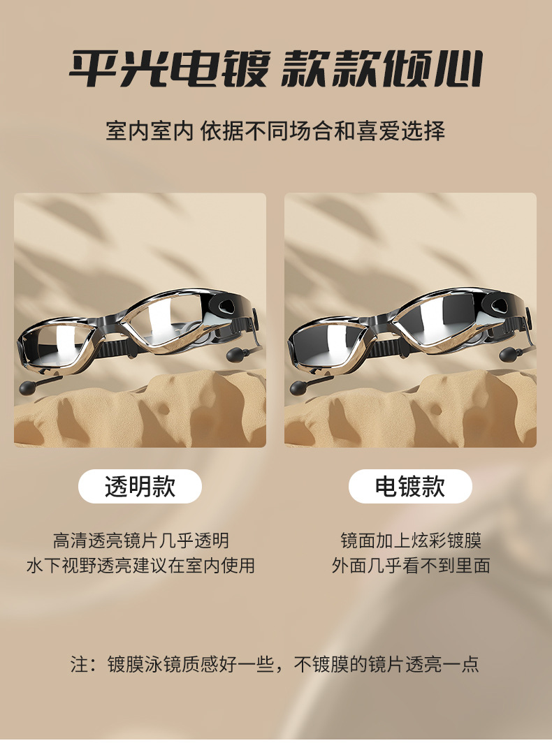 佑游泳镜透明防水防雾男女通用大框电镀游泳护目时尚眼镜