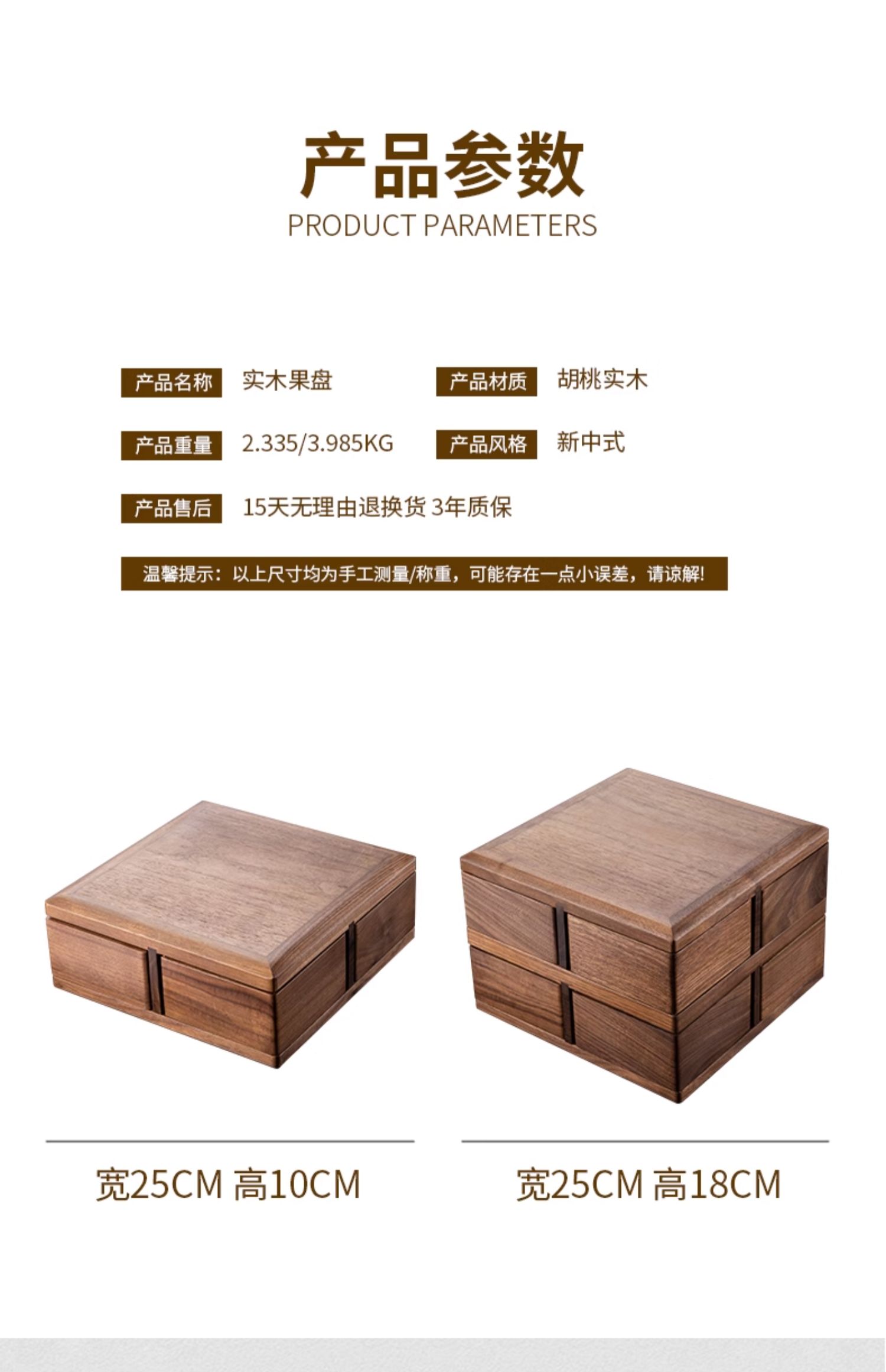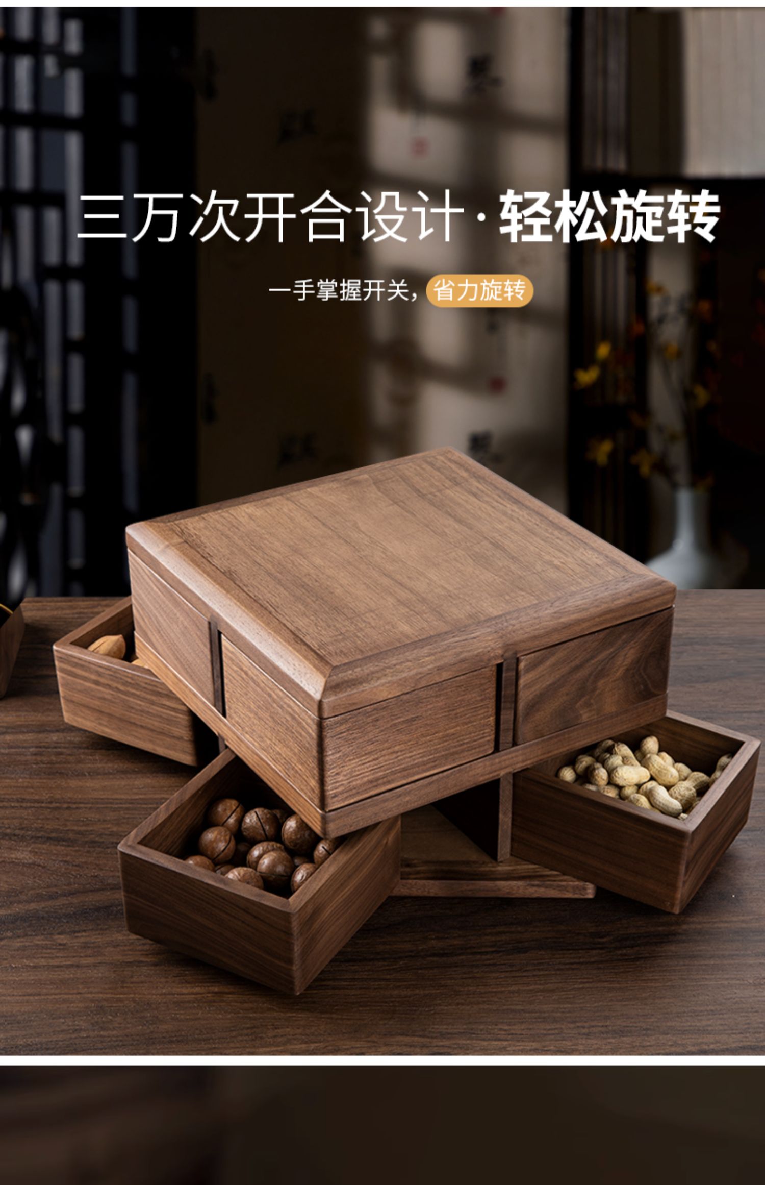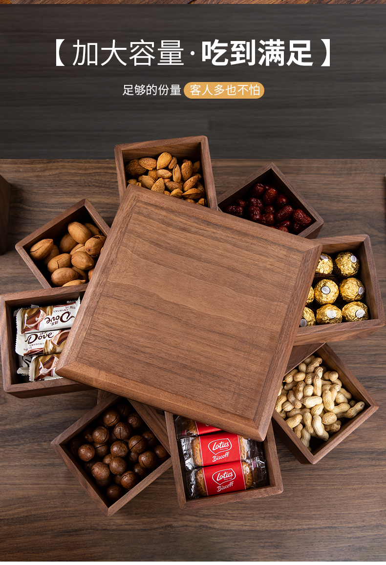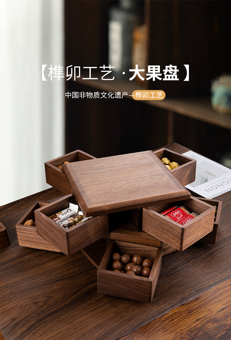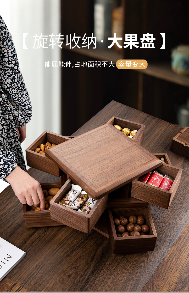 黑胡桃木果盘家用客厅茶几新款干果收纳盒糖果水果零食摆放盘旋转大果盘