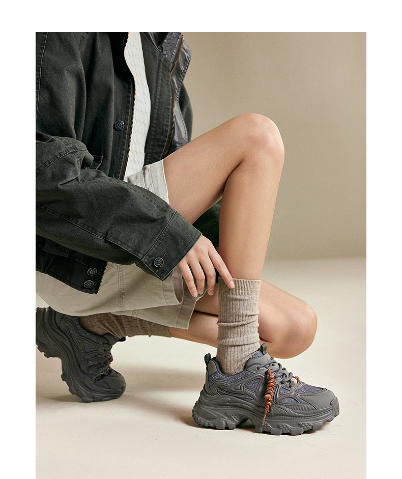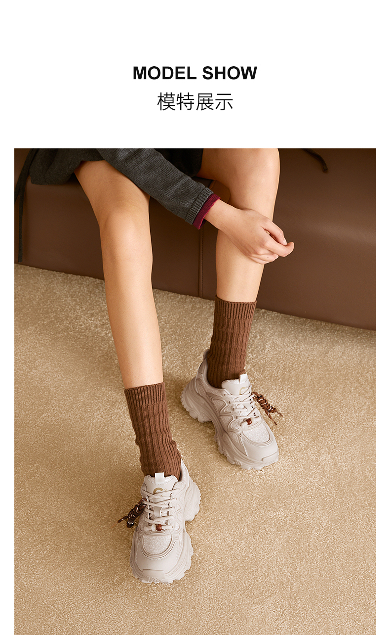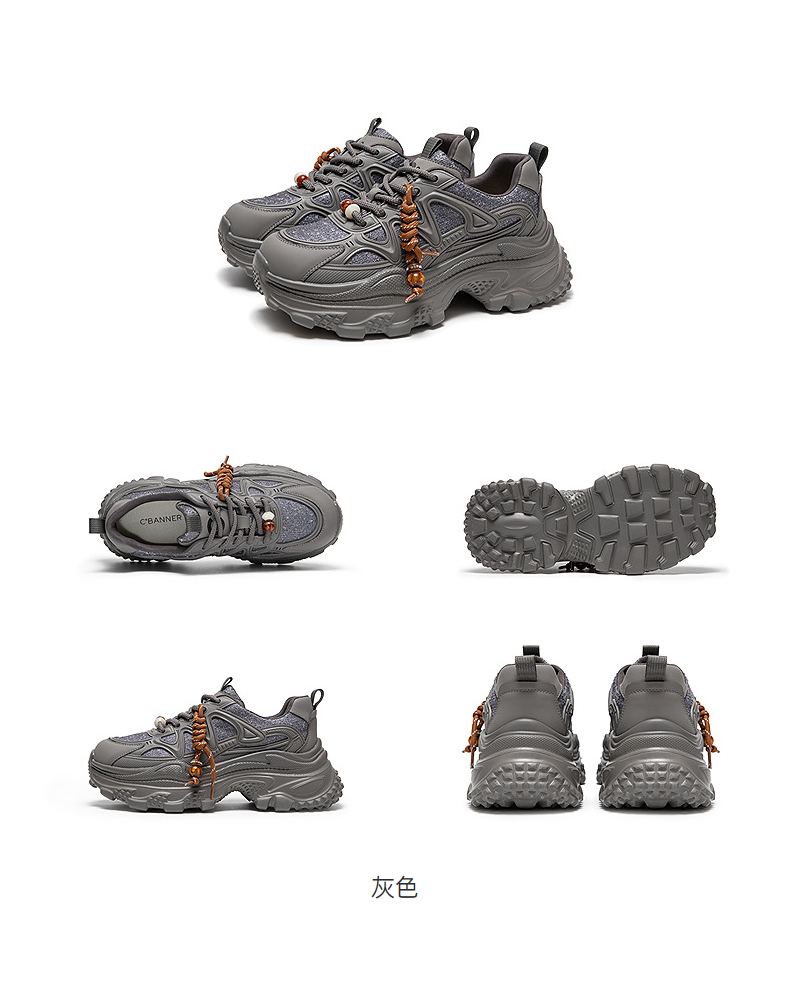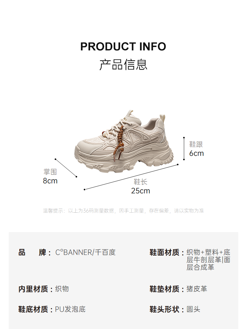 【上新】千百度串珠厚底老爹鞋女2026春季新款增高透气轻便舒适运动休闲鞋A26151107