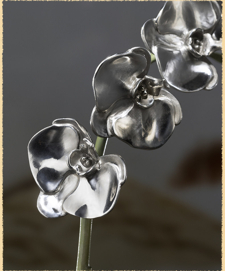 铜师傅《蝴蝶兰》客厅桌面白铜兰花摆件 家居装饰工艺品