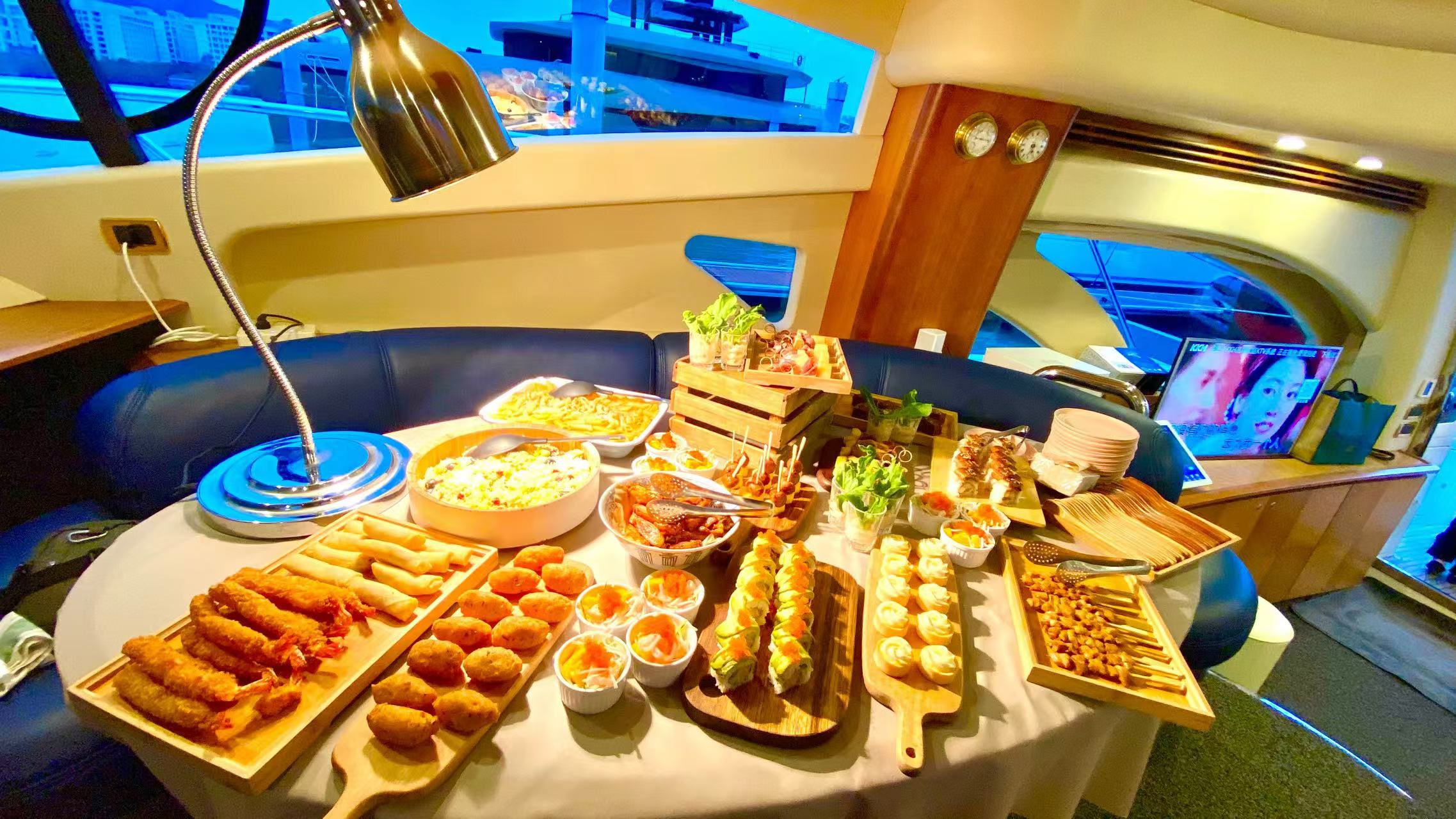 1. 遊艇上設備有KTV、雪櫃、救生衣。