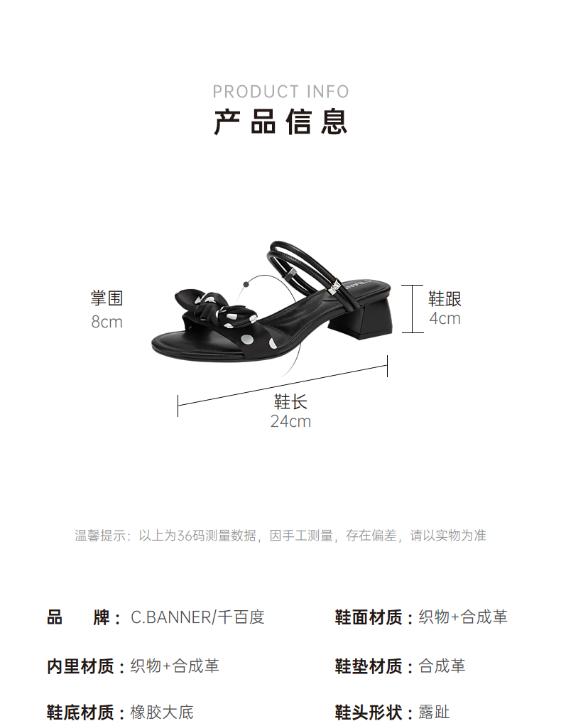 千百度蝴蝶结外穿凉拖鞋女款夏季时尚一字拖仙女风半拖鞋A24355069
