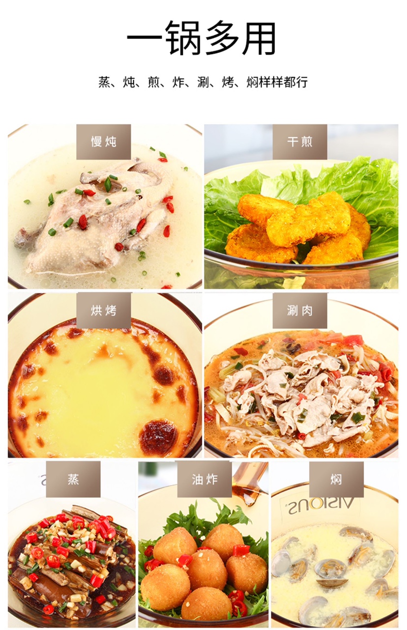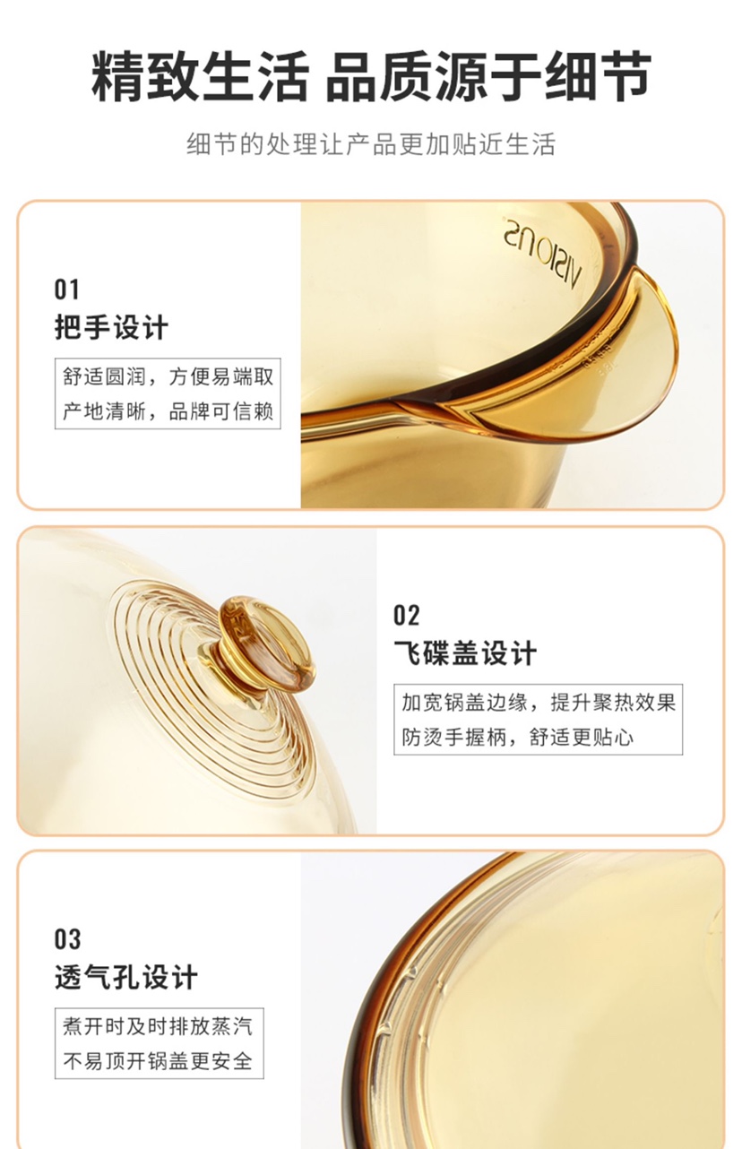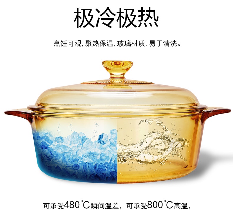 康宁锅(VISIONS)3L方形汤锅玻璃锅透明锅炖锅煮锅锅身耐热耐冷