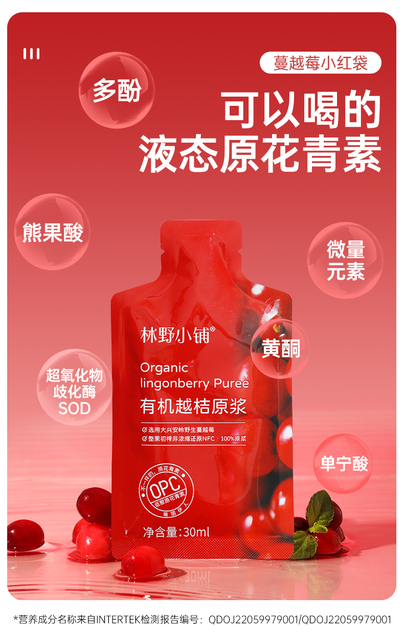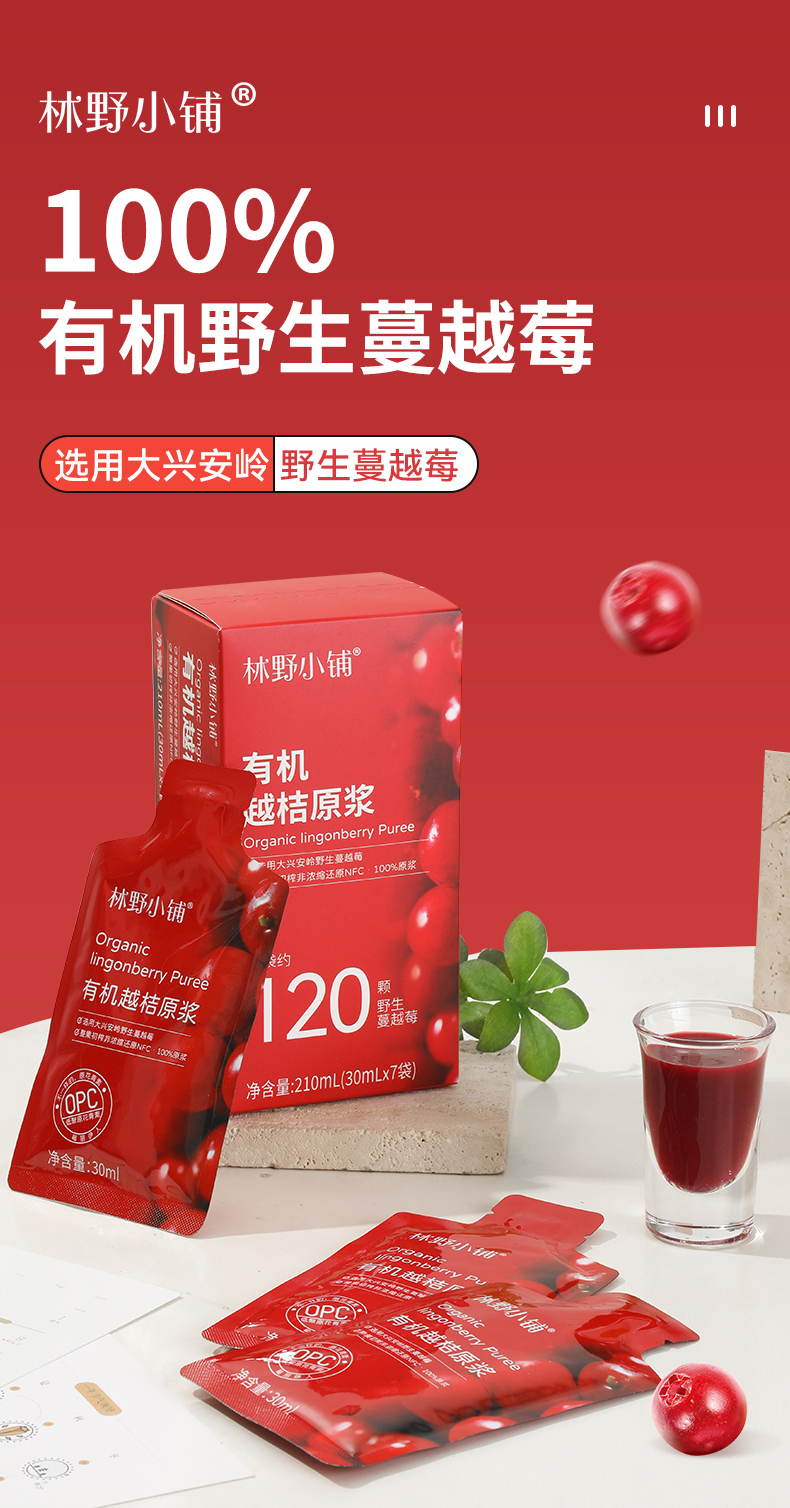 【4盒】越桔(野生蔓越莓)原浆100% 蔓越莓精华 30ML*7