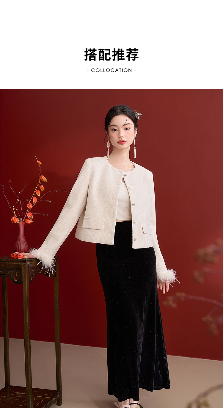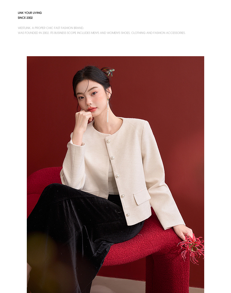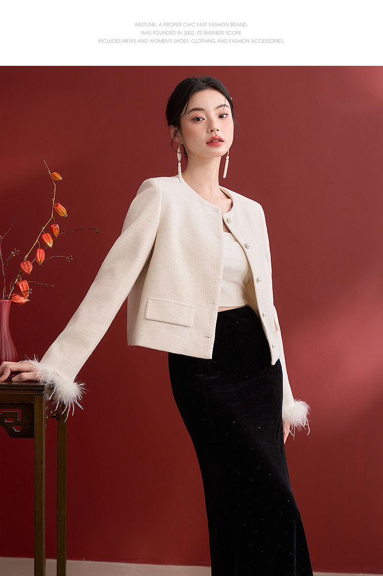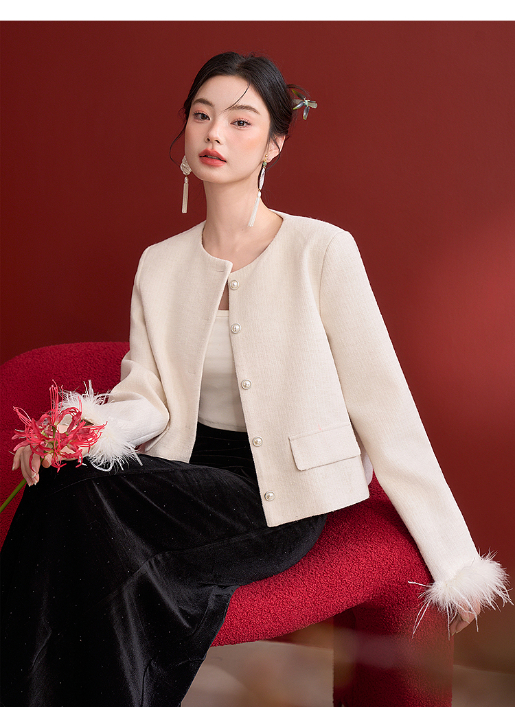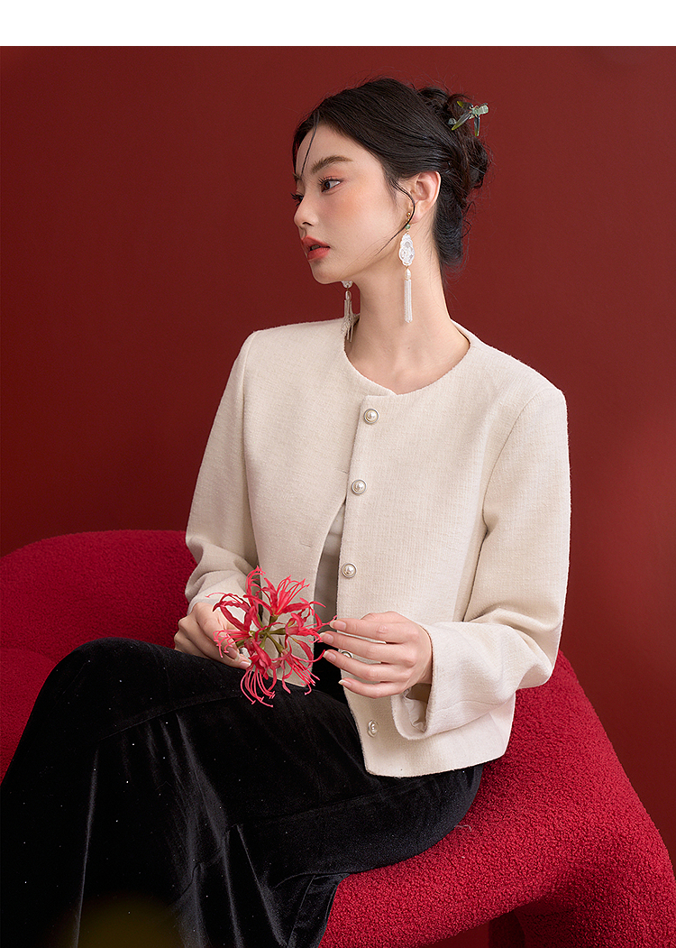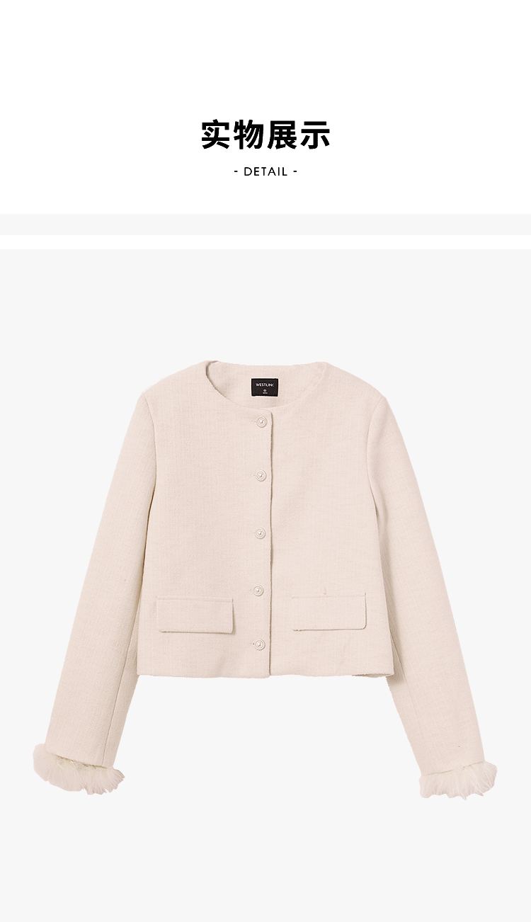 简约百搭毛边袖口短款呢子大衣女厚实圆领外套V0150114