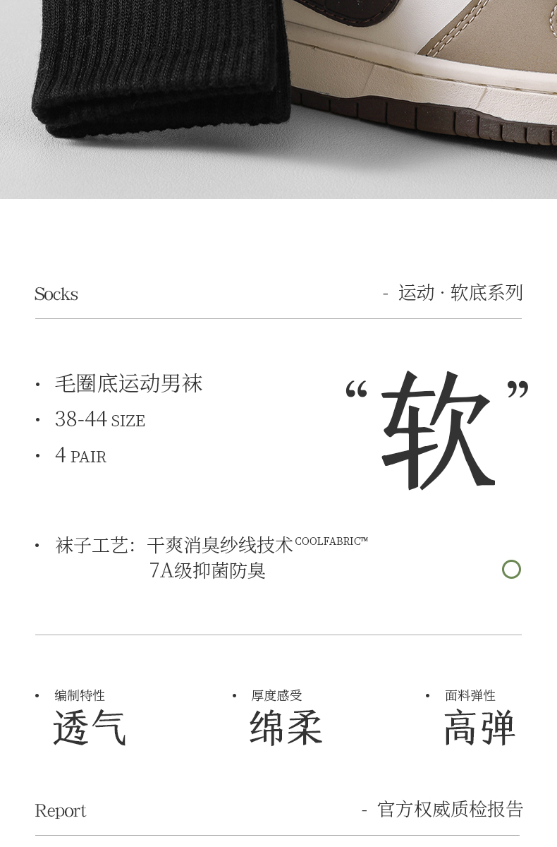 拾袜记丨毛巾底运动袜4双装【38-44码可穿】