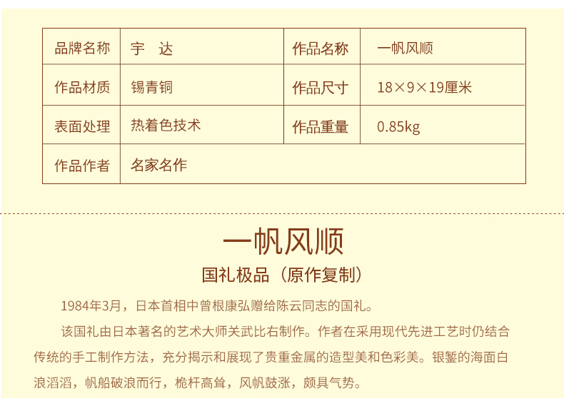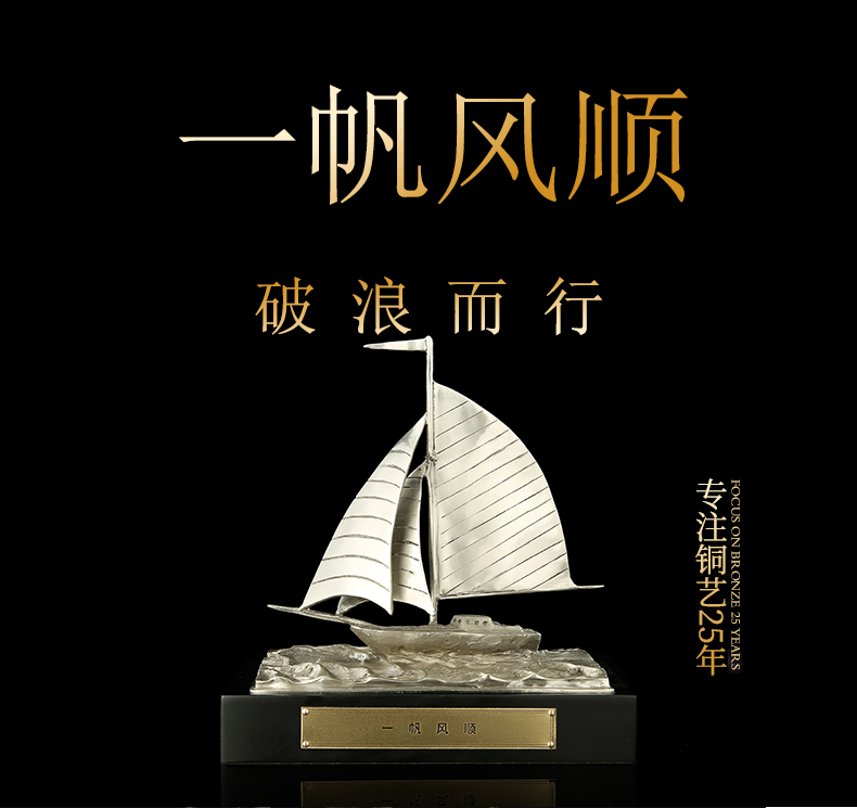 宇达青铜全铜摆件《一帆风顺》仿复制国礼 家居 装饰 工艺礼品 摆件