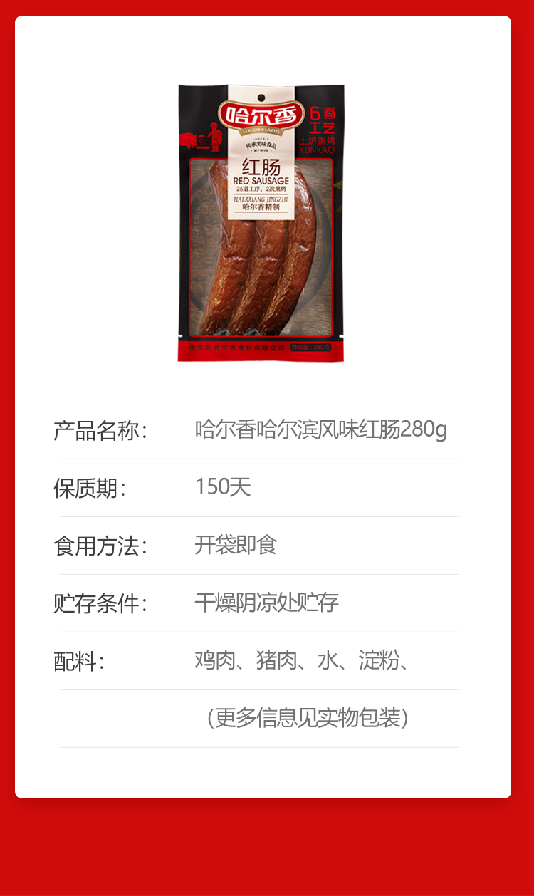 【直发】哈尔香哈尔滨红肠280g*3袋
