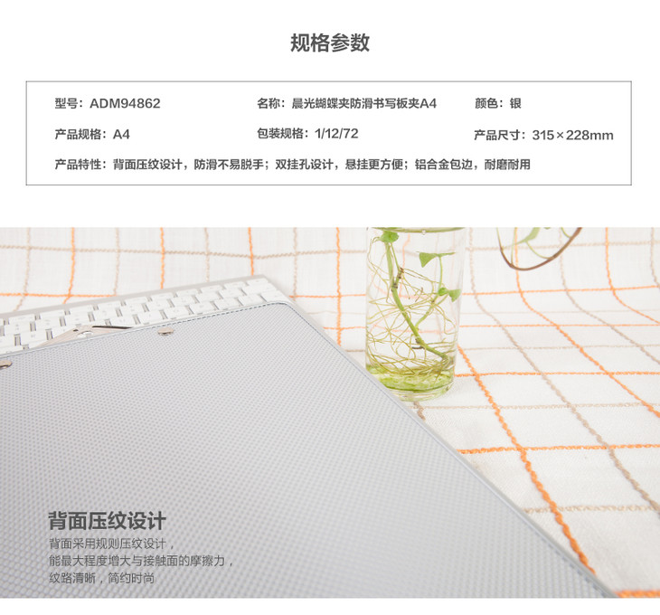 晨光板夹ADM94862蝴蝶夹A4铝合金