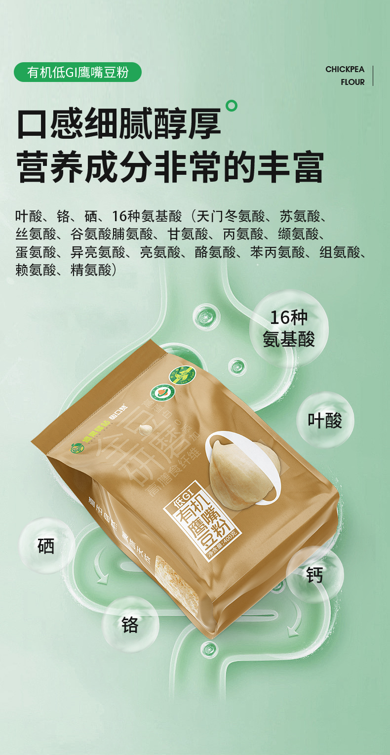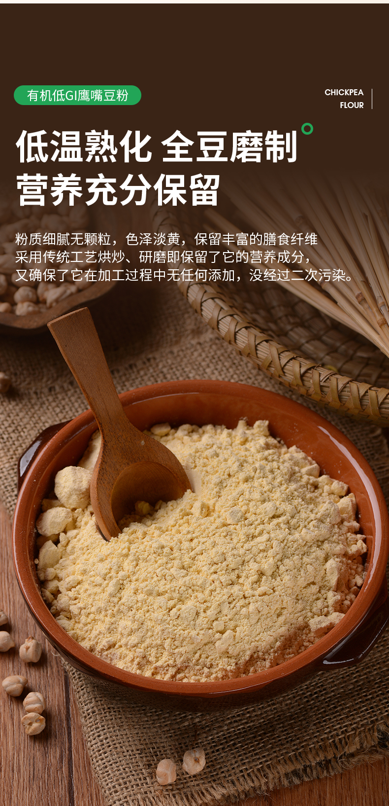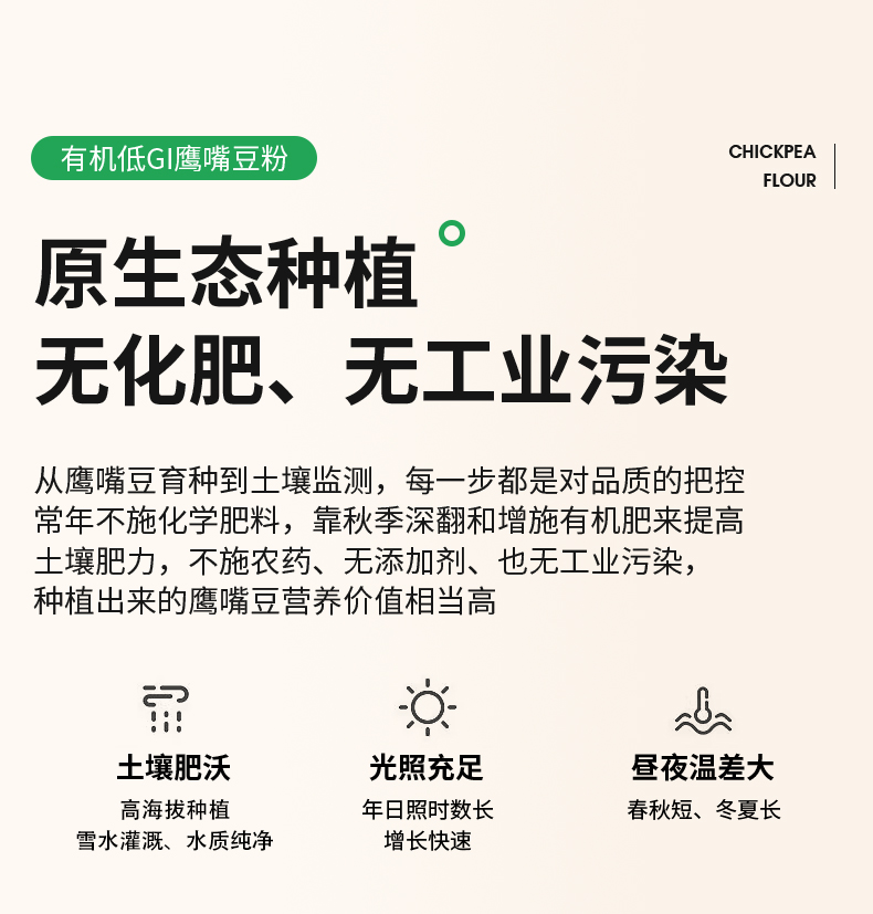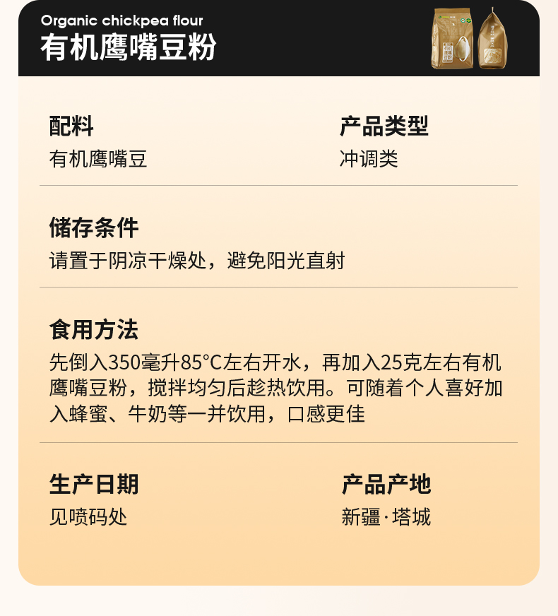【有机鹰嘴豆粉】选用新疆塔城地区 优质有机鹰嘴豆 精挑细选 颗粒饱满 色泽金黄