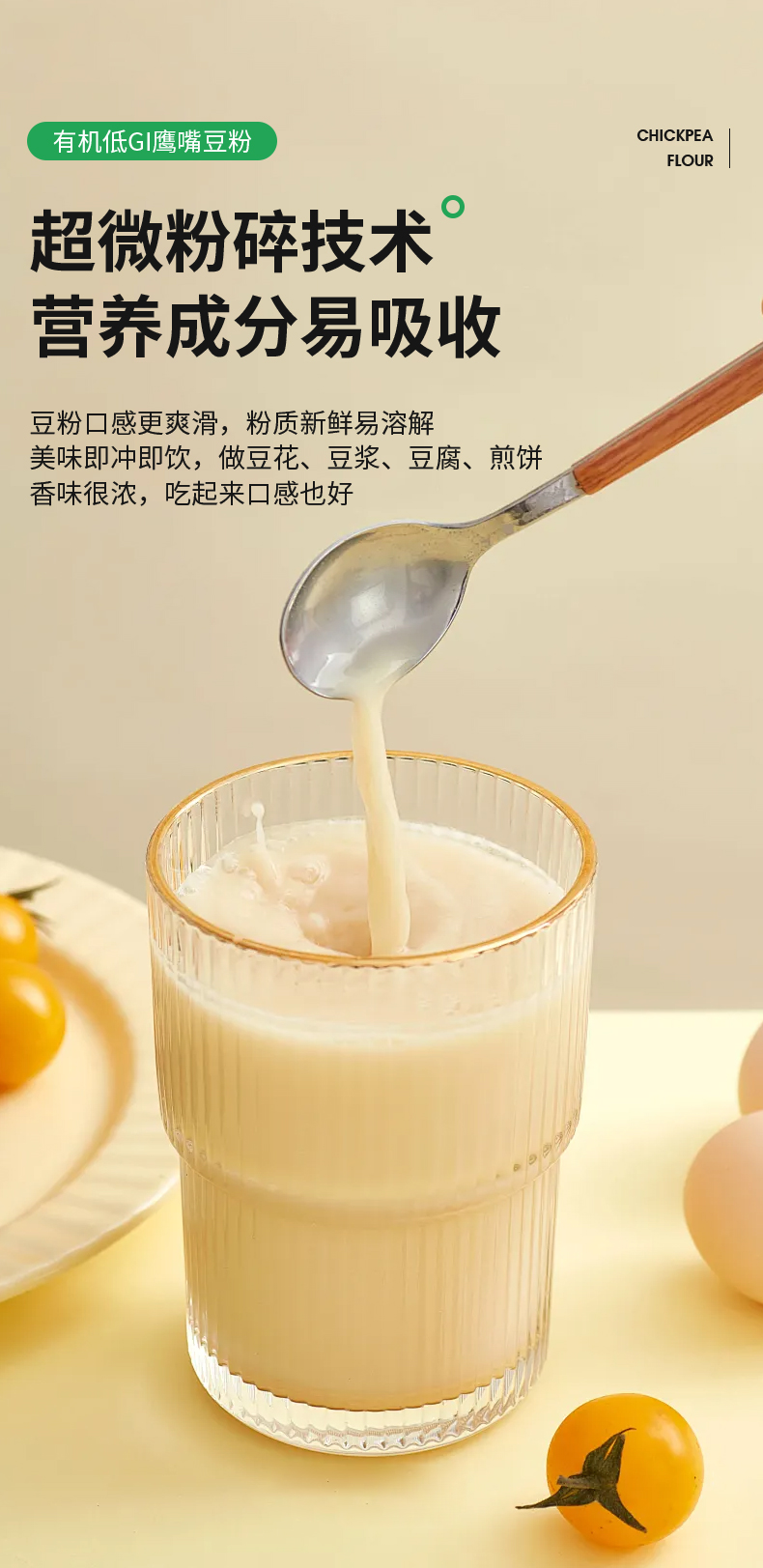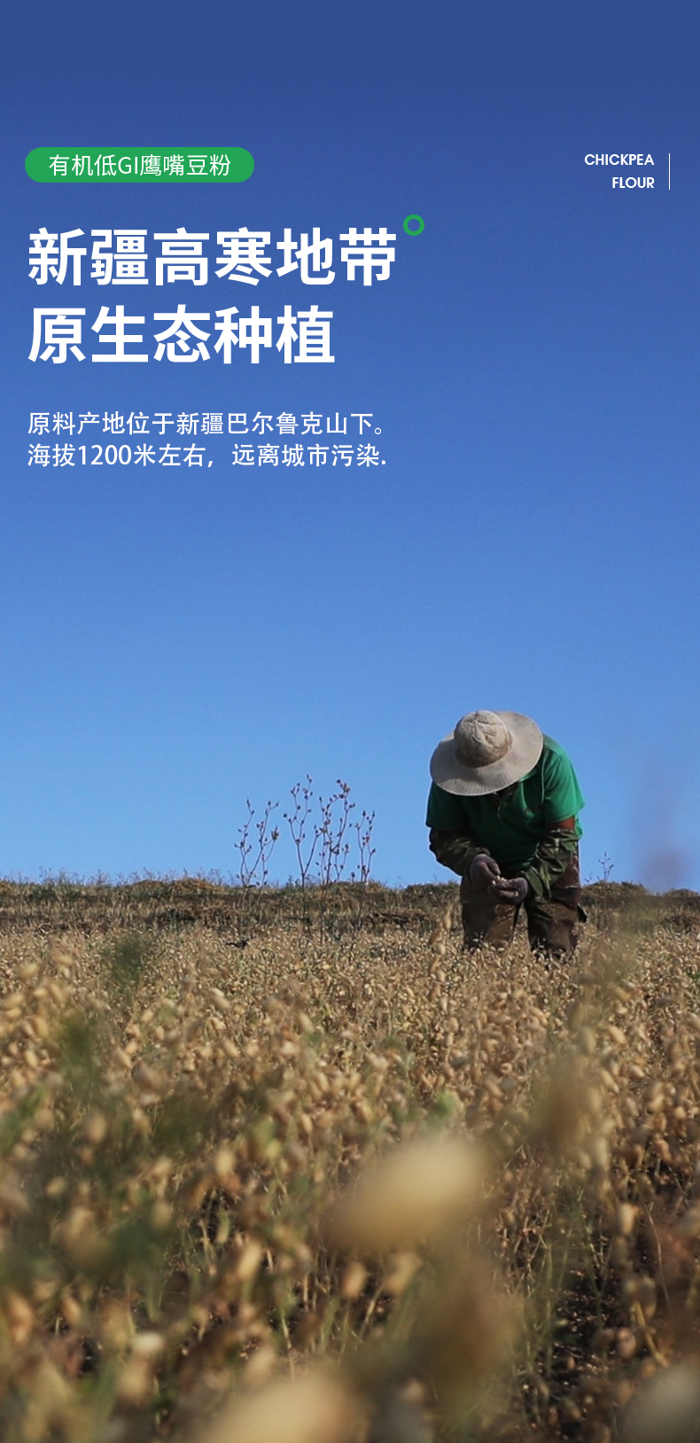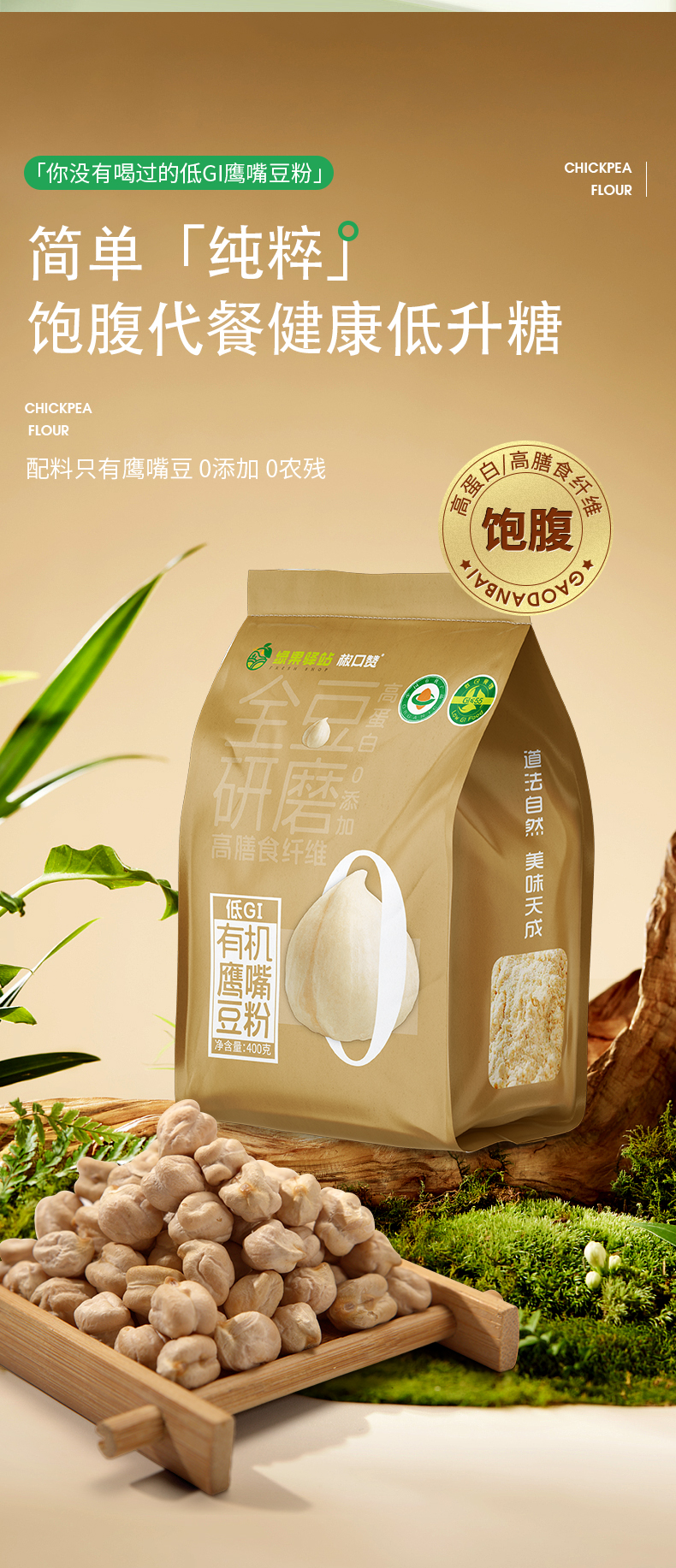 【有机鹰嘴豆粉】选用新疆塔城地区 优质有机鹰嘴豆 精挑细选 颗粒饱满 色泽金黄