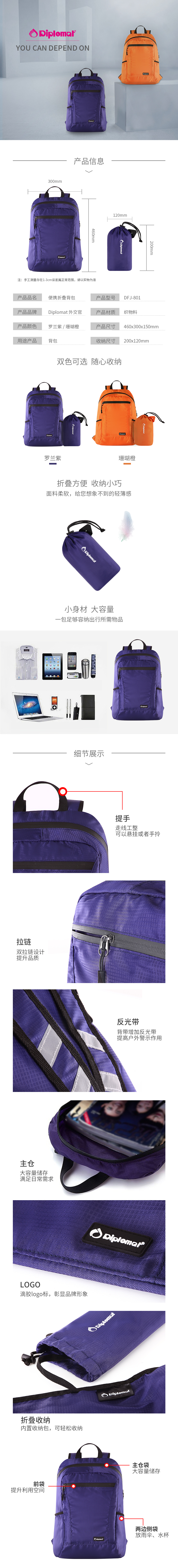 【自营】Diplomat外交官便携折叠背包 两色可选