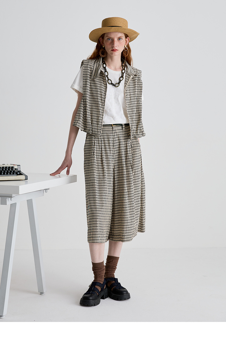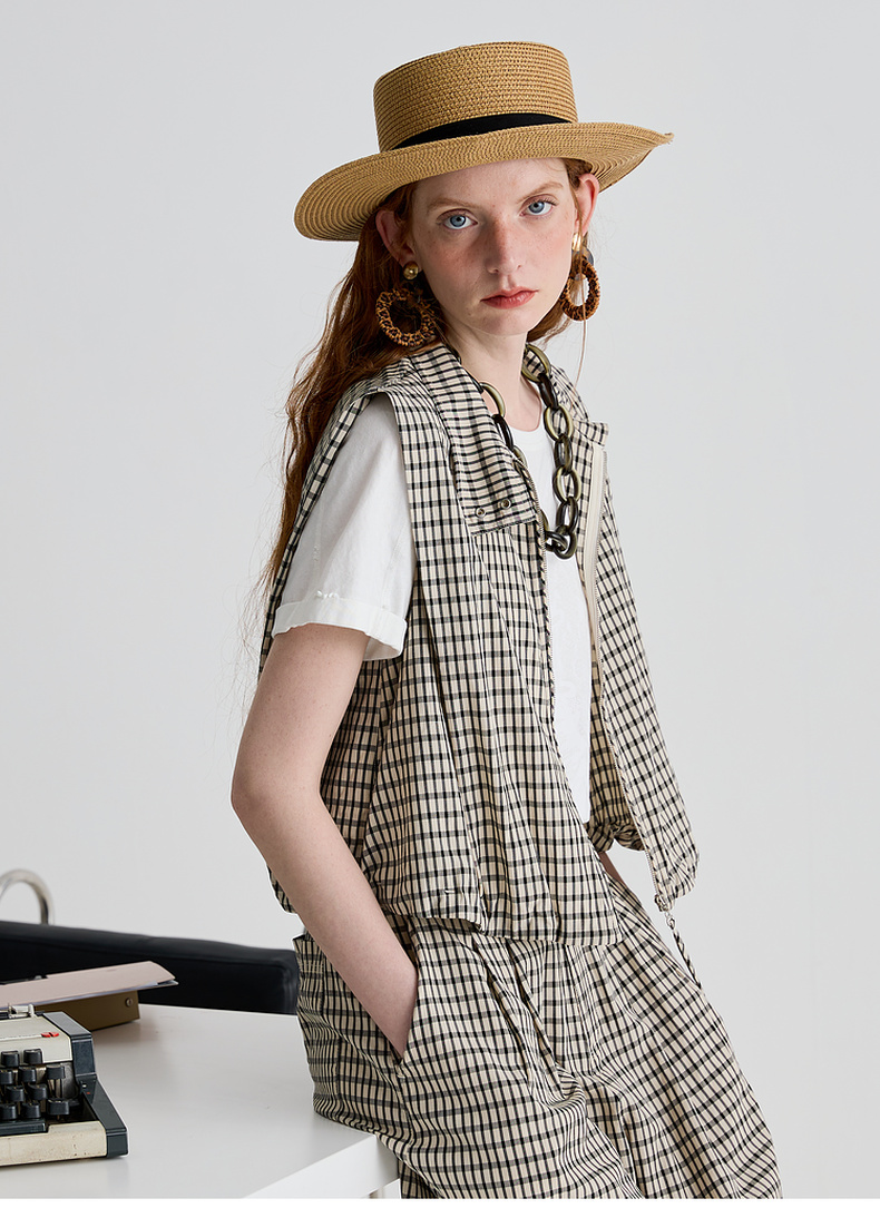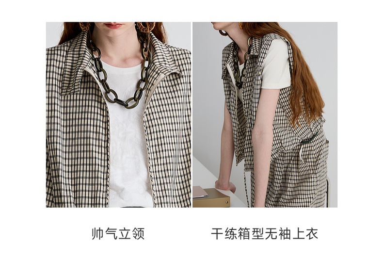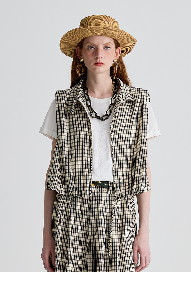 谜底马甲女2025夏季新品复古风通勤宽松H型短款马夹上衣252MS0535