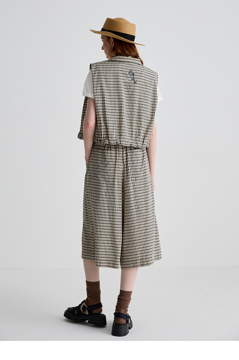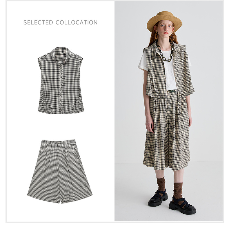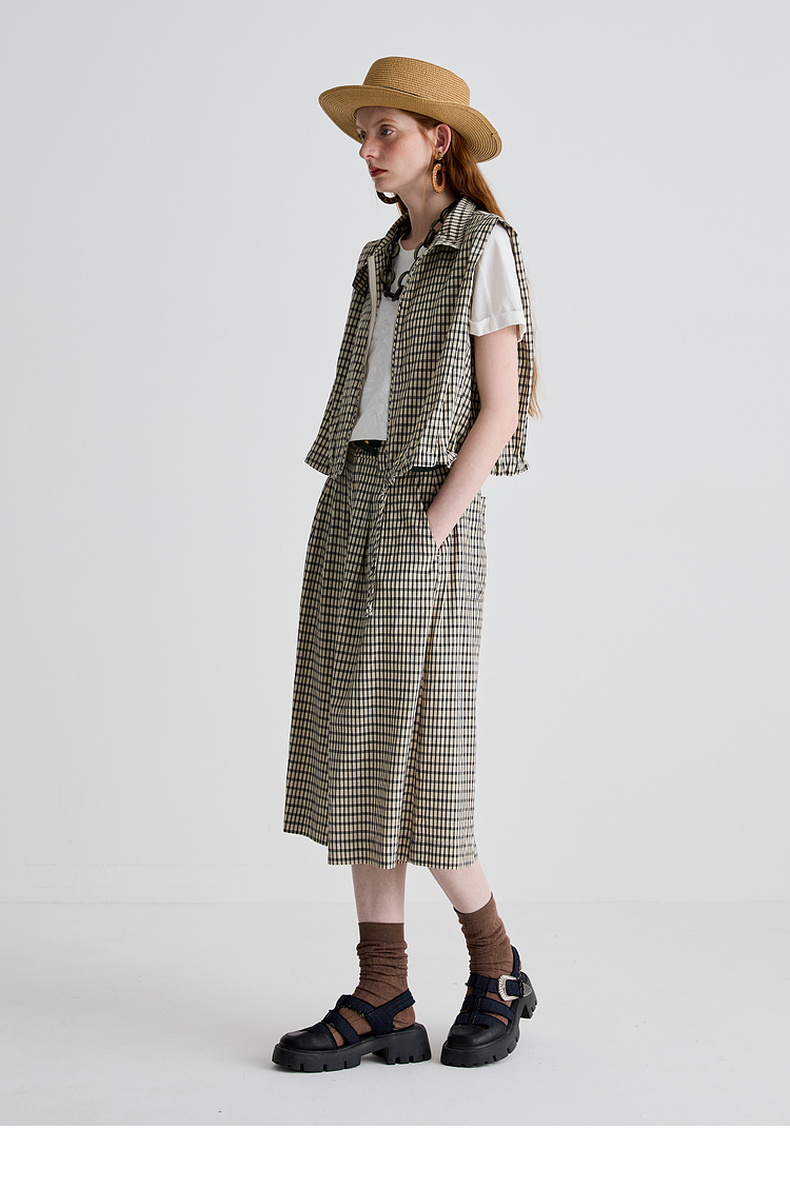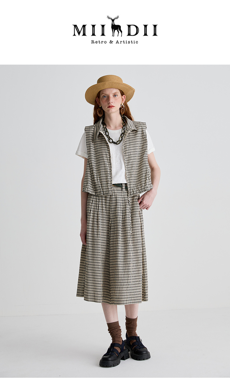 谜底马甲女2025夏季新品复古风通勤宽松H型短款马夹上衣252MS0535