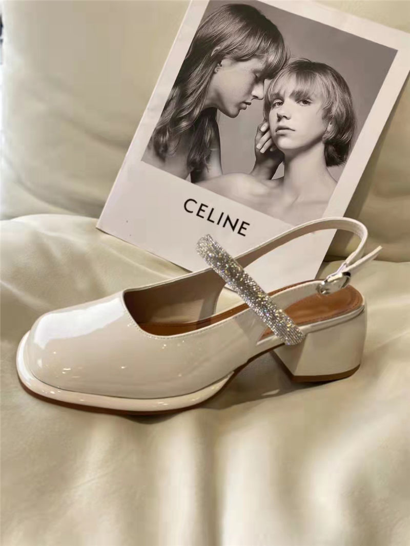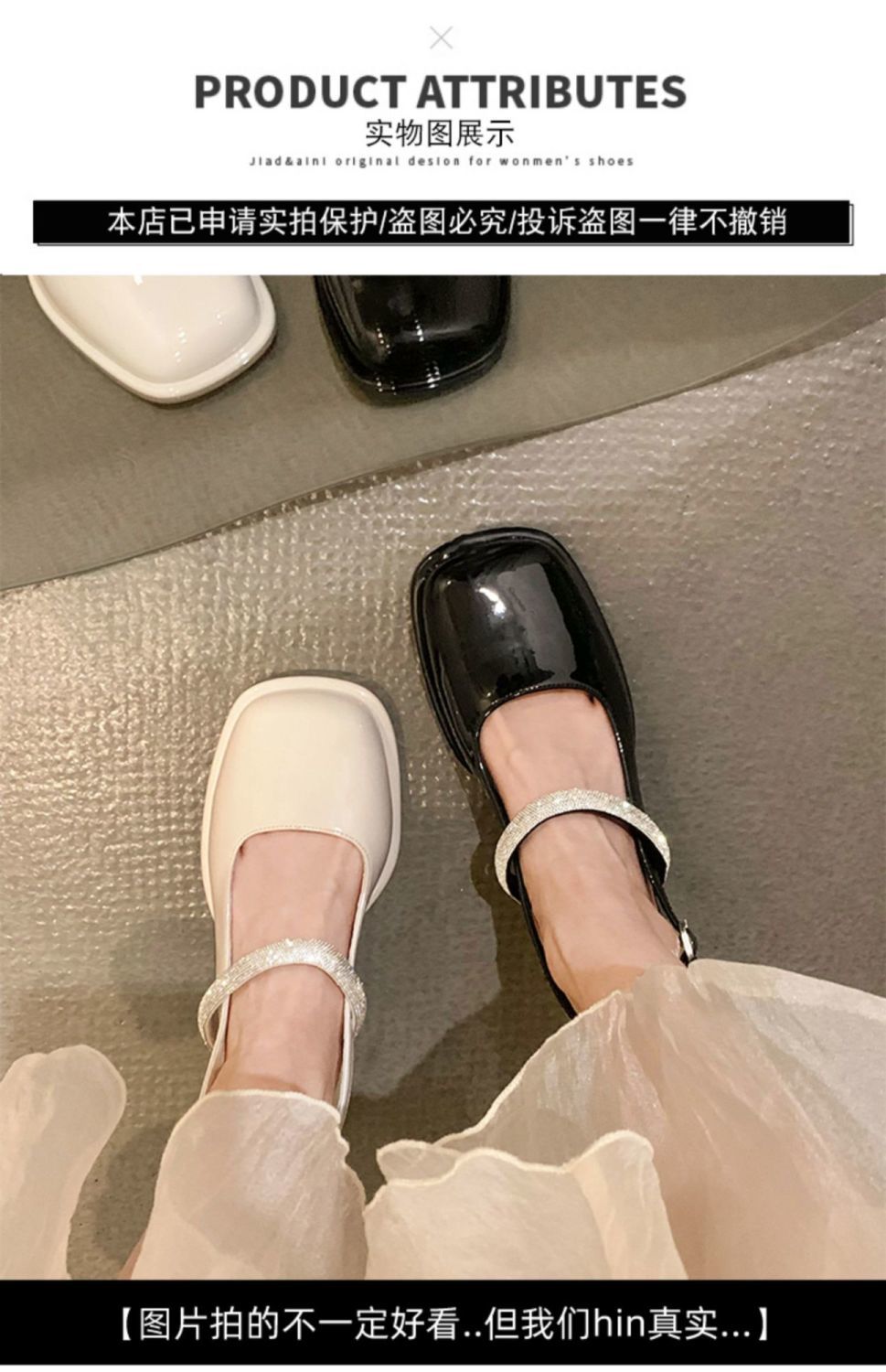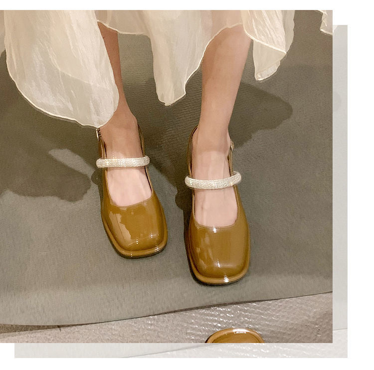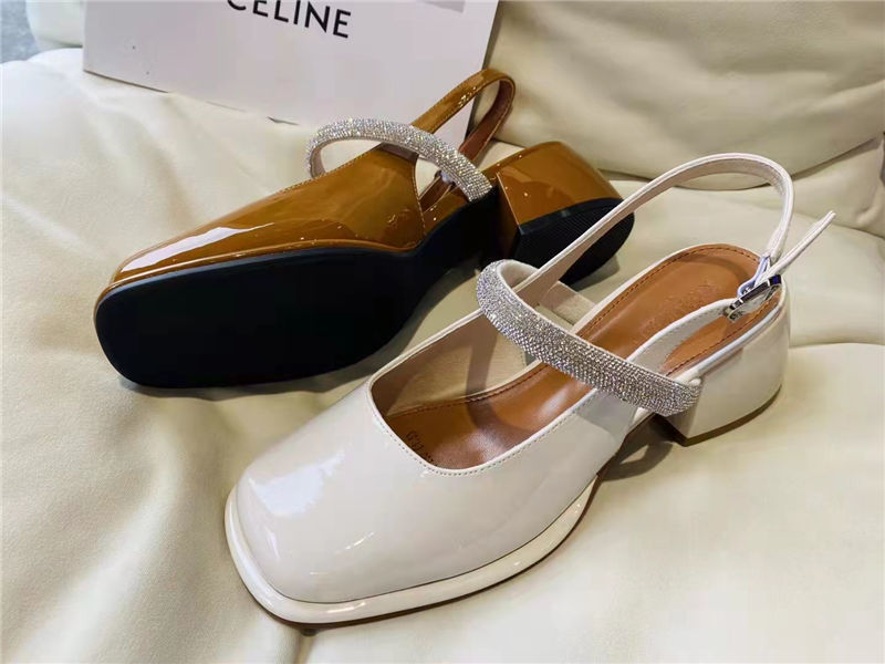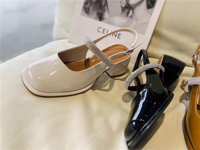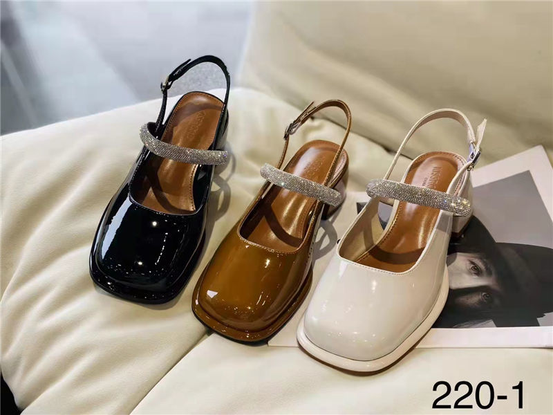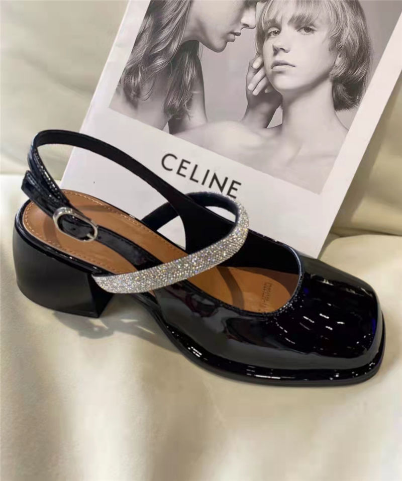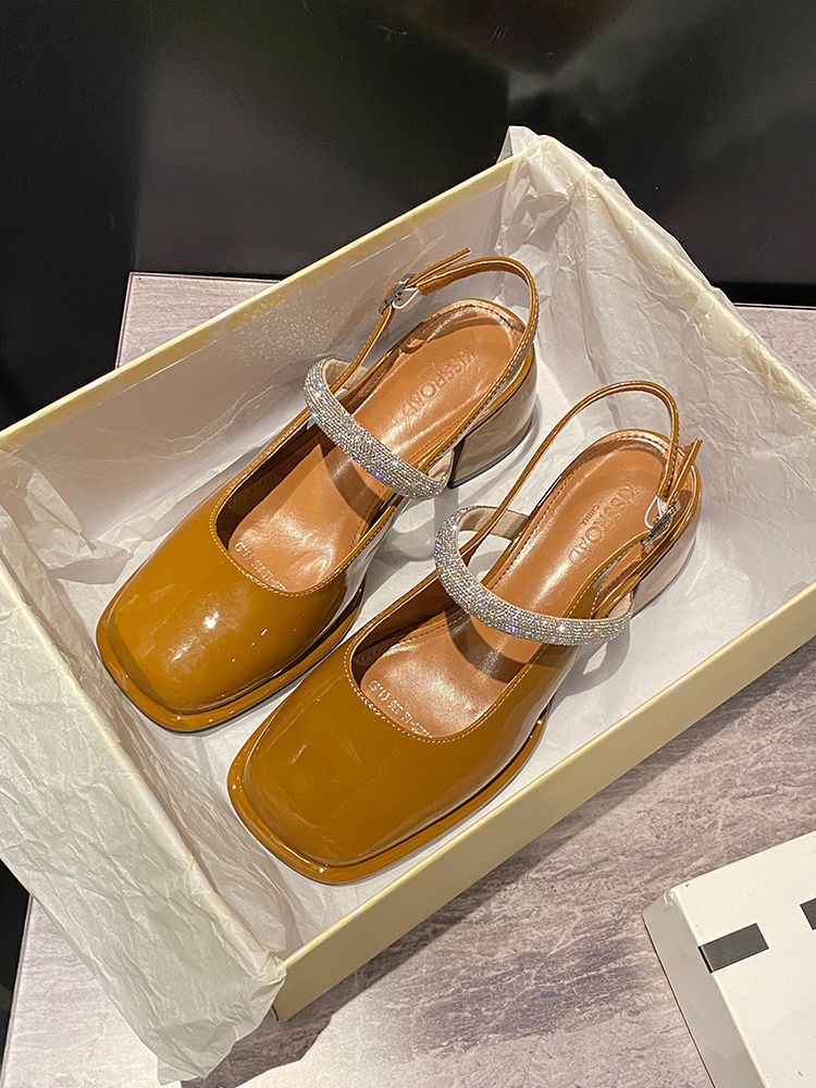 2022年新款夏季包头凉鞋女夏粗跟中跟水钻方头一字带高跟鞋