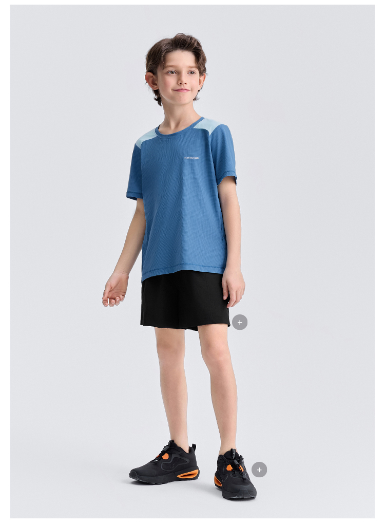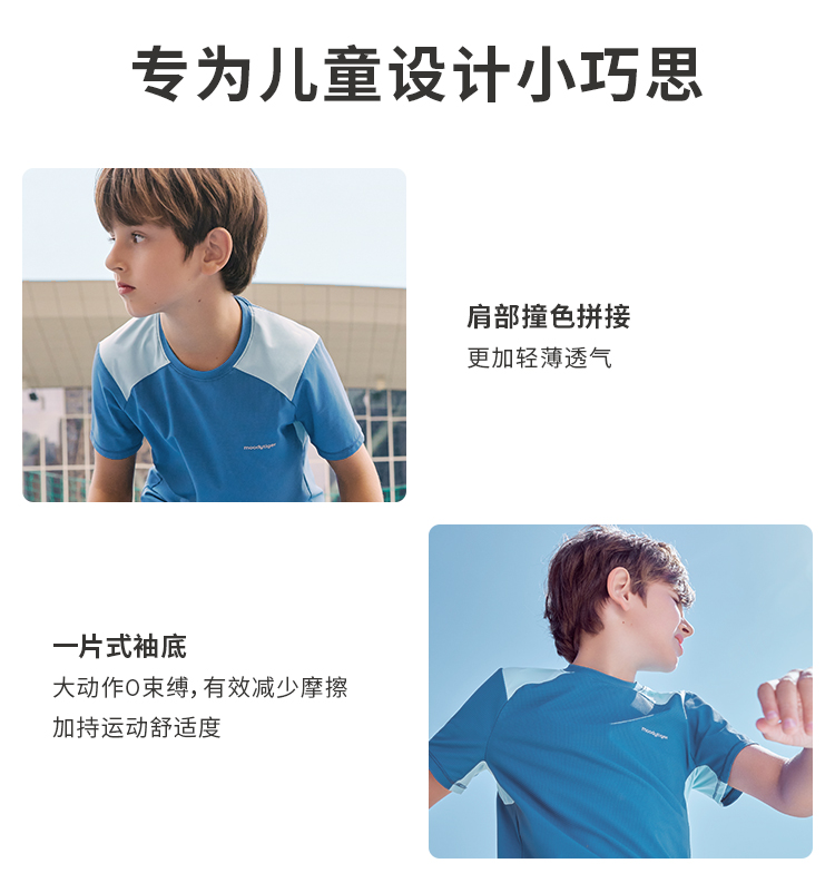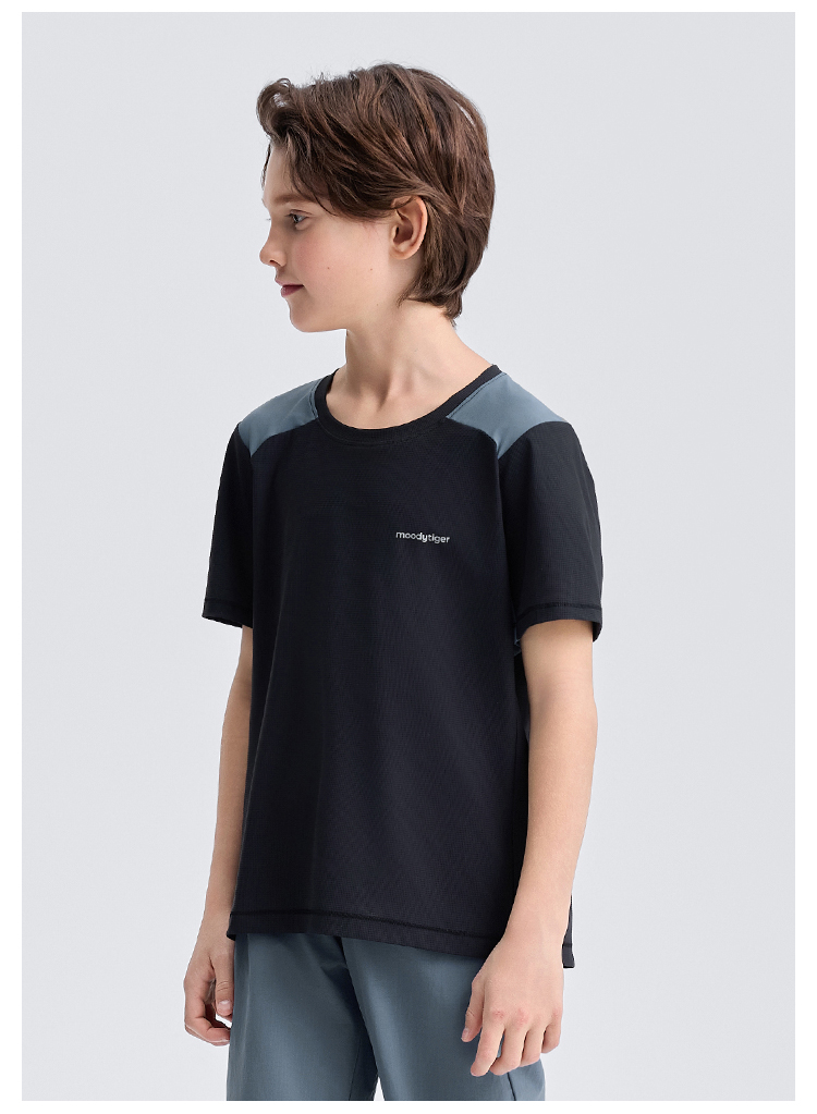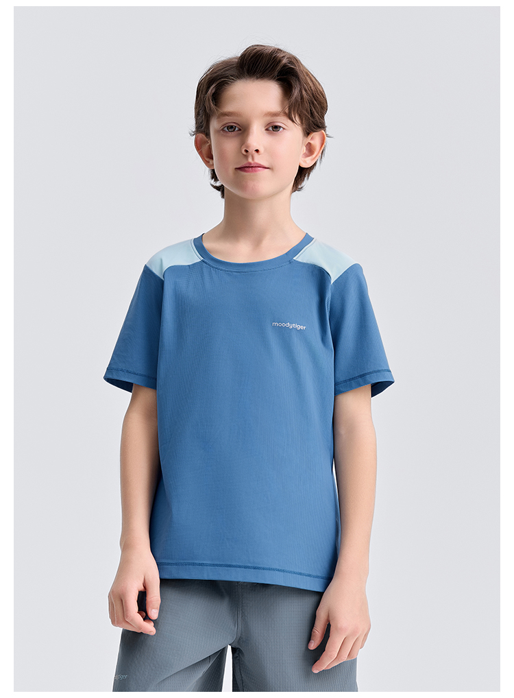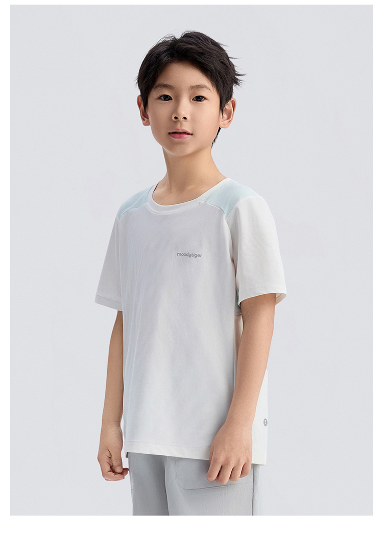 【DR暑假】moodytiger儿童T恤夏装新款男童短袖拼接排汗速干运动上衣32110103