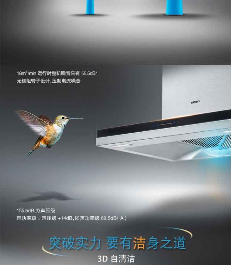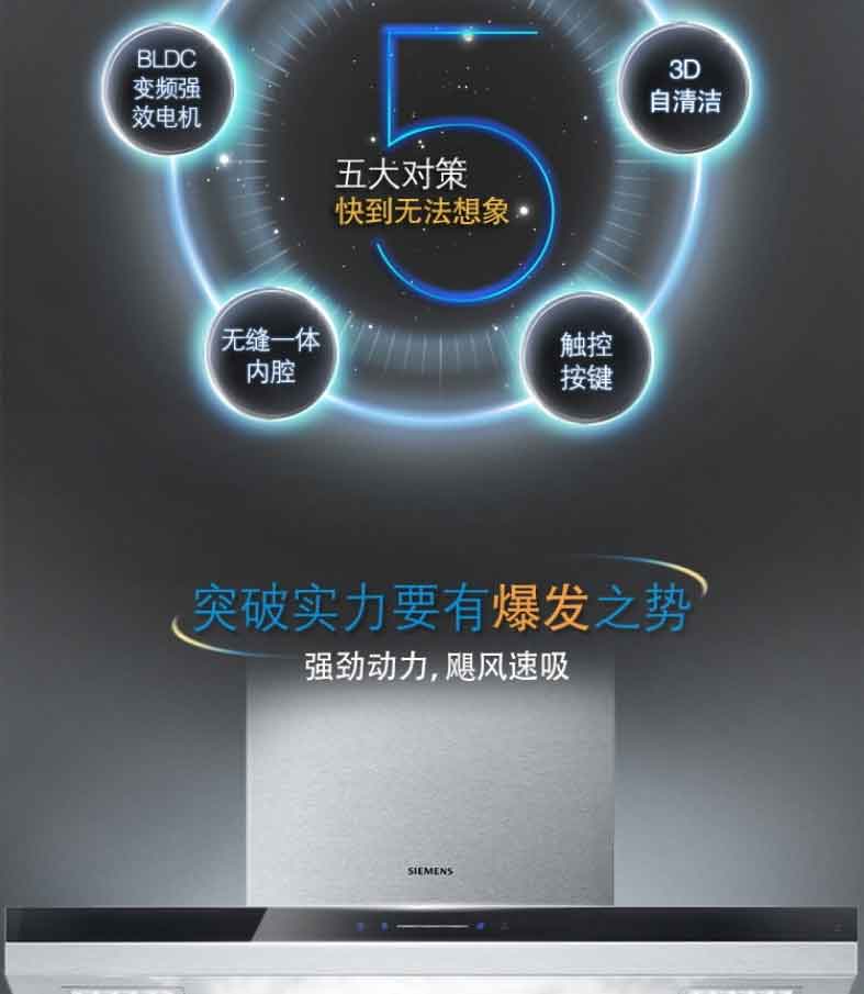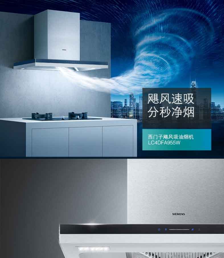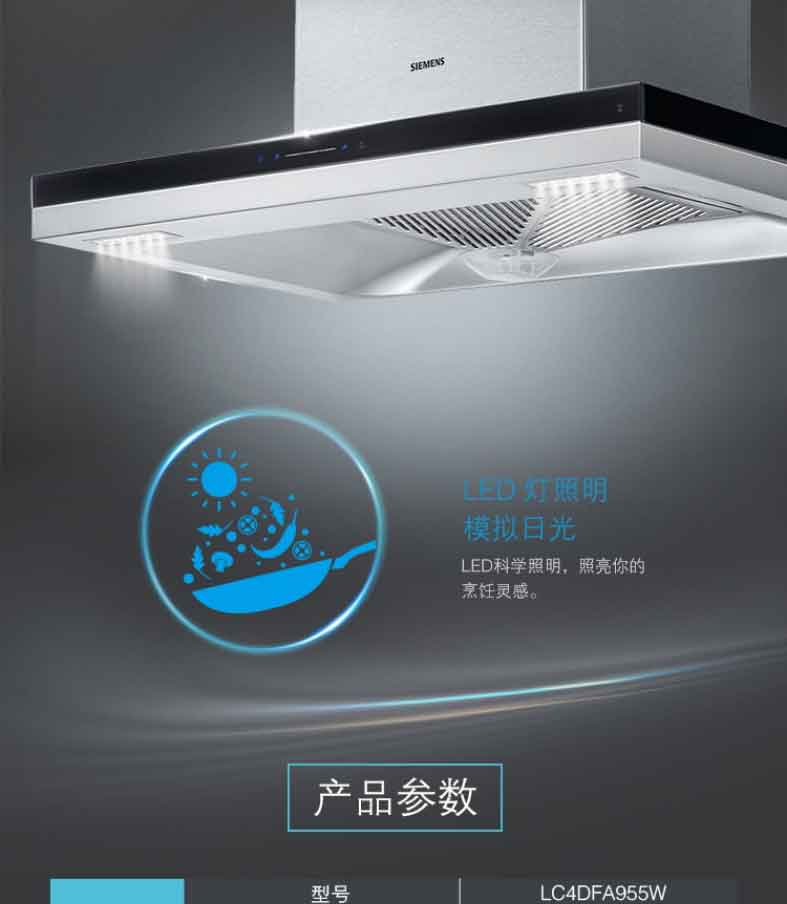 西门子欧式抽油烟机 家用吸油烟机 一级能效 3D自清洁CXW-150-LC4DFA955W
