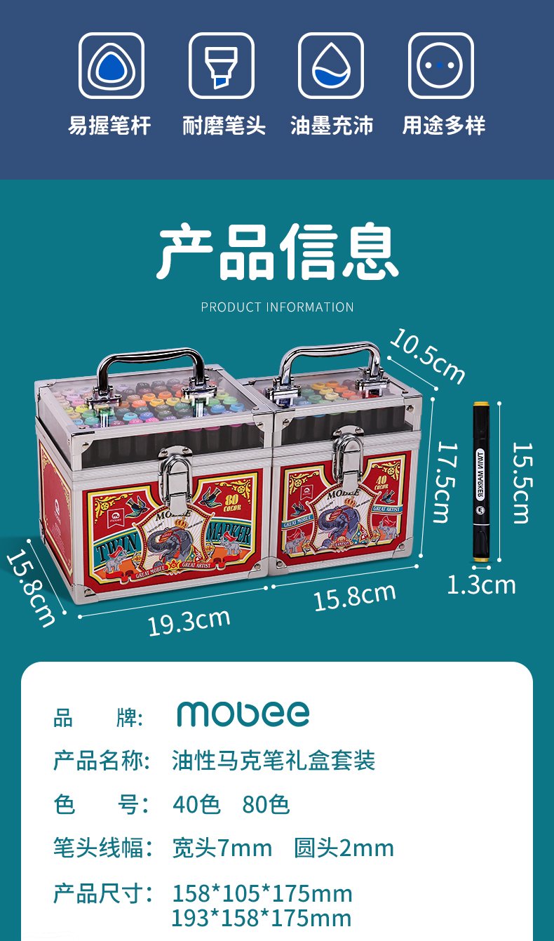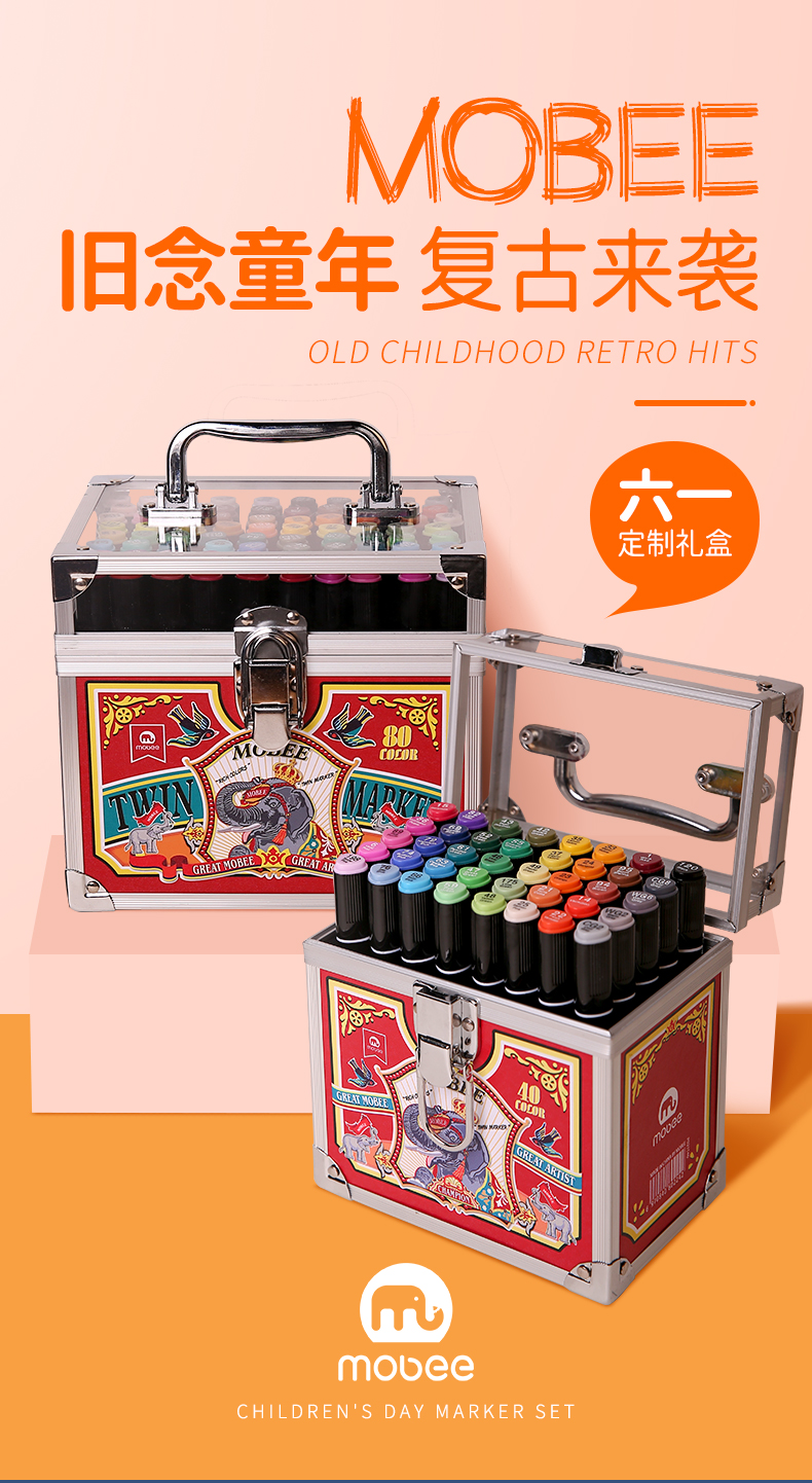 mobee马克笔套装40色 正版儿童双头手绘画画油性水彩笔 [福利品]