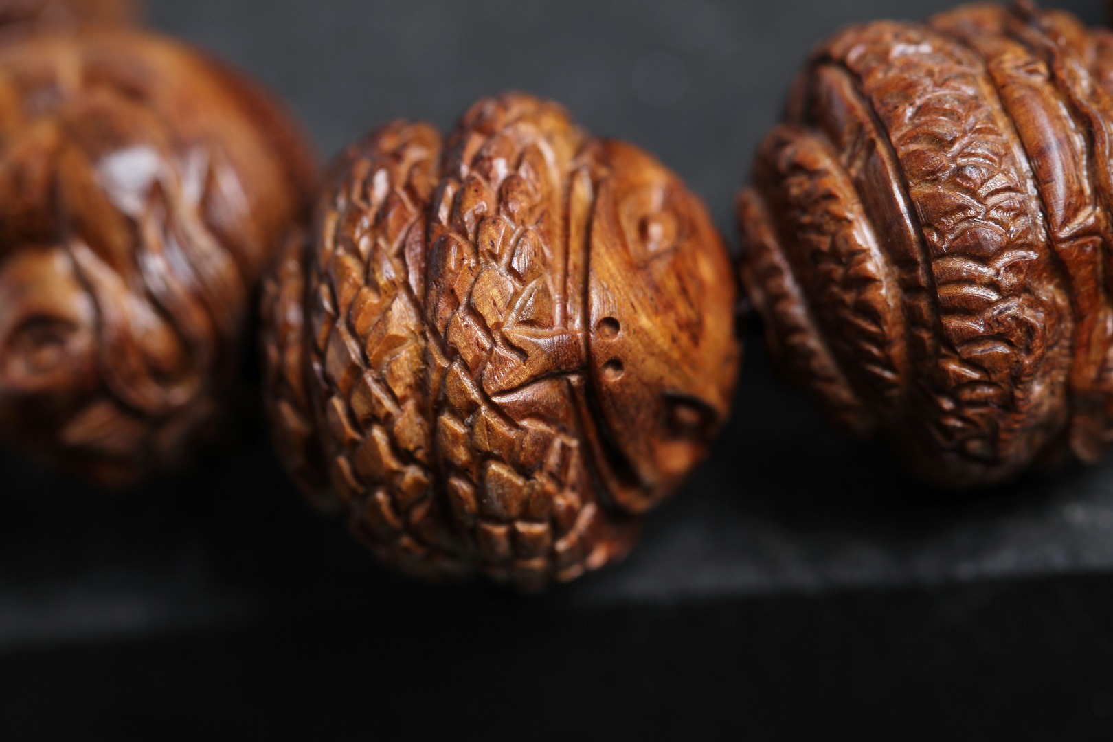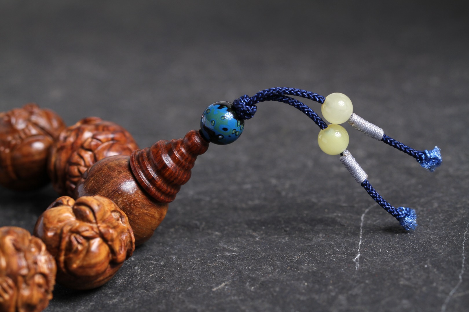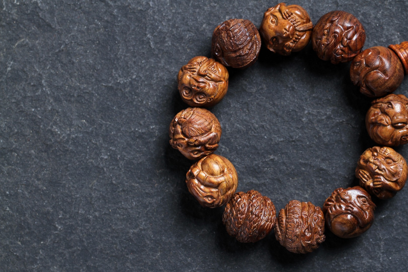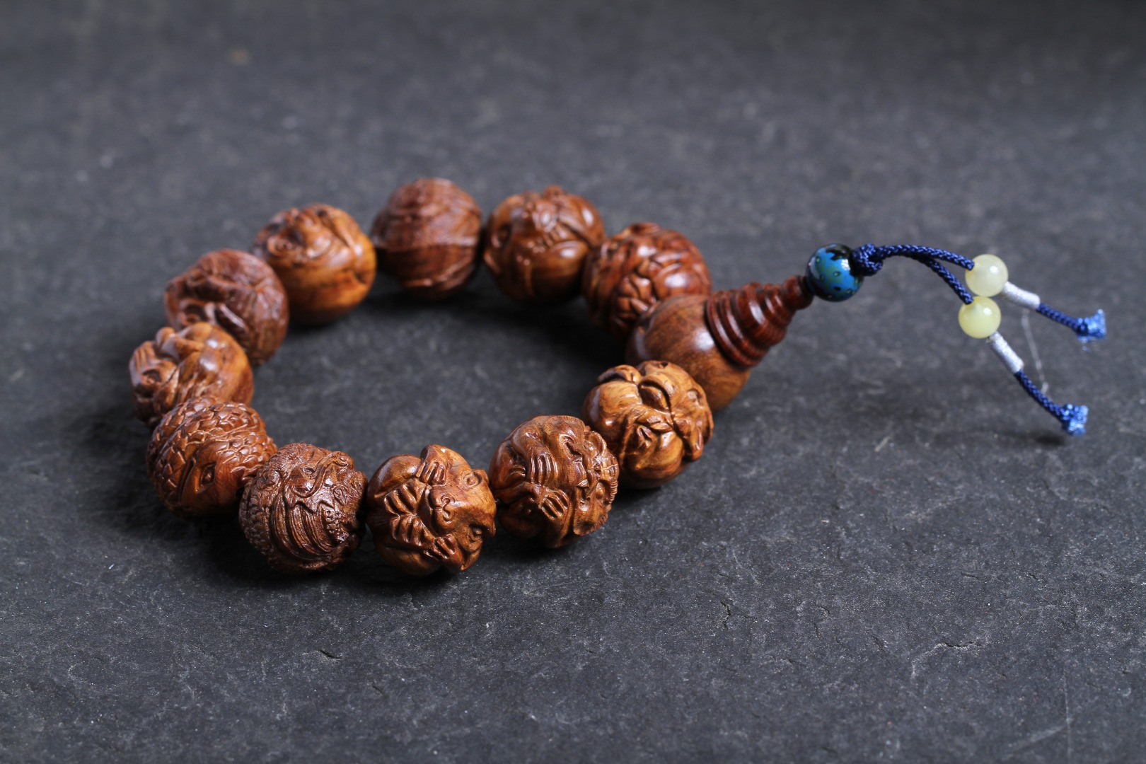 搭配:以海南黄花梨为主,精雕花梨十二生肖搭原矿蜜蜡及非遗大漆珠