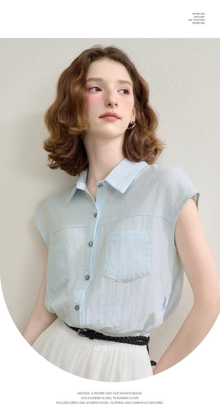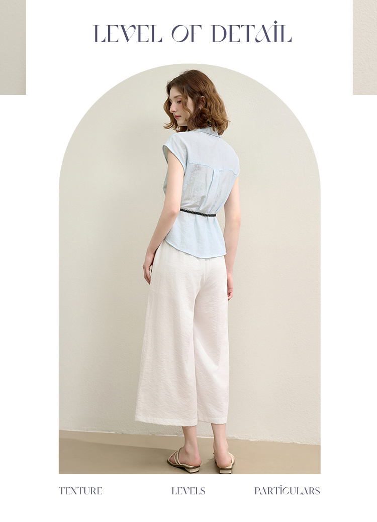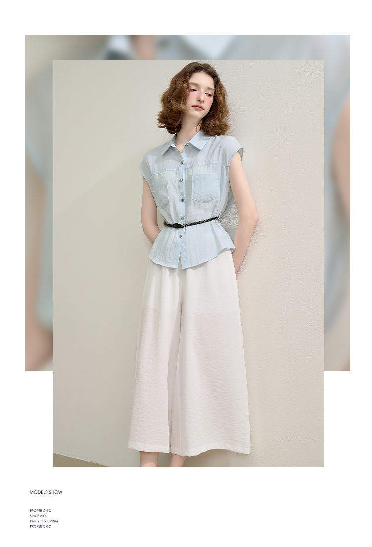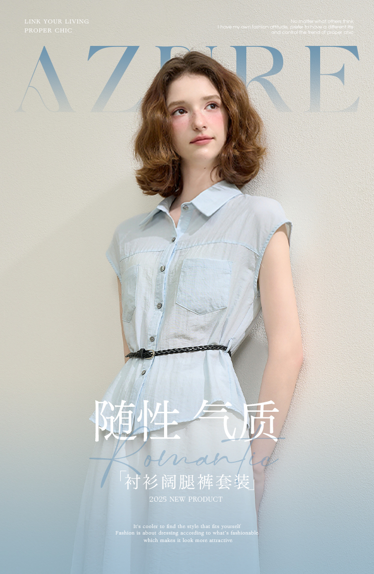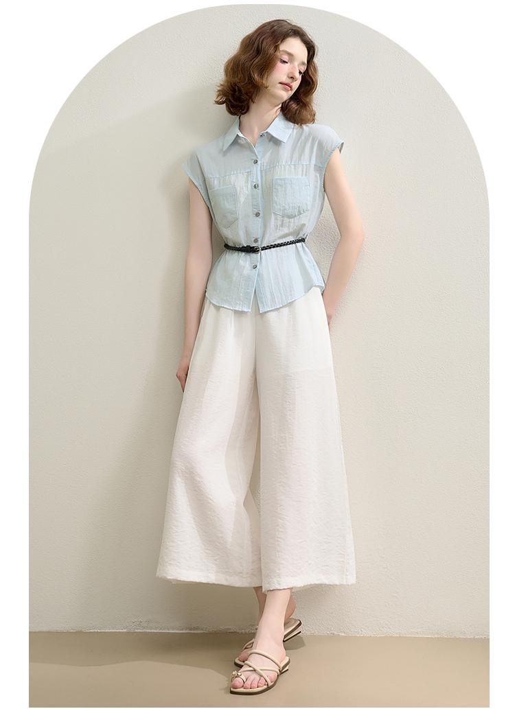 夏日清爽海盐风套装女夏季衬衫搭阔腿裤两件套配饰带H0051075