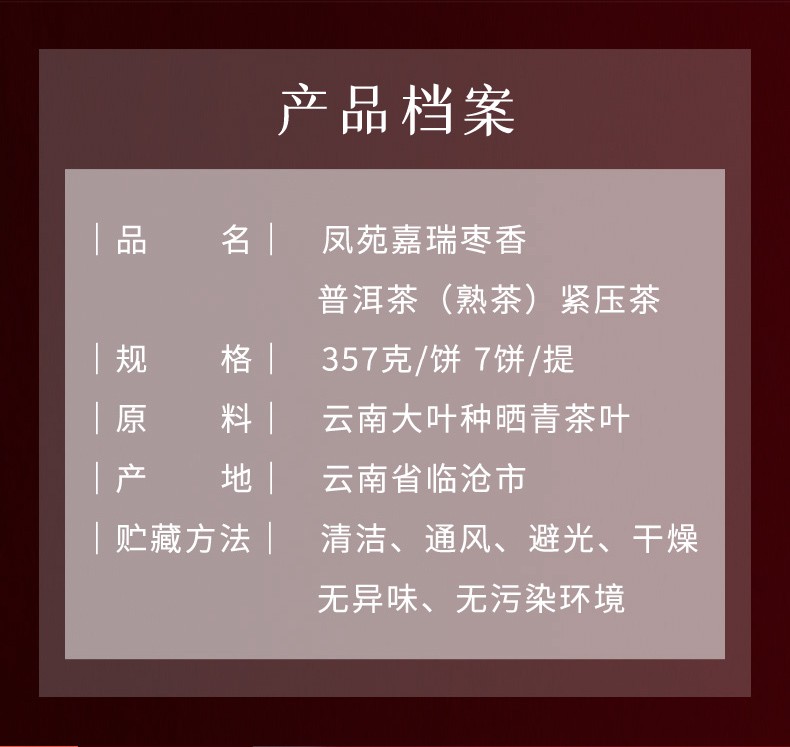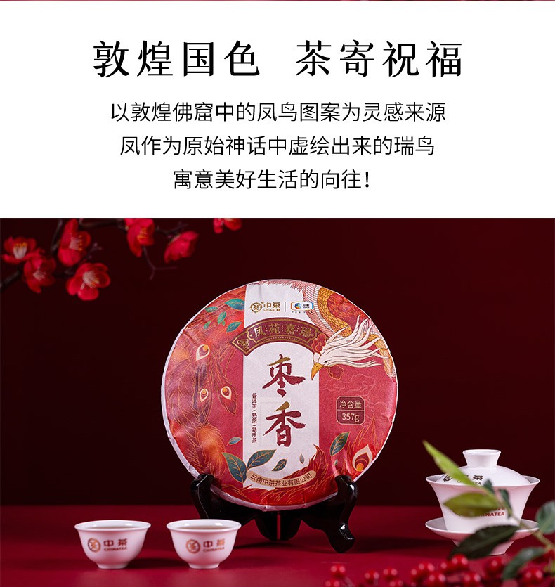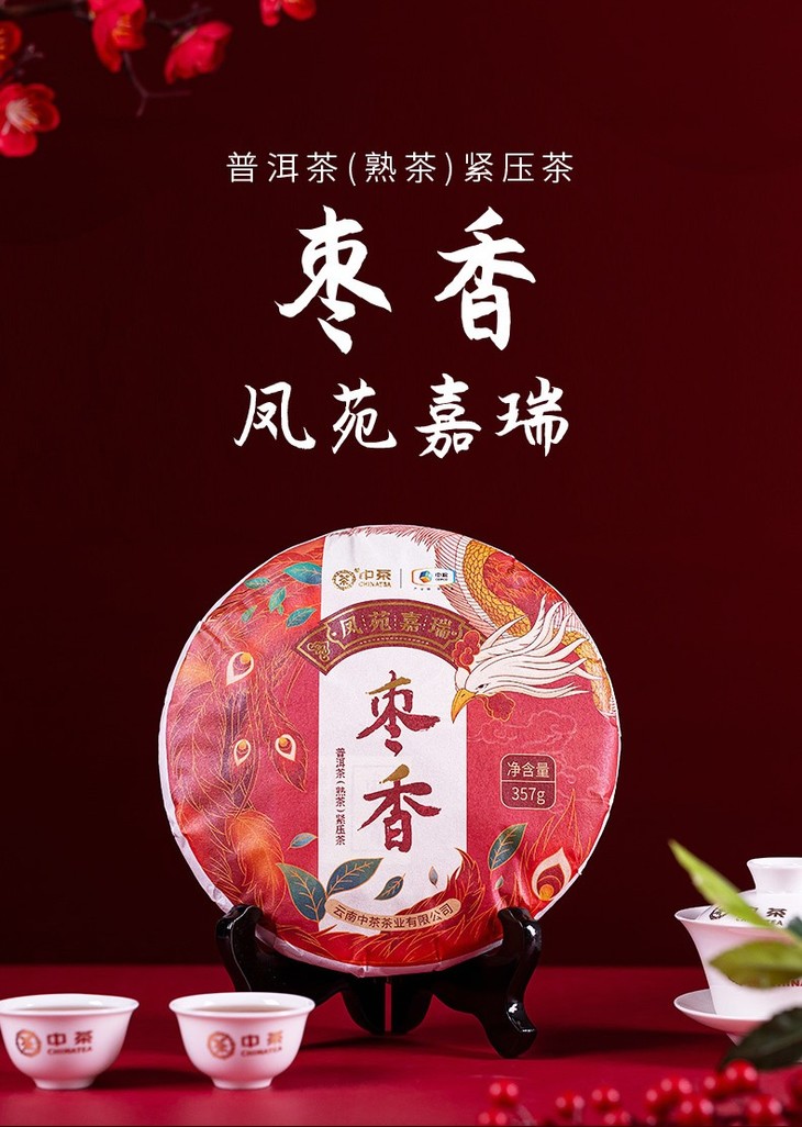 中粮-中茶2021年凤苑嘉瑞枣香普洱熟茶饼357g/饼
