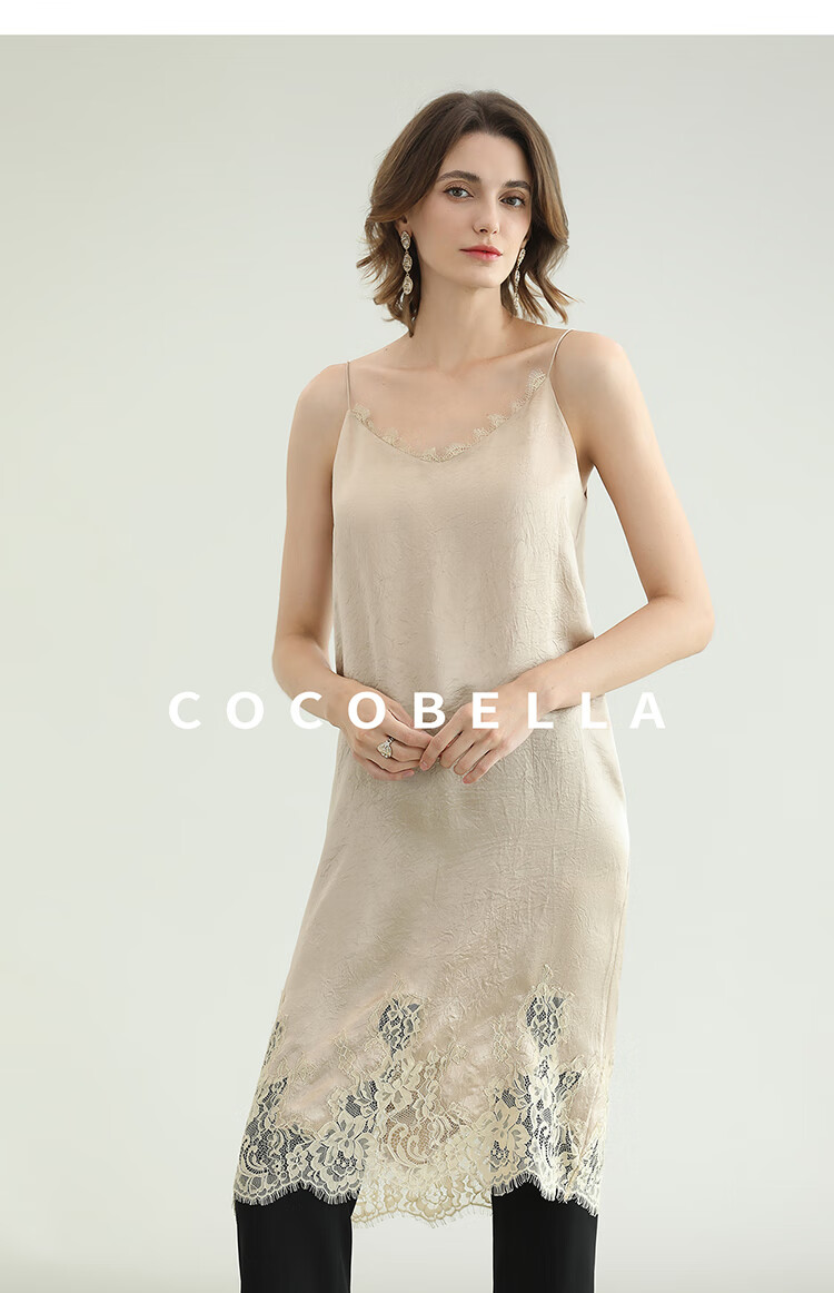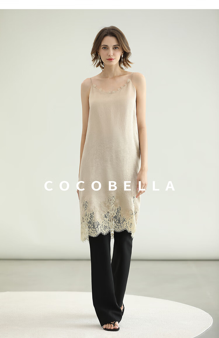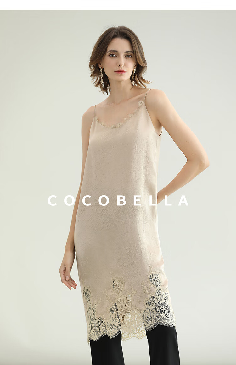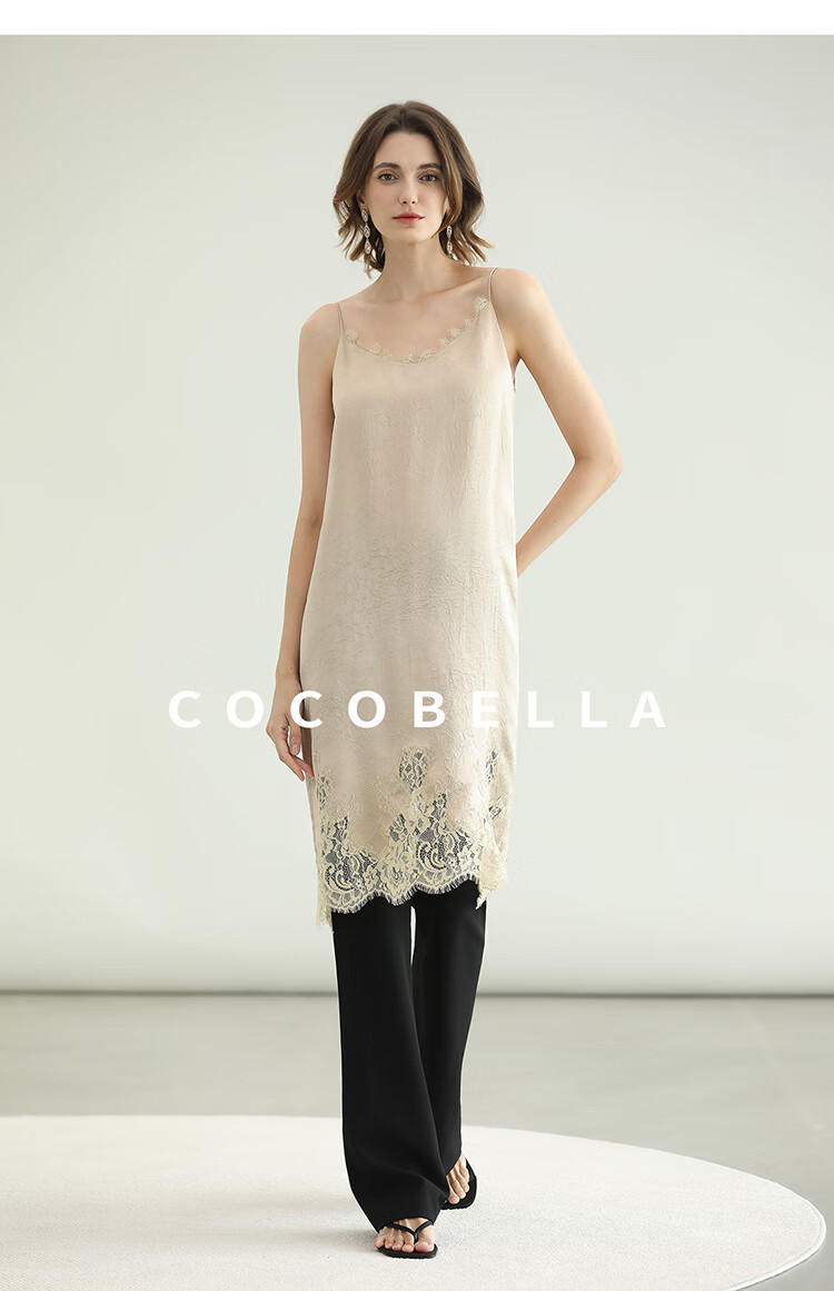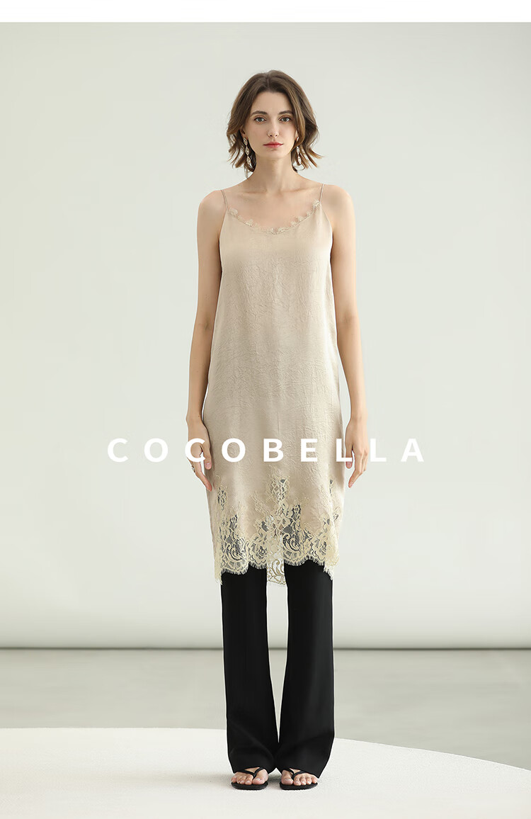 COCOBELLA[100%醋酸]蕾丝拼接肌理感连衣裙女吊带裙FR0081-2