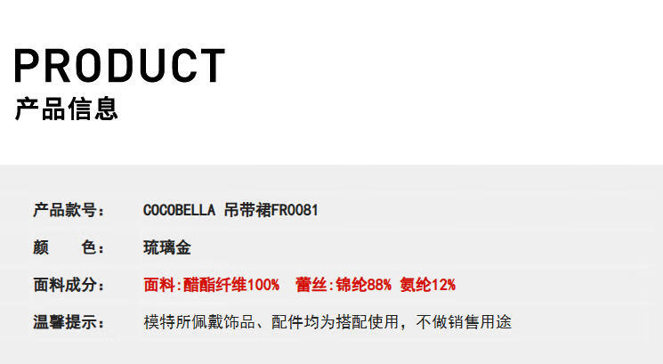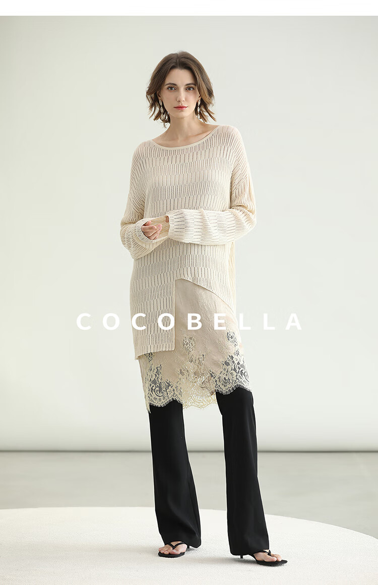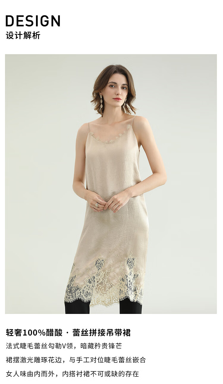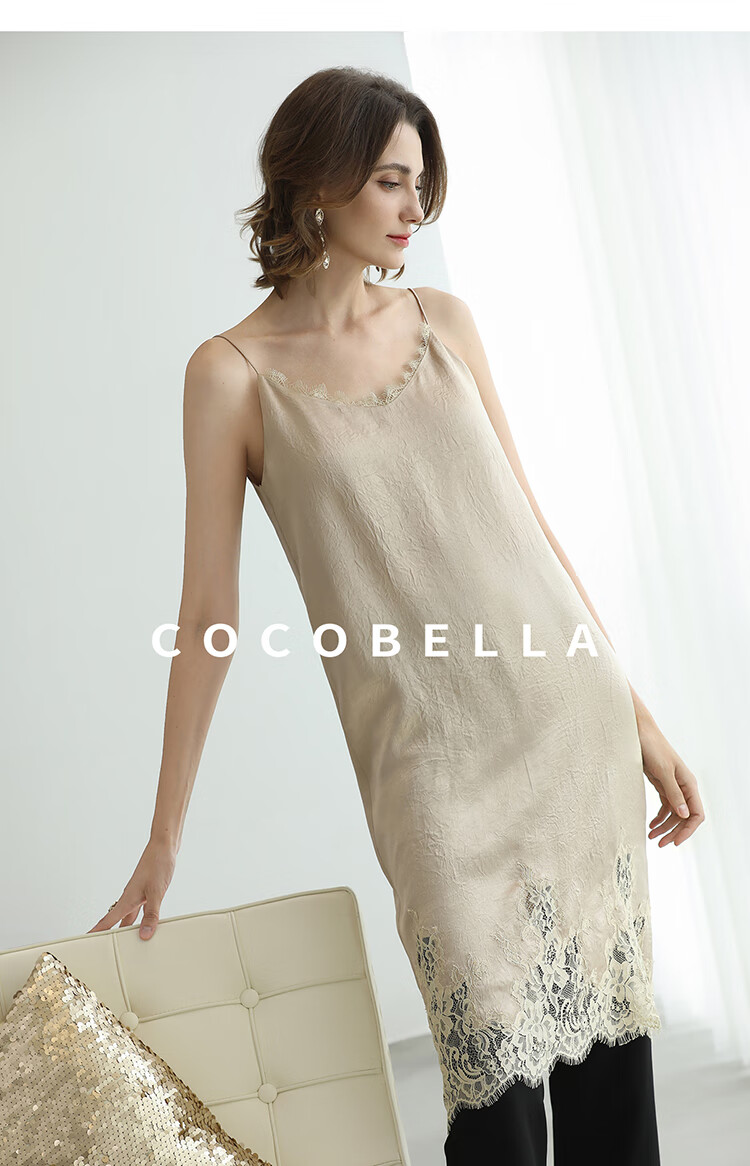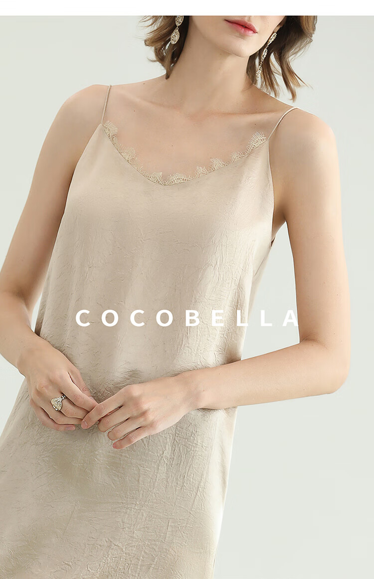COCOBELLA[100%醋酸]蕾丝拼接肌理感连衣裙女吊带裙FR0081-2
