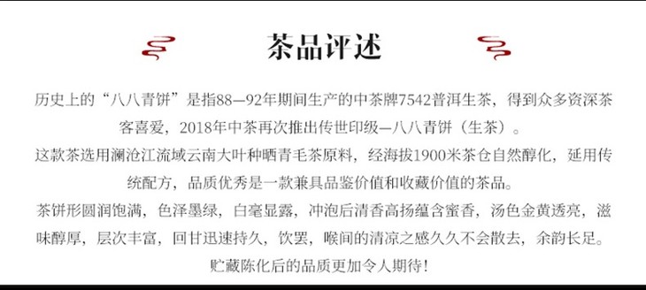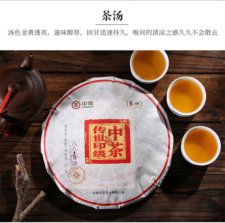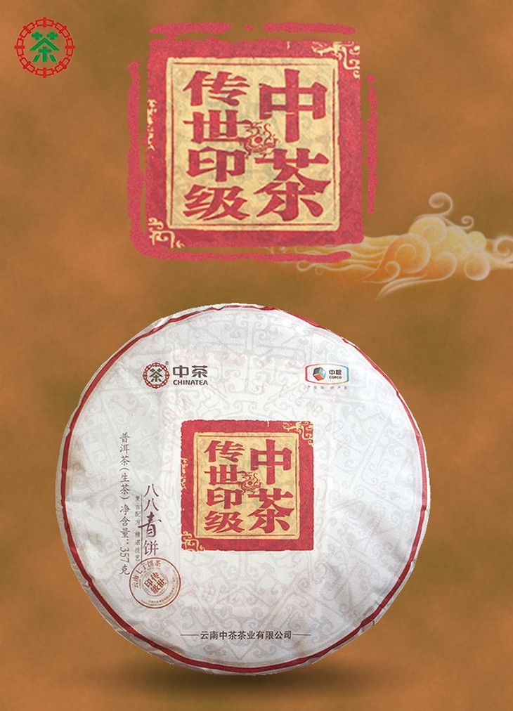 中粮-中茶2018年(生茶)八八青饼国内版357g/饼 /云南干仓直发