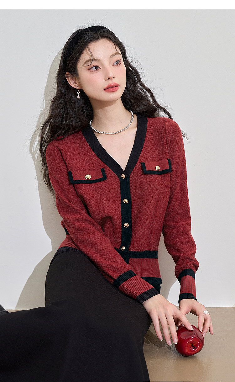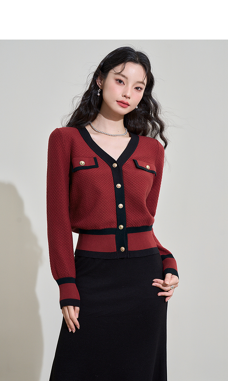 西遇小香风针织外套女秋季新款V领开衫法式针织衫V0050203