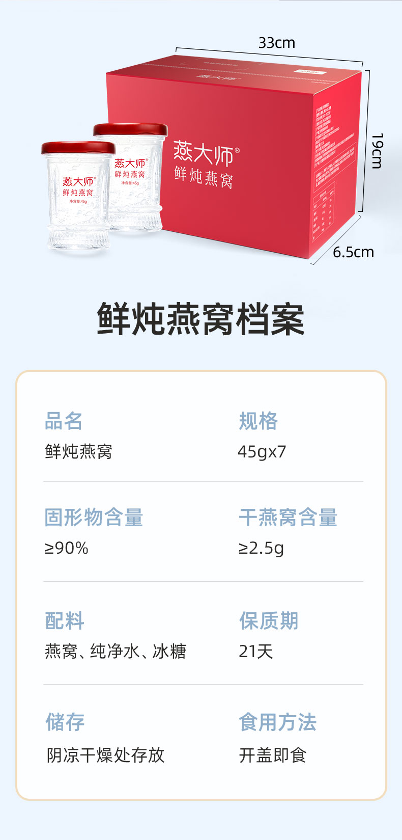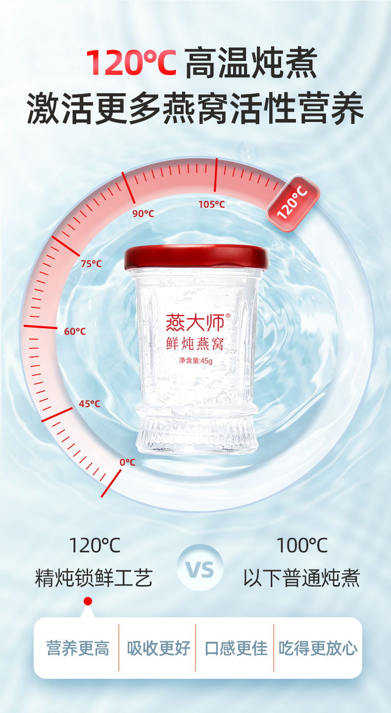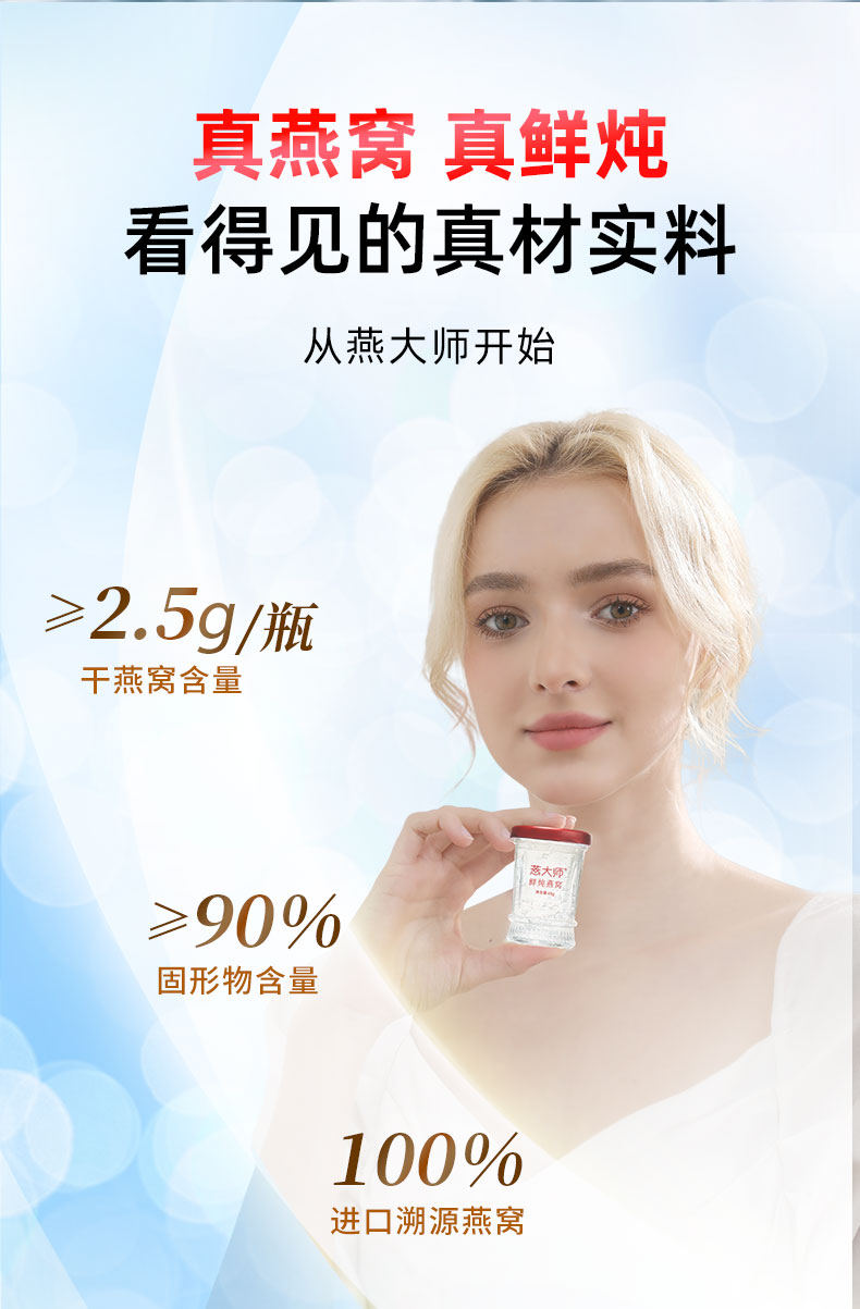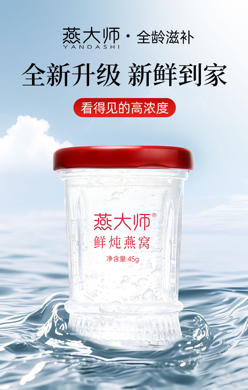 【每瓶2.5g投料量】燕大师鲜炖燕窝45g/瓶固形物90%周套餐直降!买 7 瓶送 1 瓶 到手 8 瓶 现炖现发新鲜直达