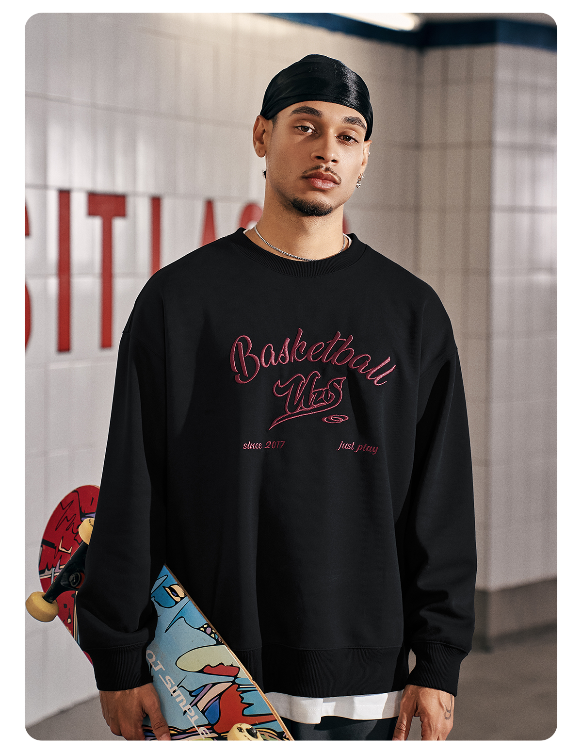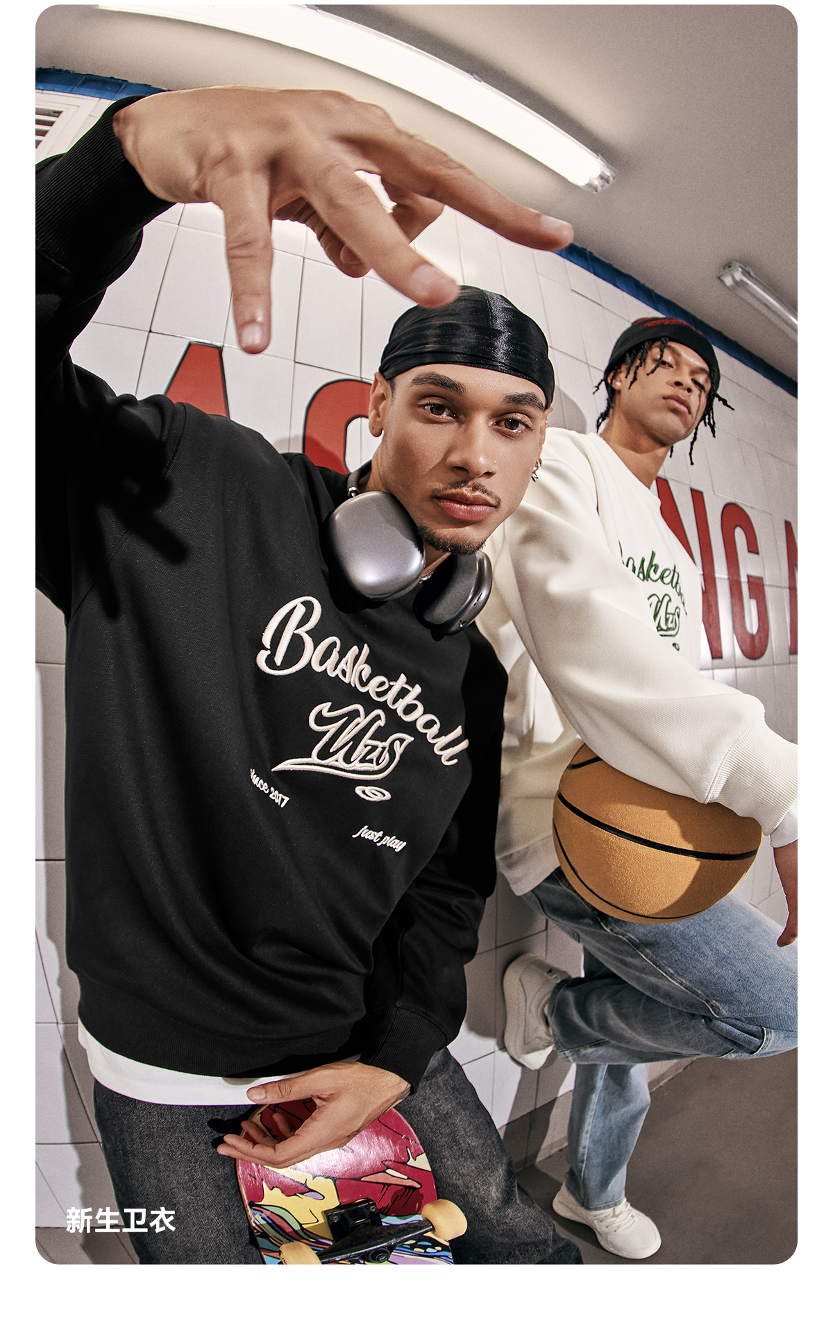 有志者UZIS美式运动卫衣男休闲宽松2025新款复古潮流圆领上衣新生