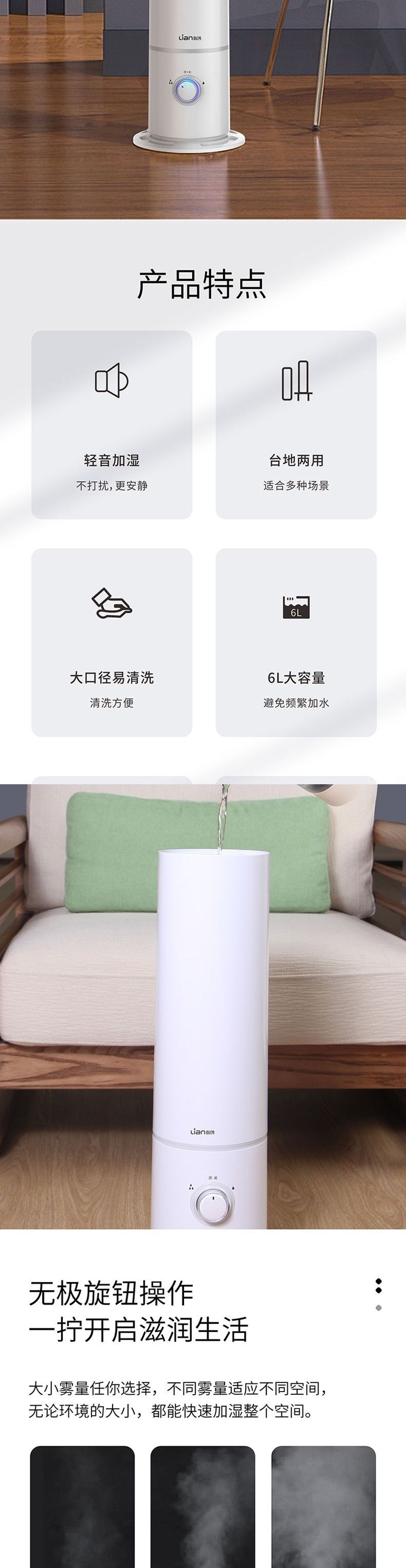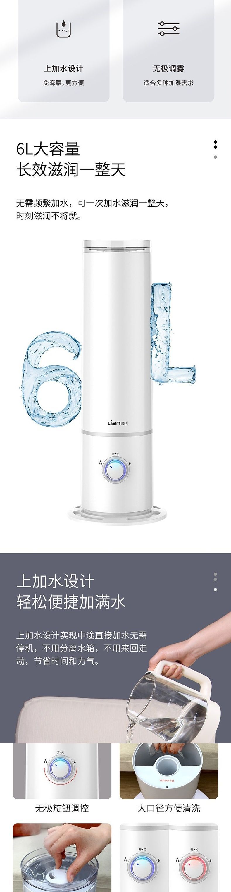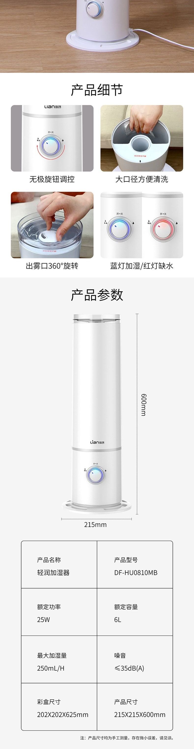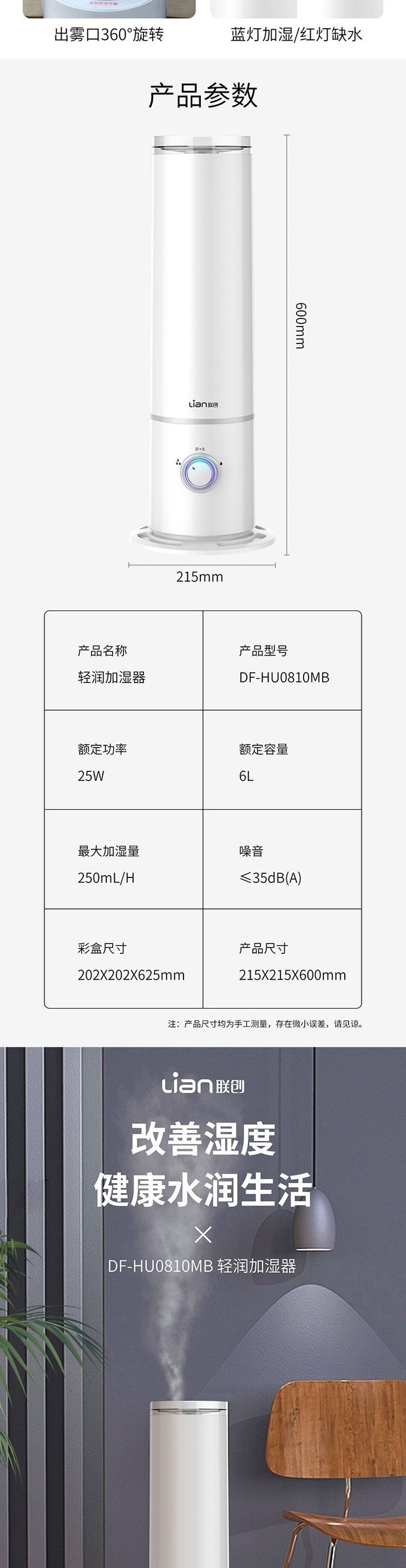联创 轻润加湿器 DF-HU0810MB 静音大雾量小型迷你卧室加湿