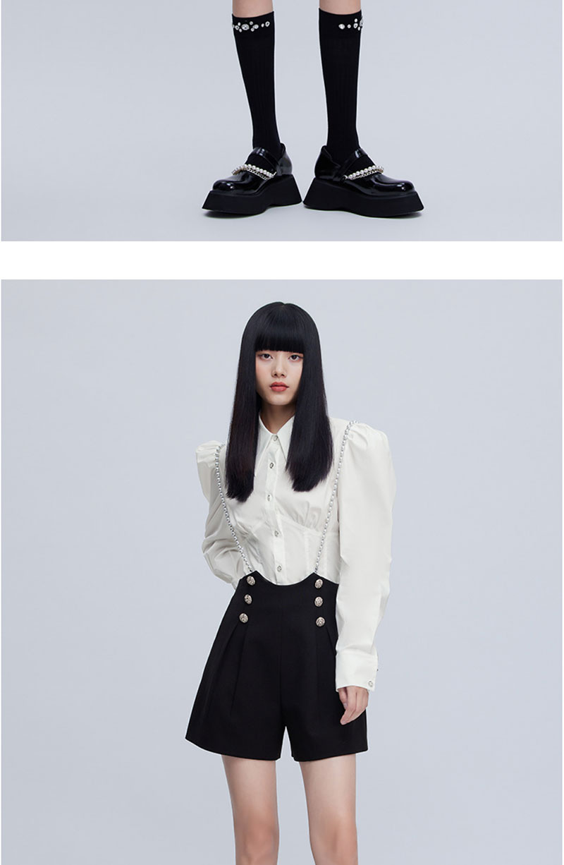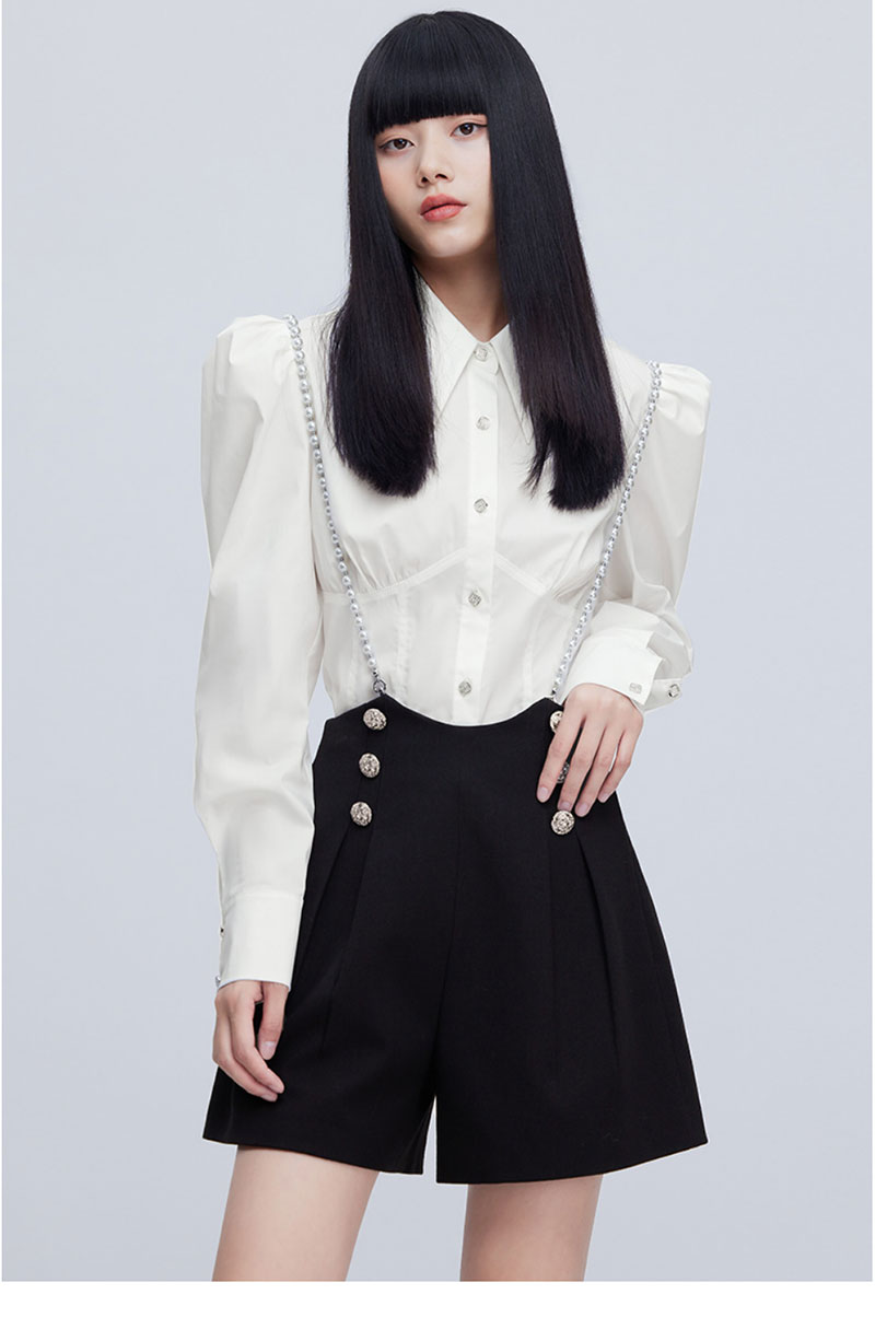 FIVE PLUS2022新款女春装设计感小众衬衫女泡泡长袖复古气质上衣2WN1014350