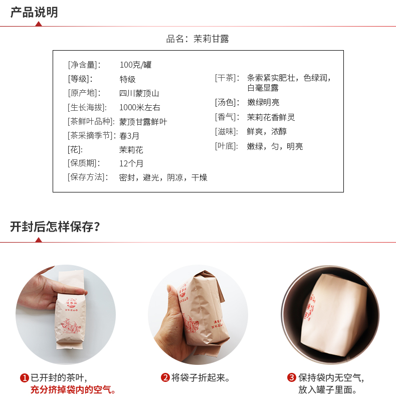 高等级茉莉甘露 纯茉莉花窨制 明前高山甘露绿茶 无香精 50克装