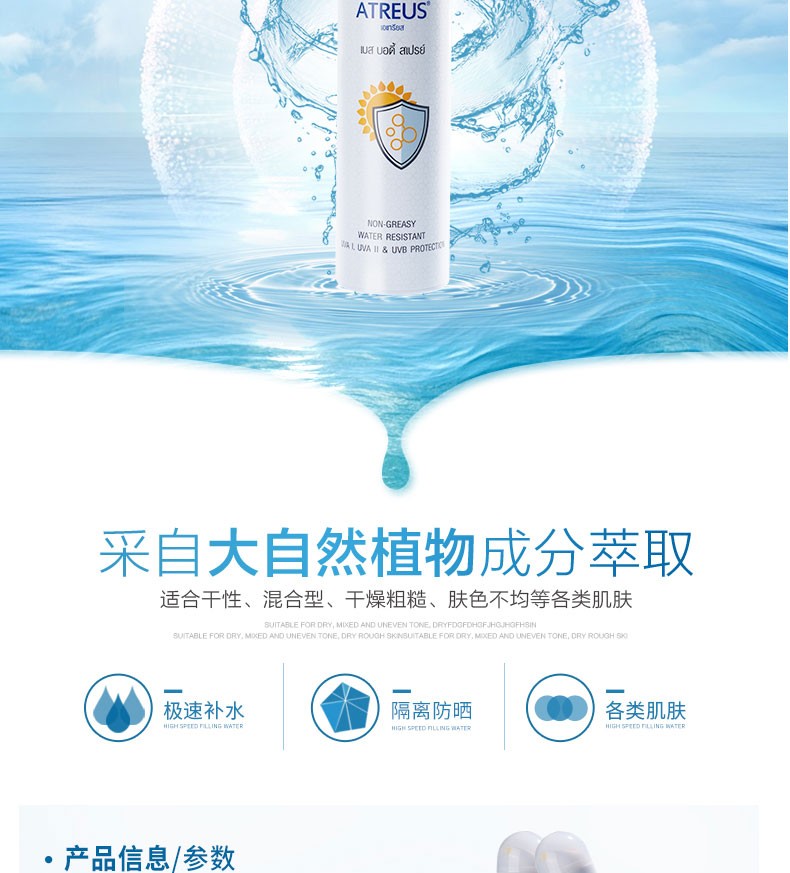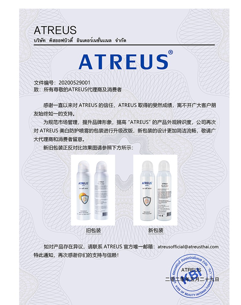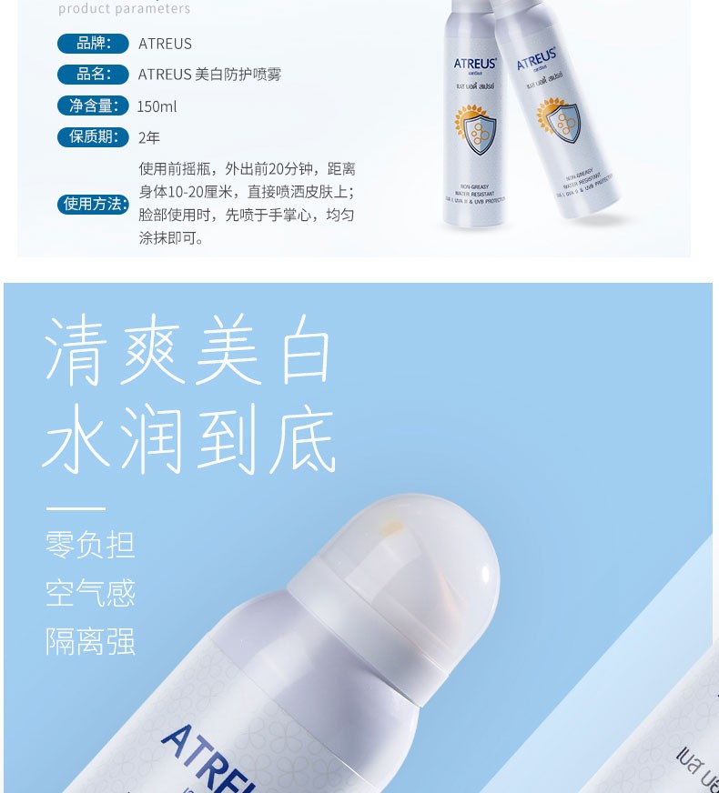 商品名称: 香港直邮【新版】ATREUS 牛奶美白防晒喷雾 SPF50 150ml