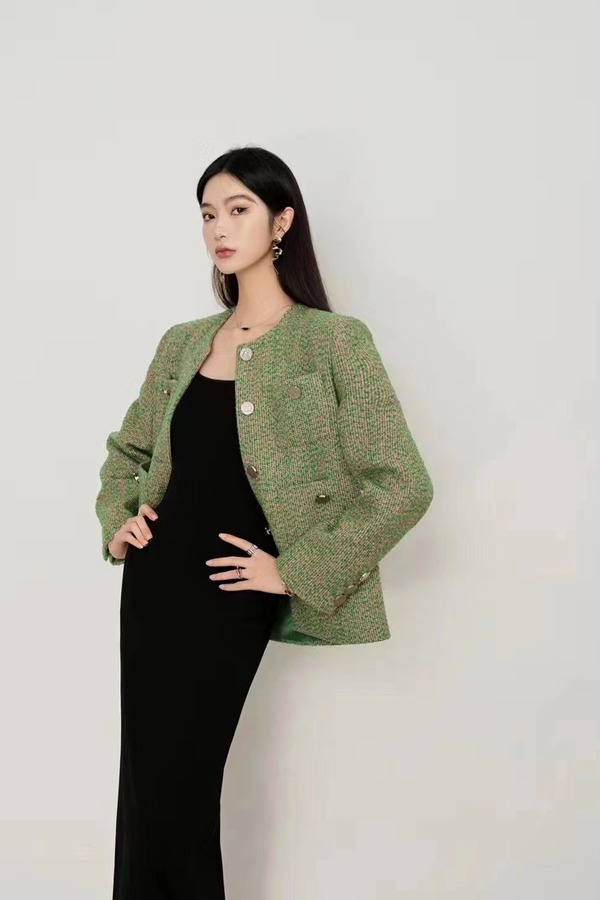 Le Malene 绿色精致圆领口袋纽扣外套 17722