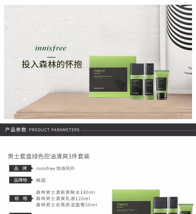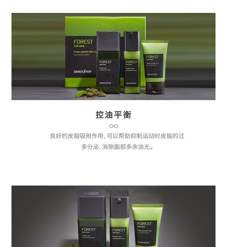 INNISFREE 悦诗风吟 男士套盒绿色控油清爽三件套装 韩国