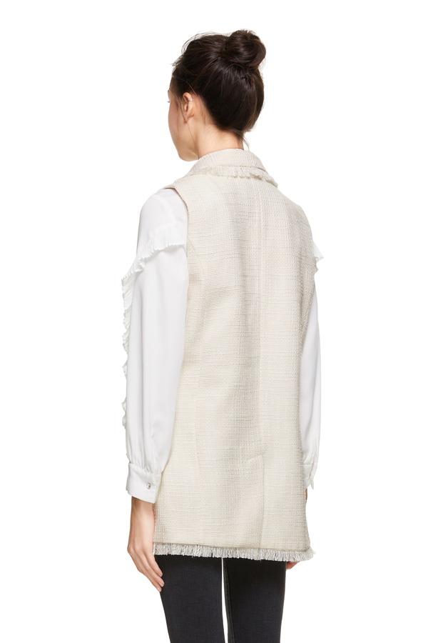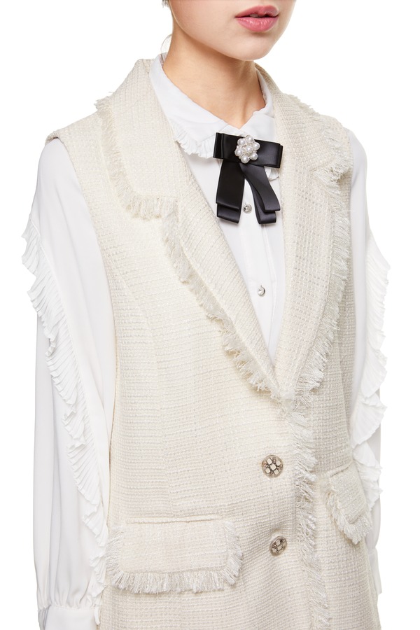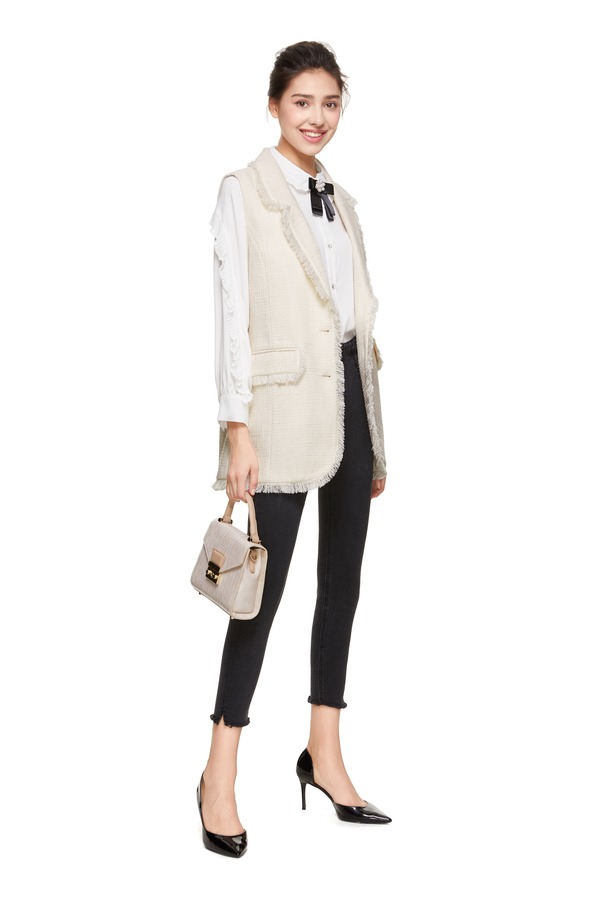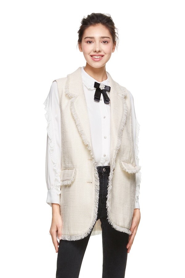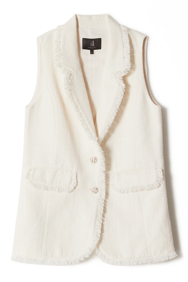 J.A 白色小香风流苏马甲 8648
