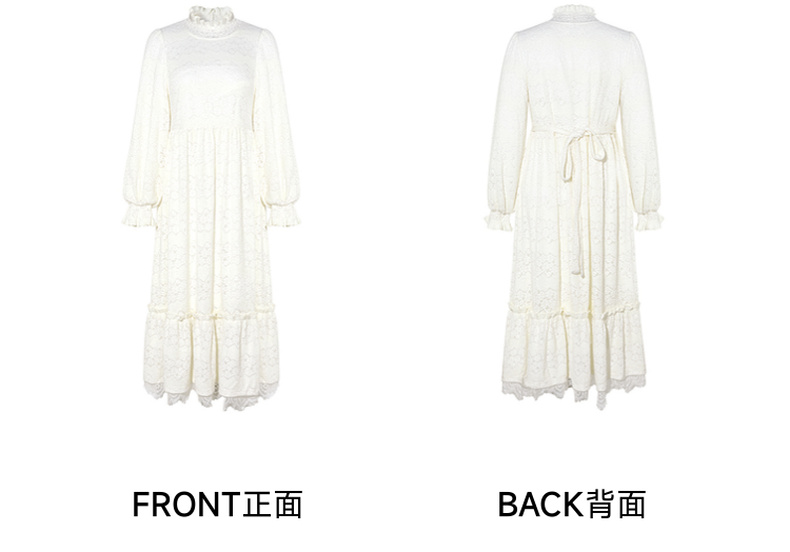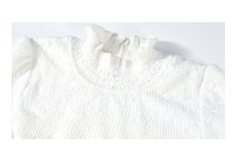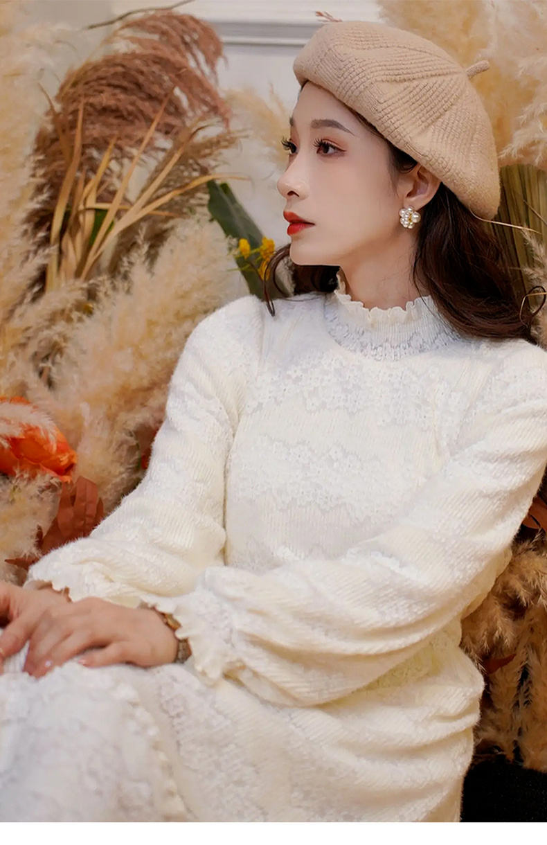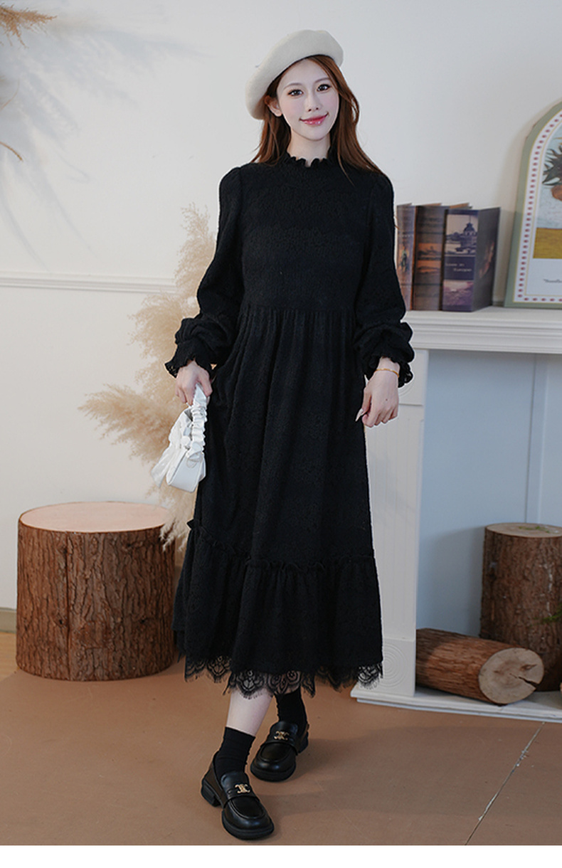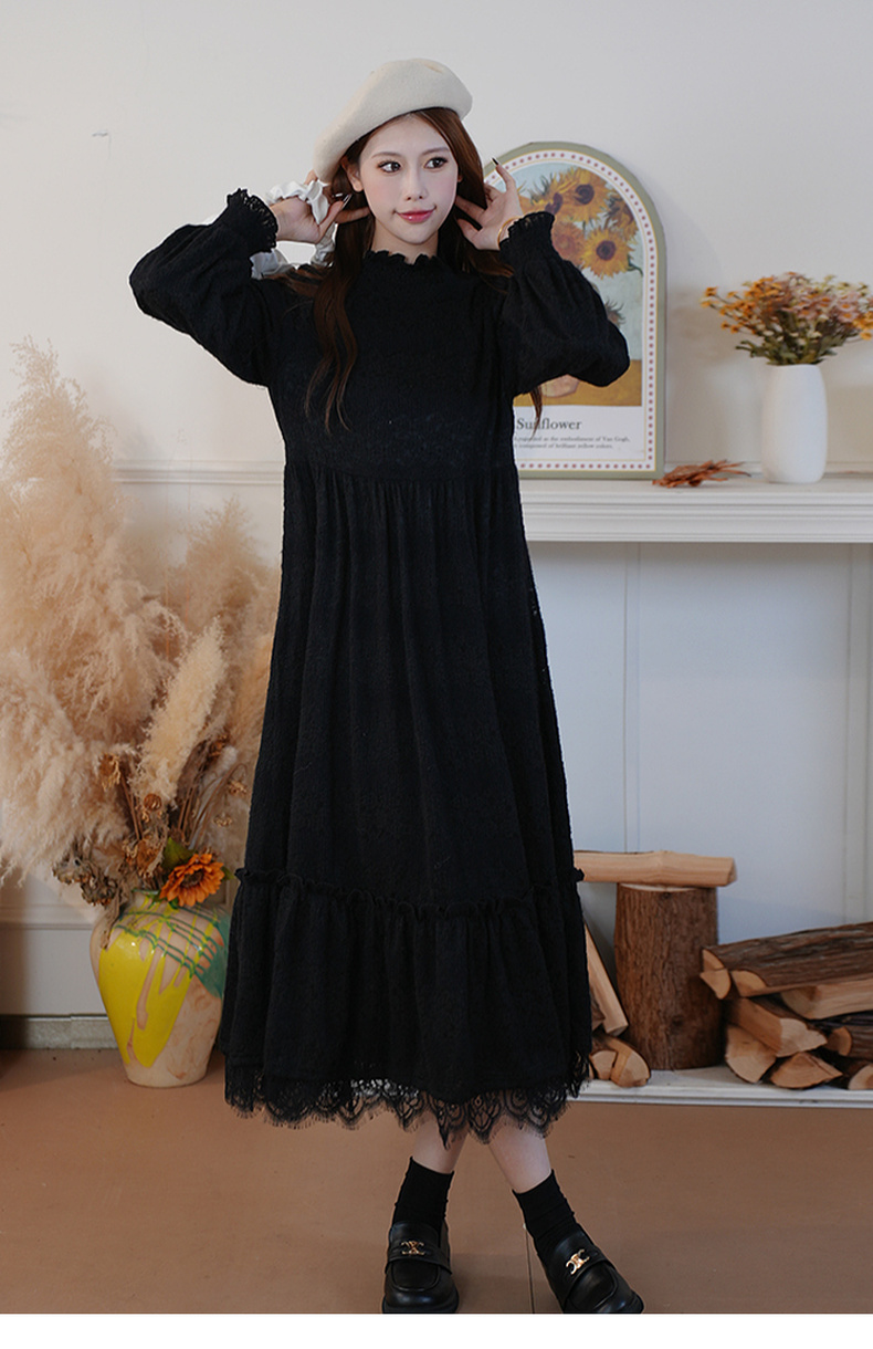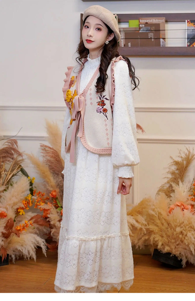 两三事 白雪公主 2024冬季新款甜美荷叶边高领花朵图案毛绒连衣裙