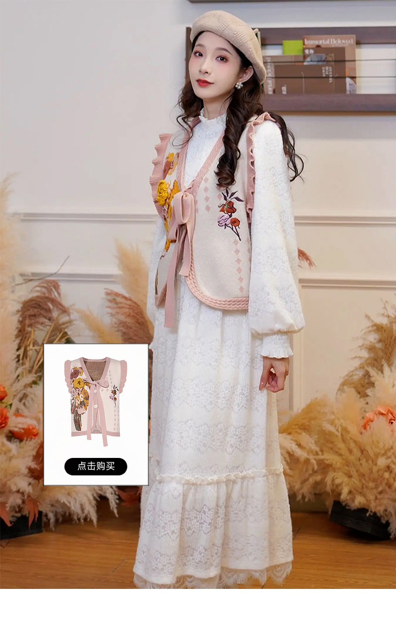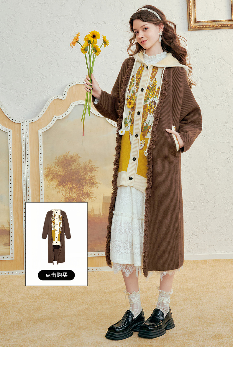 两三事梵高系列静美如秋叶冬新款无袖短款毛衣背心女复古慵懒